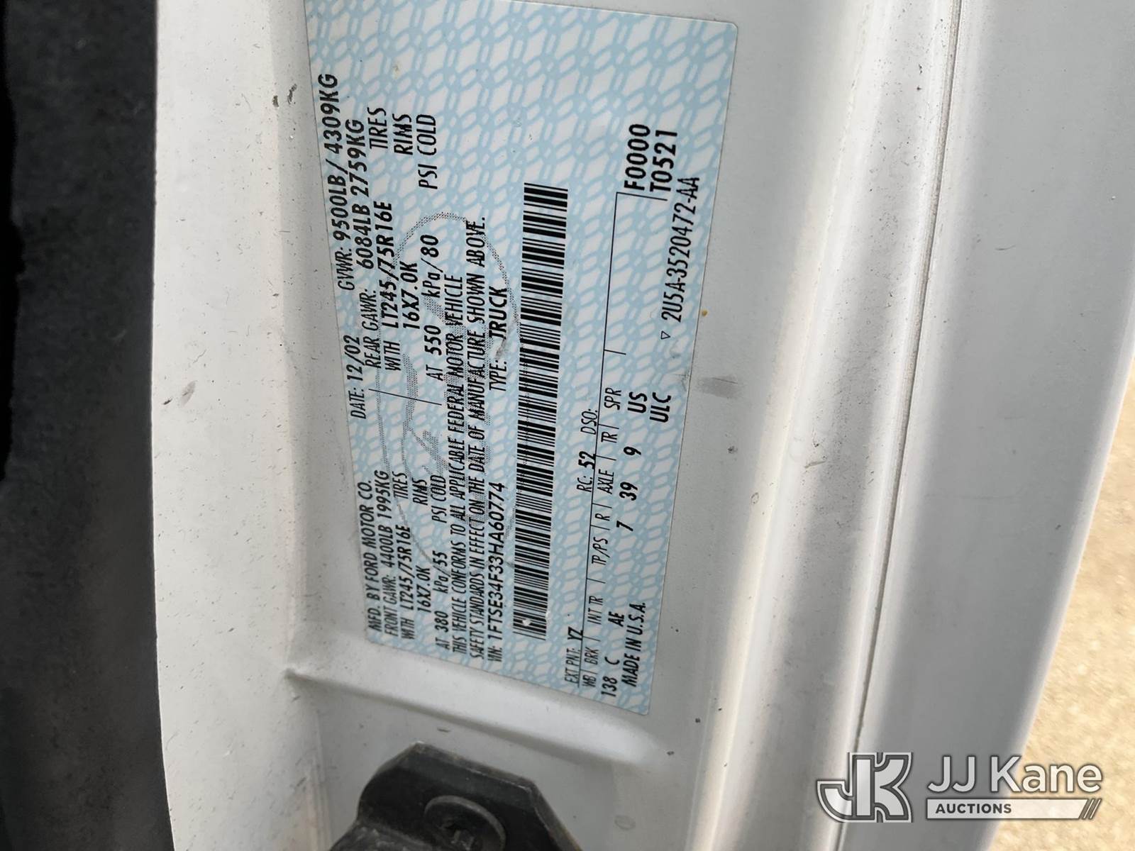 2003 Ford E350 Cargo Van, 7.3L V8 OHV 16V TURBO diesel, 4-Speed Automatic, RWD, A/C, (Exempt from Odometer Disclosure - Reads 128,056 miles) (Runs & Moves) (Jump To Start, Paint Damage) This is a Titled Item NOTE: This unit is being sold AS IS/WHERE IS via Timed Auction and is located in Marion, TX. Inspection & preview days for this unit are the 2 business days prior to the first day of items closing for this auction, item is located at 3292 S Santa Clara Rd Marion, TX 78124 and hours of operations are 8a-4p. For pre-sale questions, please contact Brian Jarrell @ 210-540-3147. (Buyer is responsible for removal. Assistance by consignor or JJ Kane Auctions is not assured.)