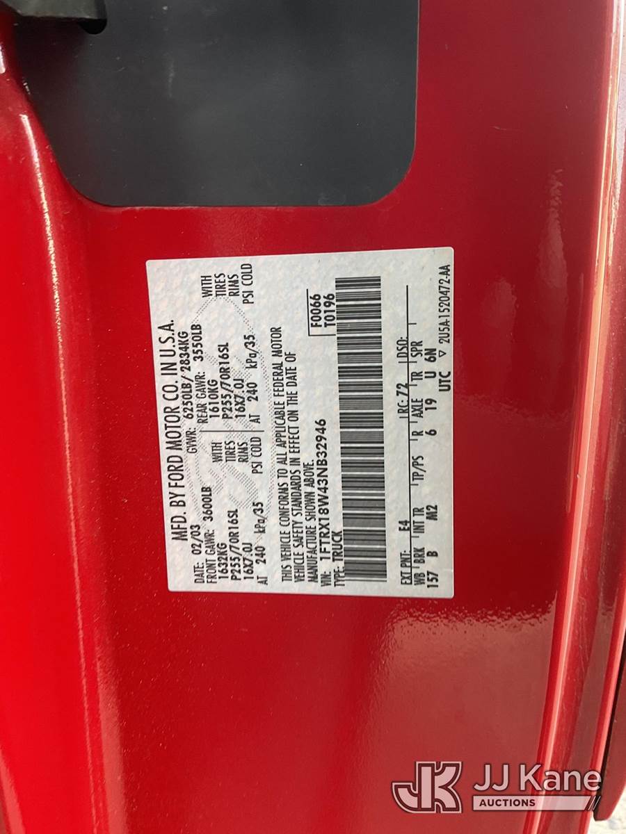 2003 Ford F-150 Extended-Cab Pickup Truck, 8-cyl gas, 4-Speed Automatic, 4wd, A/C, with Camper Shell, Tow Package, (Exempt from Odometer Disclosure - Reads 175,427 miles) (Runs & Moves) This is a Titled Item NOTE: This unit is being sold AS IS/WHERE IS via Timed Auction and is located in Dixon, CA. Inspection & preview days for this unit are the 2 business days prior to the first day of items closing for this auction, item is located at 8668 Sparling Ln Dixon, CA 95620 and hours of operations are 8a-4p. For pre-sale questions, please contact JJ Kane Staff at (707) 678-8060 (dixon@jjkane.com). Dealer License Number 45696. (Buyer is responsible for removal. Assistance by consignor or JJ Kane Auctioneers is not assured.)