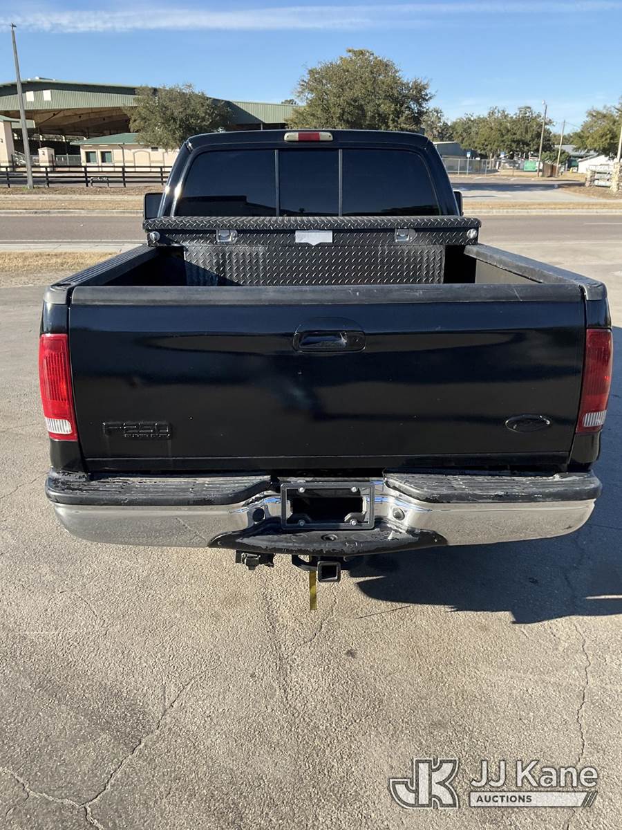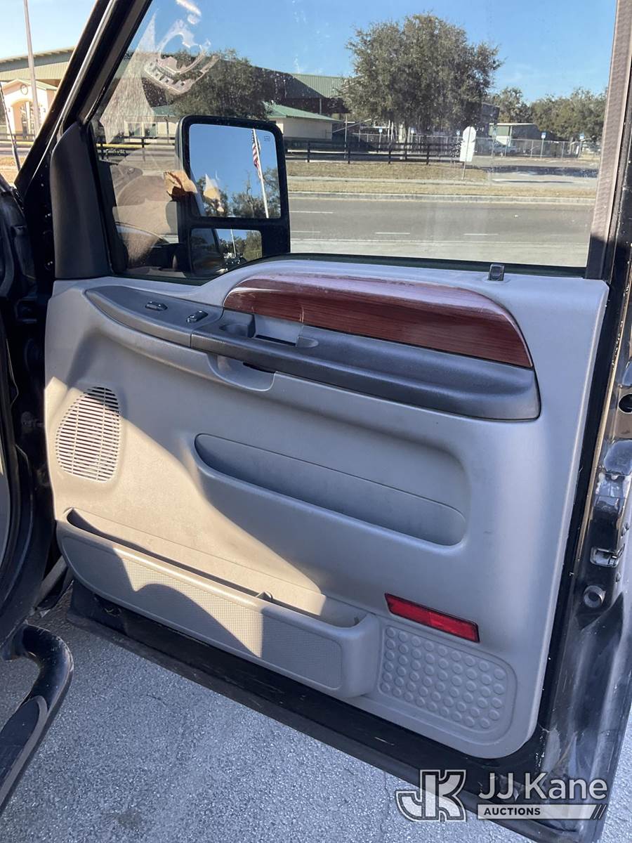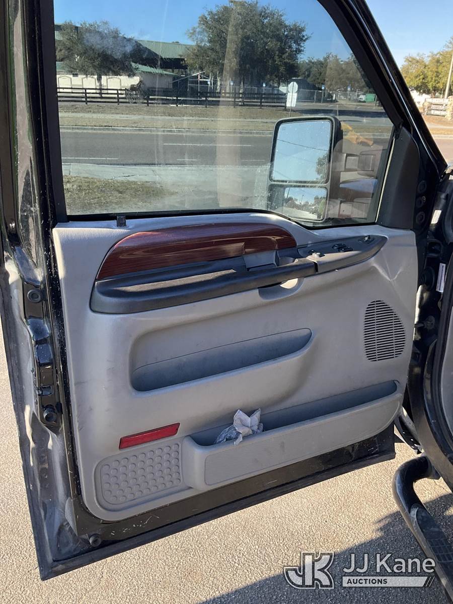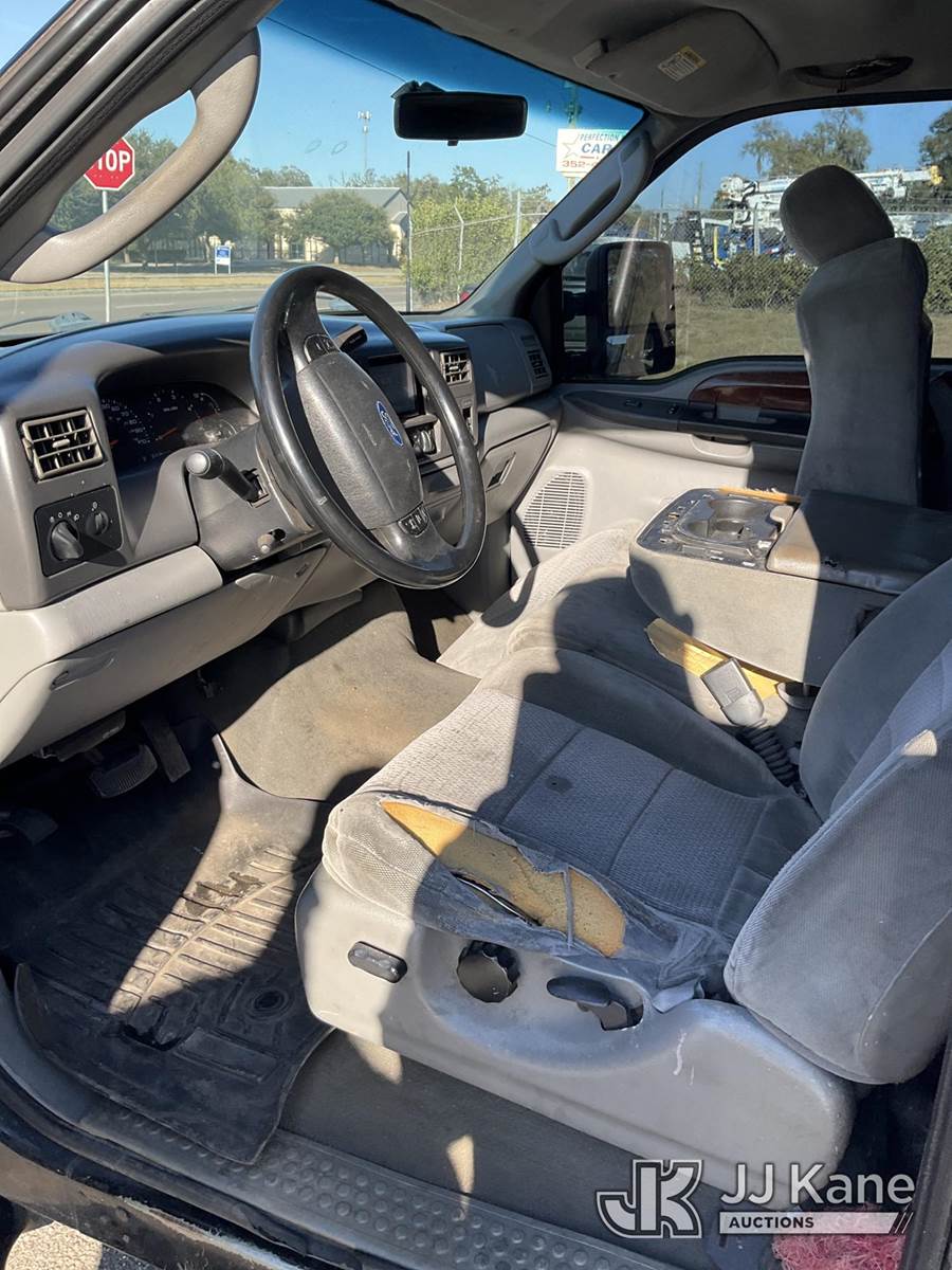 2003 Ford F-250 SD Extended-Cab Pickup Truck, s/n 1FTNX20P33EC63097, 6.0L V8 OHV 32V turbo diesel, RWD, Auto, A/C, (Exempt from Odometer Disclosure - Reads 395,265 miles) (Runs, Jump To Start, Moves) (Body, Paint & Interior Damage) NOTE: This unit is being sold AS IS/WHERE IS via Timed Auction and is located in Ocala, FL. For more information & removal arrangements please contact Mike Lessard @ 352-629-6677. (Buyer is responsible for removal. Assistance by consignor or JJ Kane Auctions is not assured.)