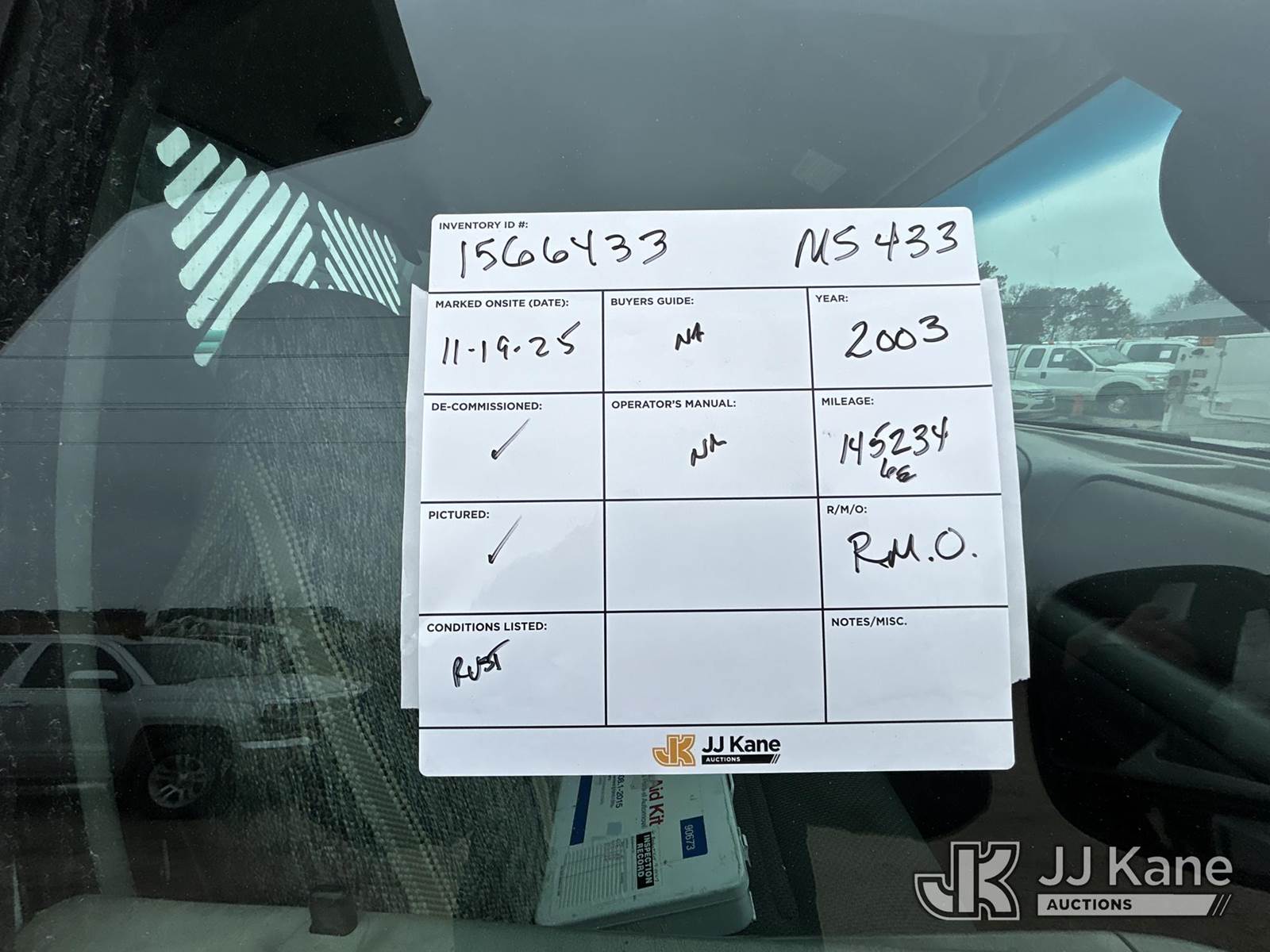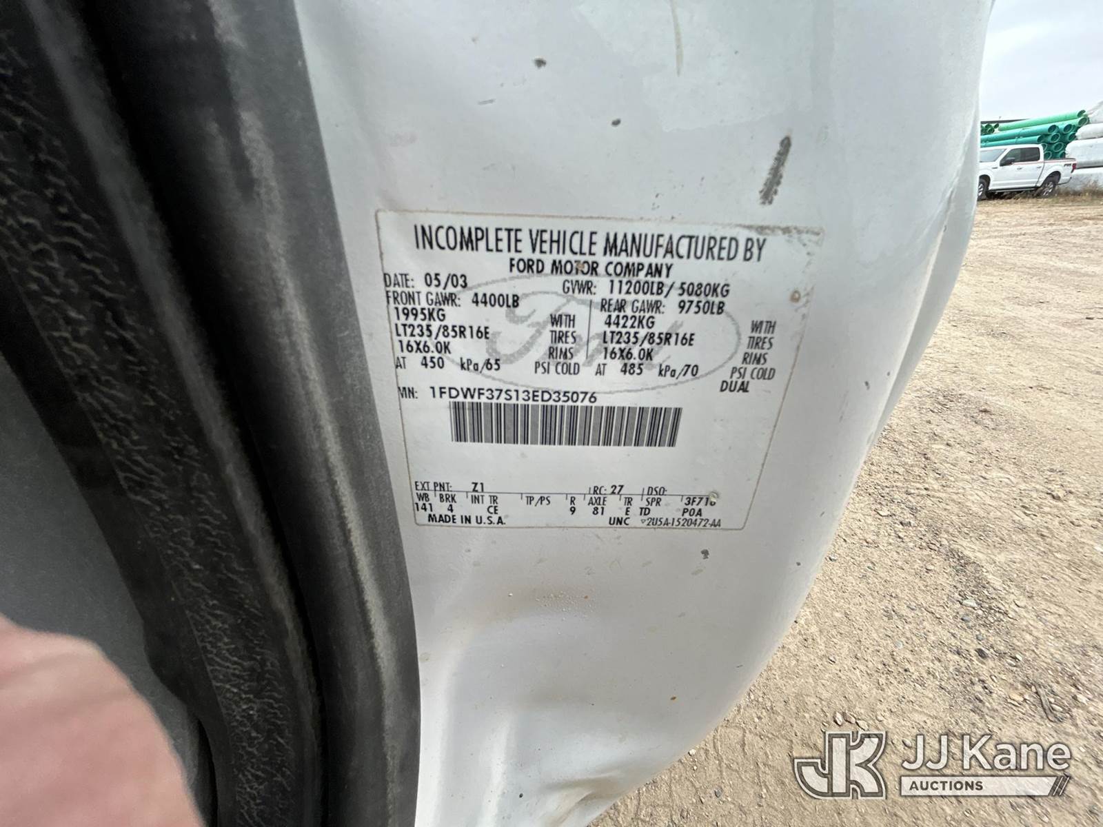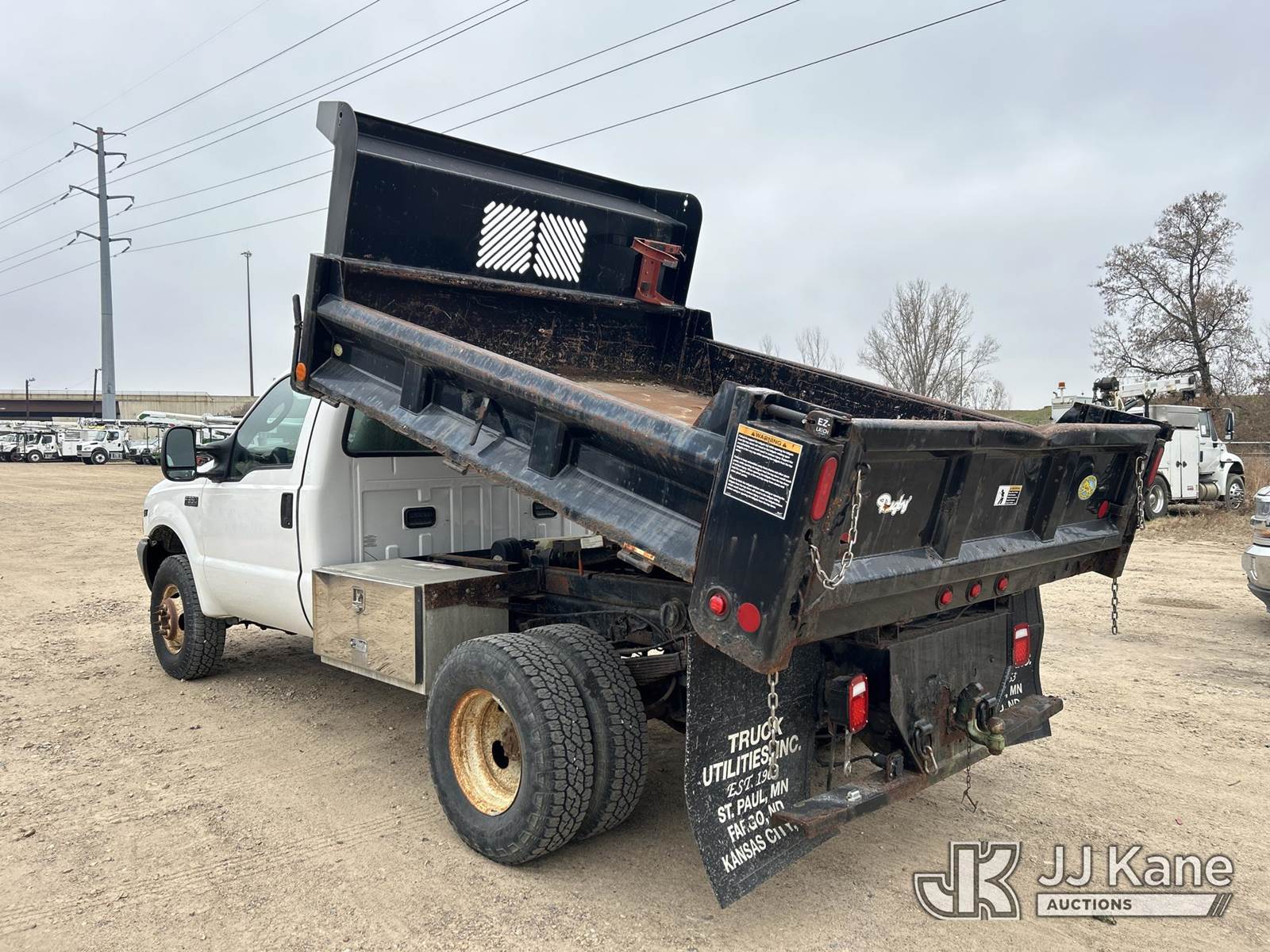 2003 Ford F-350 SD Dump Truck, 6.8L V10 SOHC 20V 4wd, Gas, A/C, with 3-5- yard body, (Exempt from Odometer Disclosure - Reads 145,234 miles) (Runs, Moves Dump Operates, rust damage) This is a Titled Item NOTE: This unit is being sold AS IS/WHERE IS via Timed Auction and is located in Shakopee, MN. Inspection & preview days for this unit are the 2 business days prior to the first day of items closing for this auction, item is located at 1109 Stagecoach Rd Shakopee, MN 55379 and hours of operations are 8a-3p. For pre-sale questions, please contact Joe Hause @ (651) 421-3305. (Buyer is responsible for removal. Assistance by consignor or JJ Kane Auctioneers is not assured.)