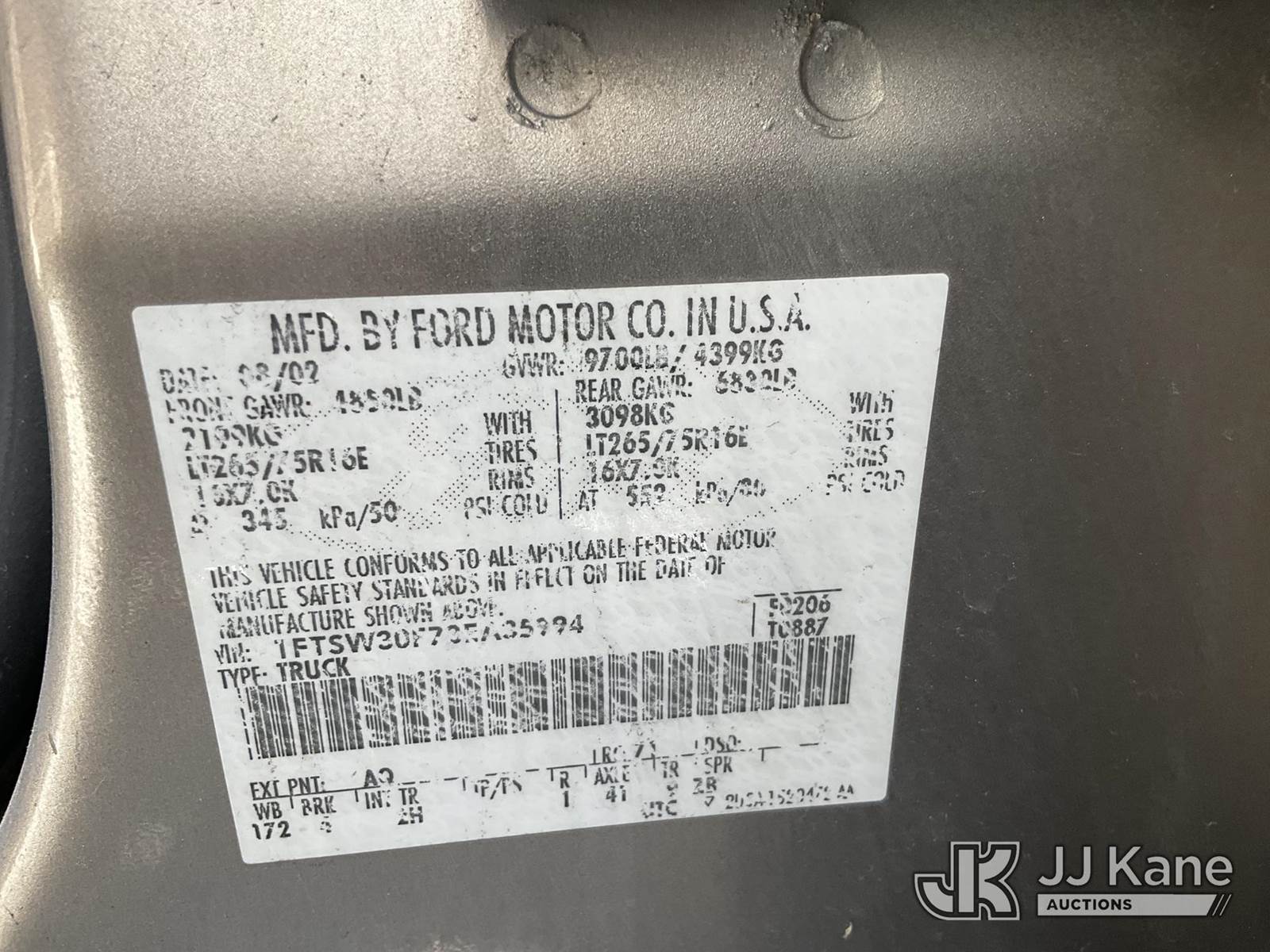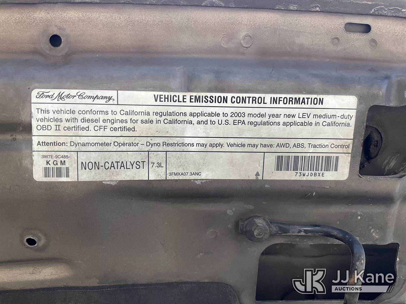 2003 Ford F-350 SD Pickup Truck, 7.3L Turbo Diesel Auto, A/C, with Tow Package, bed cover, True Mileage Unknown (Not Running, Condition Unknown) (No Key, Interior Damage, Must Be Towed) (Bidding Restricted to Licensed Vehicle Dealers Only), May be subject to ARB Regulations This is a Titled Item NOTE: This unit is being sold AS IS/WHERE IS via Timed Auction and is located in Jurupa Valley, CA. Inspection & preview days for this unit are the 2 business days prior to the first day of items closing for this auction, item is located at 4510 Muth Way Jurupa Valley, CA 92509 and hours of operations are 8a-4p. For pre-sale questions, please contact please contact Office Staff @ (310) 353-7140. Dealer License Number 45696. (Buyer is responsible for removal. Assistance by consignor or JJ Kane Auctions is not assured.)