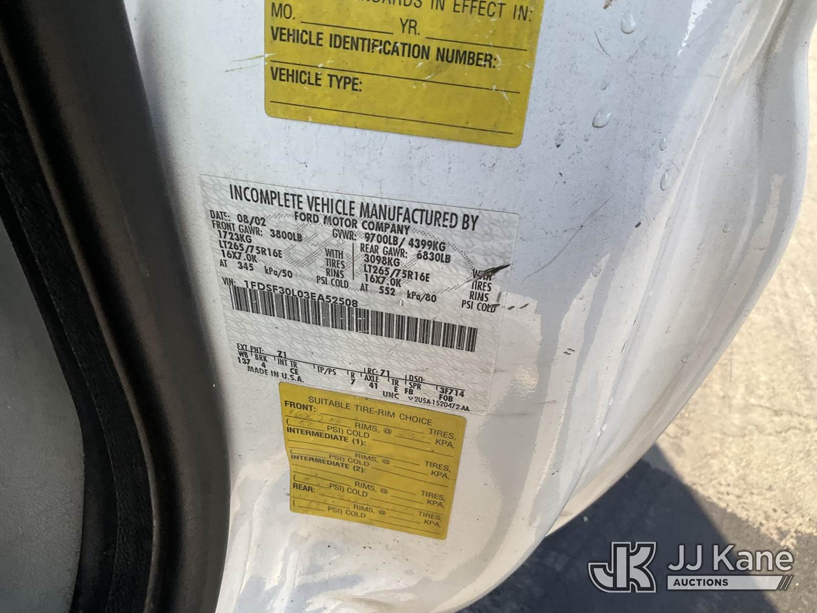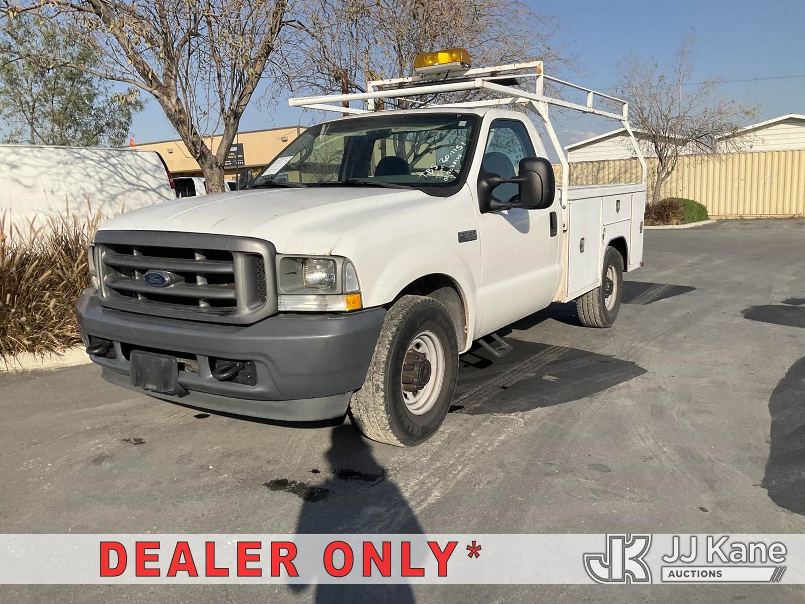 2003 Ford F-350 SD Service Truck, 8-cyl gas, Auto, A/C, with Lift gate, Tow Package, Ladder Rack , (Exempt from Odometer Disclosure - Reads 140,267 miles) (Runs & Moves) (Lift Gate Operates, Failed Smog, Improper EGR Label) (Bidding Restricted to Licensed Vehicle Dealers Only), This is a Titled Item NOTE: This unit is being sold AS IS/WHERE IS via Timed Auction and is located in Jurupa Valley, CA. Inspection & preview days for this unit are the 2 business days prior to the first day of items closing for this auction, item is located at 4510 Muth Way Jurupa Valley, CA 92509 and hours of operations are 8a-4p. For pre-sale questions, please contact please contact Office Staff @ (310) 353-7140. Dealer License Number 45696. (Buyer is responsible for removal. Assistance by consignor or JJ Kane Auctions is not assured.)