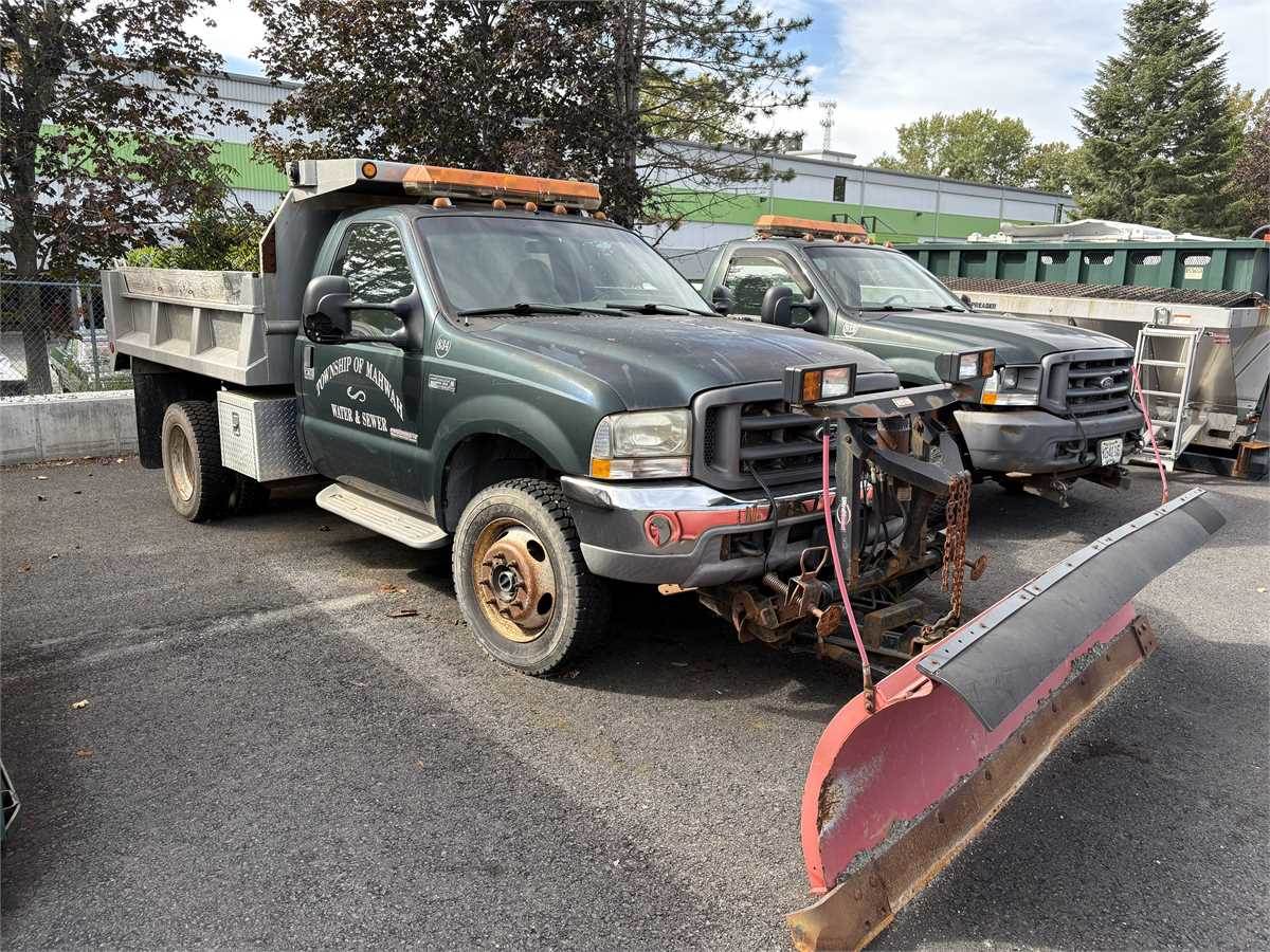 Dump body 6.0 liter Diesel engine, runs great, 5 speed manual transmission 4x4. Aluminum dump body, Western Snow plow dual rear wheel. Plow included. Recommend to tow or haul away.