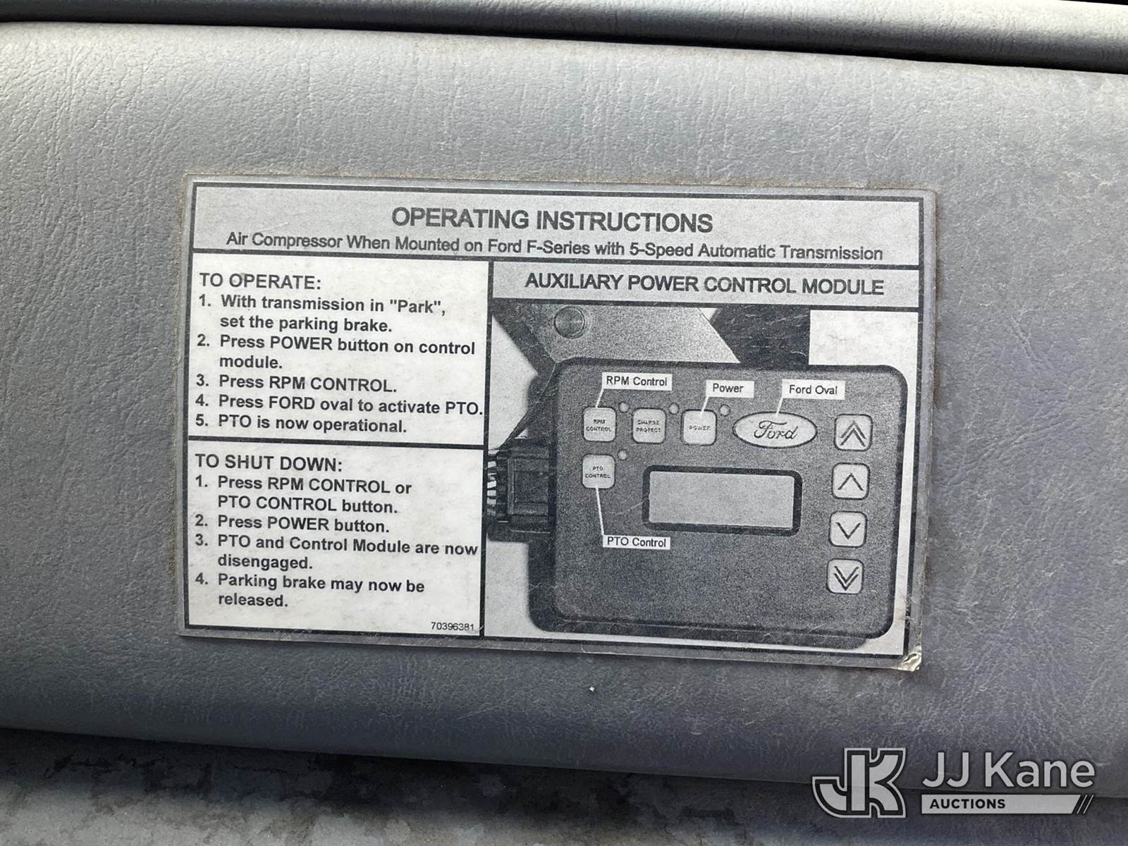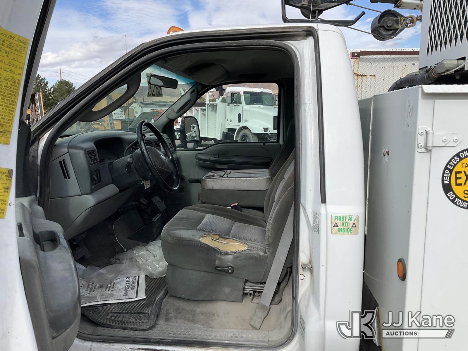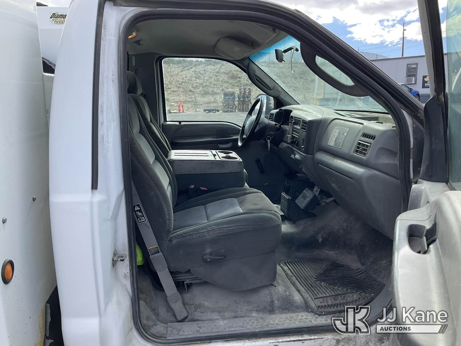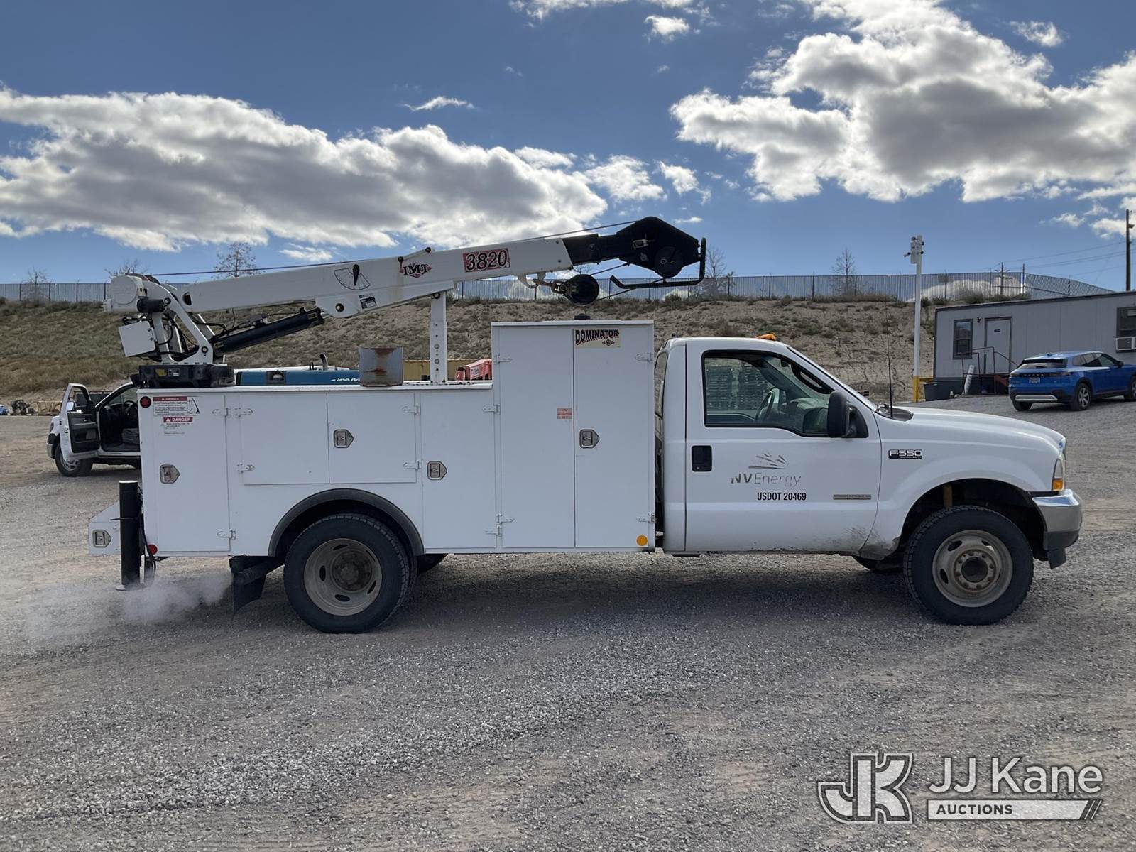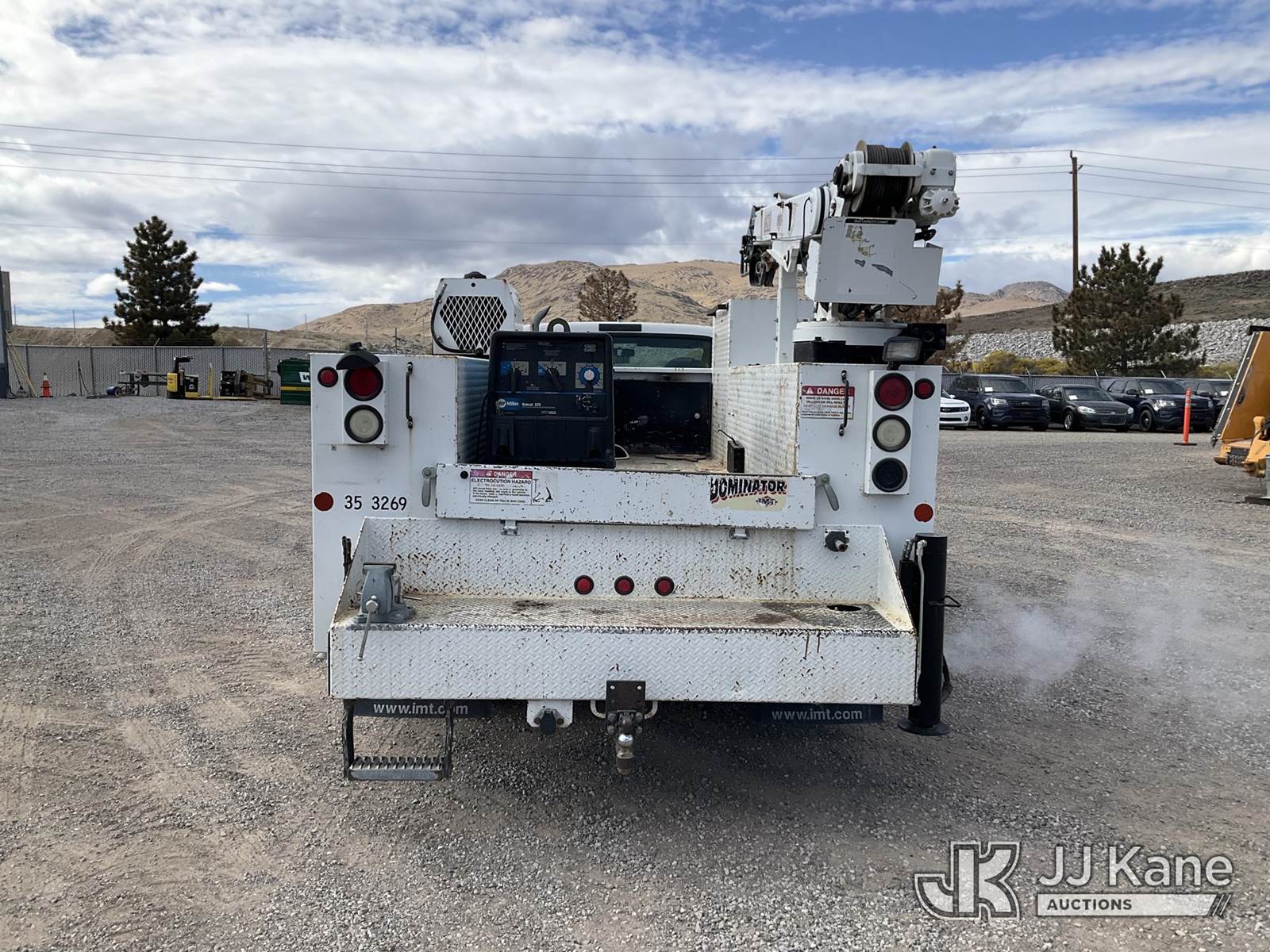 2003 Ford F-550 Regular Cab 2WD DRW Mechanics Service Truck, 6.0L V8 OHV 32V TURBO Auto, RWD, diesel, A/C, with Miller Bobcat 225 Welder, IMT DA435HA Hydraulic Air Compressor, IMT 3820 Crane, (Exempt from Odometer Disclosure - Reads 82,671 miles) (Runs, Barely Moves, & Compressor, Welder Operate)(Ripped Seat, White Smoke From Exhaust, Oil Coming Out of Exhaust, PTO Engages - Drivers Side Outrigger Removed & Stowed in Utility Bed, Crane Not Operable - Condition Unknown) This is a Titled Item NOTE: This unit is being sold AS IS/WHERE IS via Timed Auction and is located in Sparks, NV. Inspection & preview days for this unit are the 2 business days prior to the first day of items closing for this auction, item is located at 601 Britain Dr Sparks, NV 89437 and hours of operations are 8a-4p. Titles executed exactly as bidder registered. Ensure your name and/or business name and address in JJ Kane and/or ProxiBid is correct before bidding. For pre-sale questions, please contact Office Staff @ (801) 519-0123 and provide sale date and lot number. Sparks Dealer License Number DLR000052908 / OHV000052909. (Buyer is responsible for removal. Assistance by consignor or JJ Kane Auctioneers is not assured.)