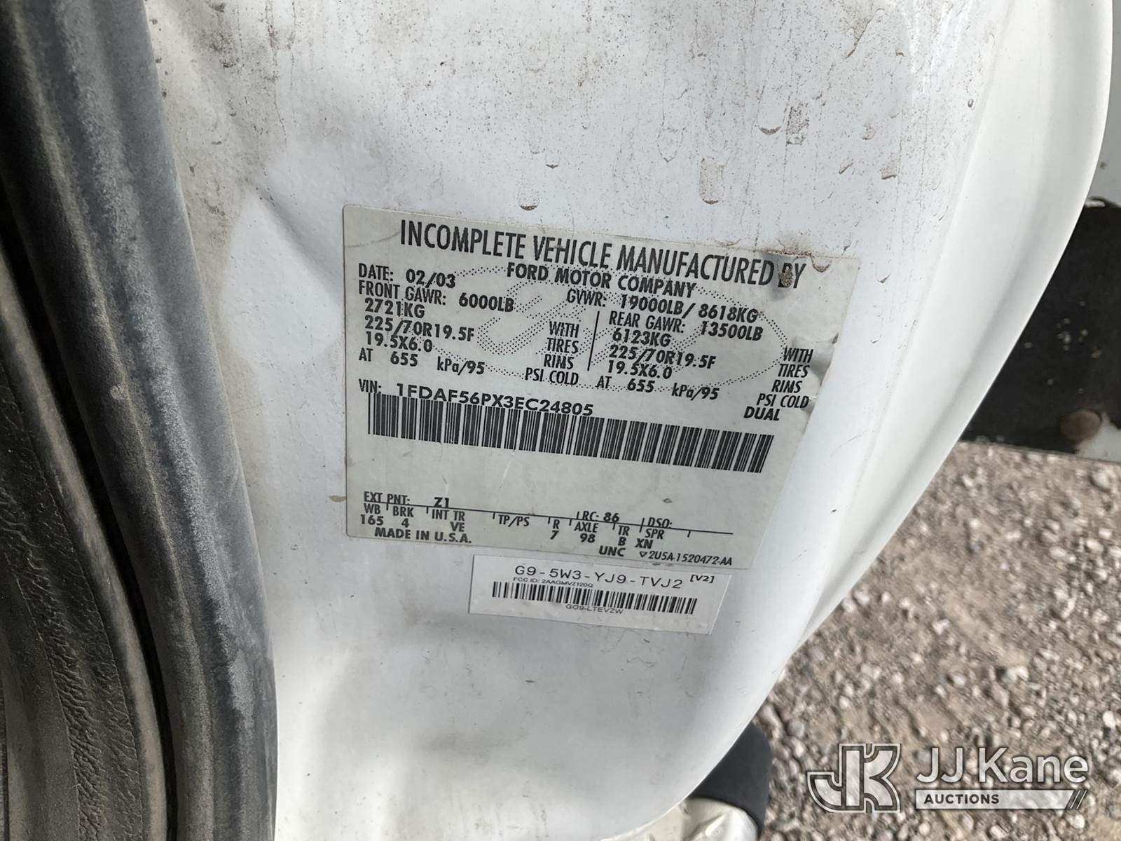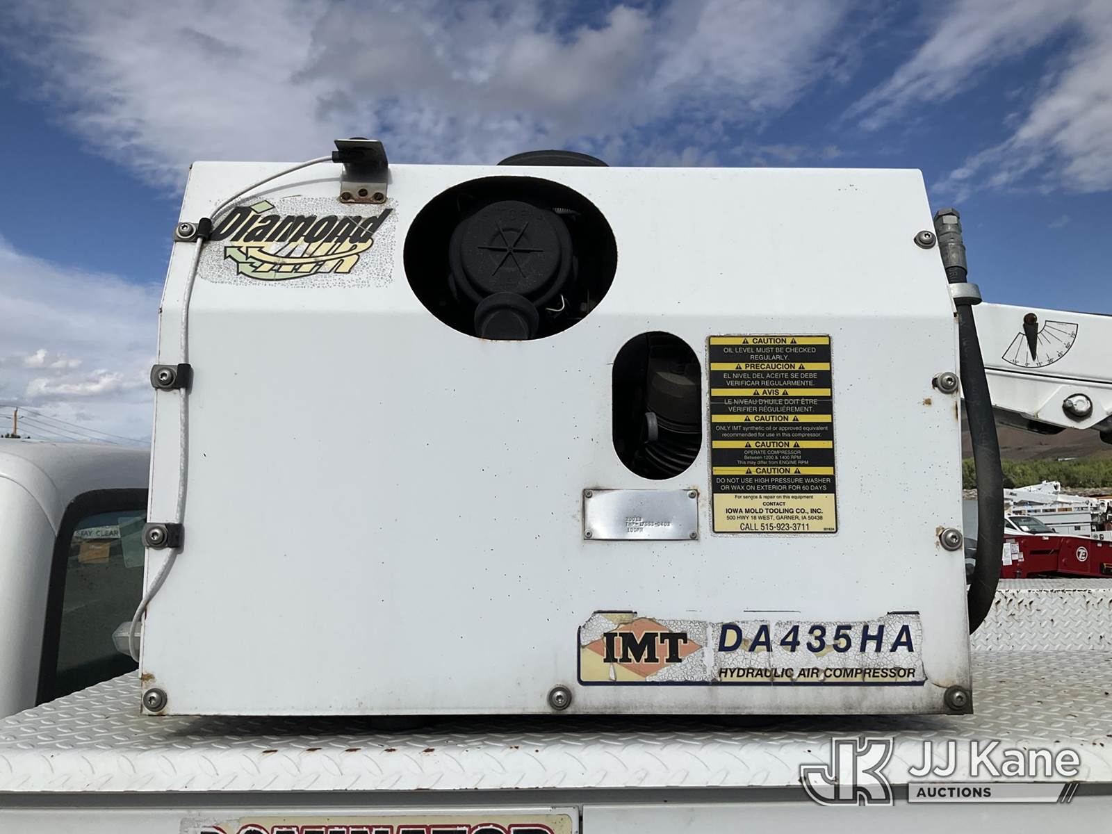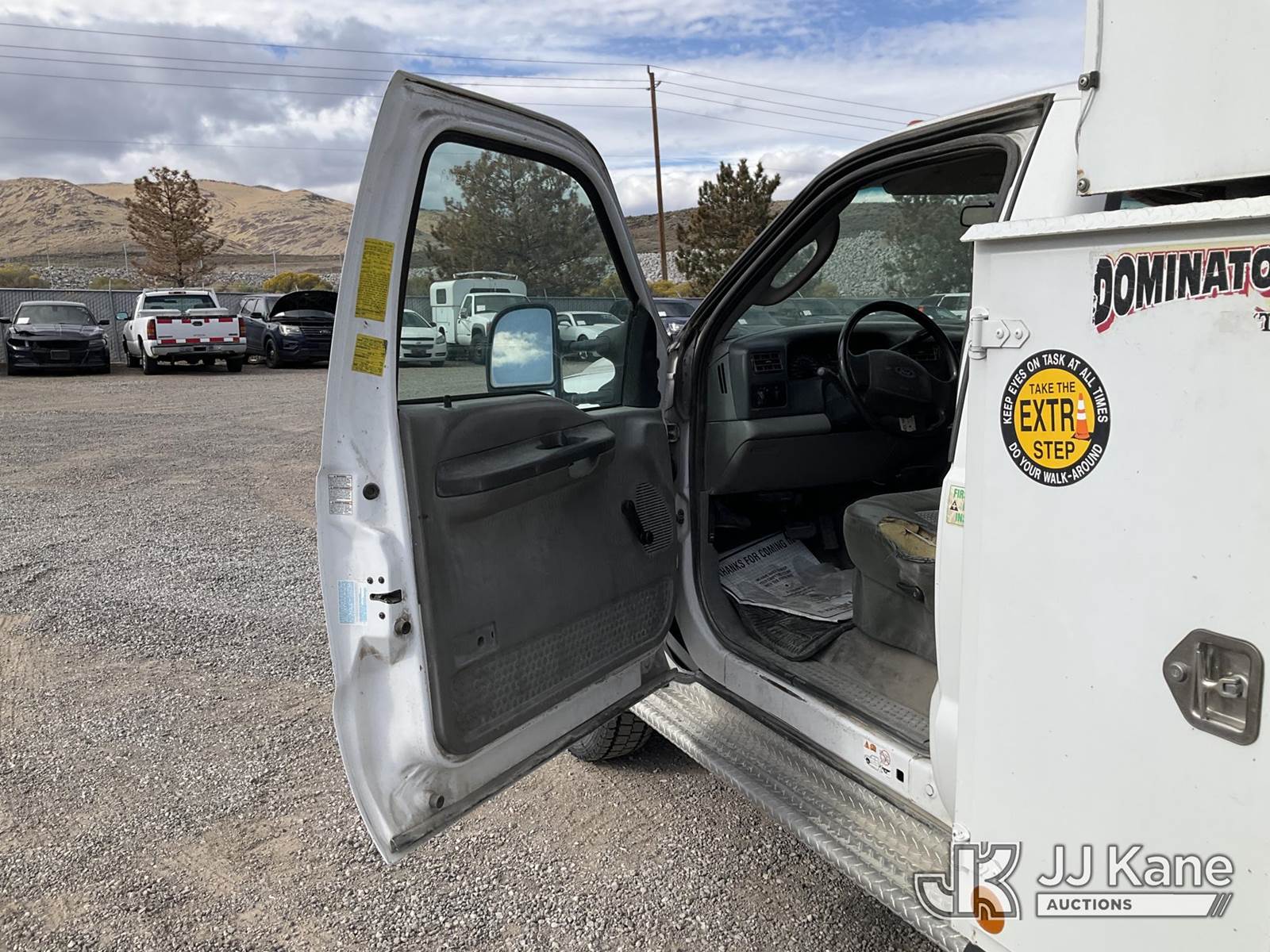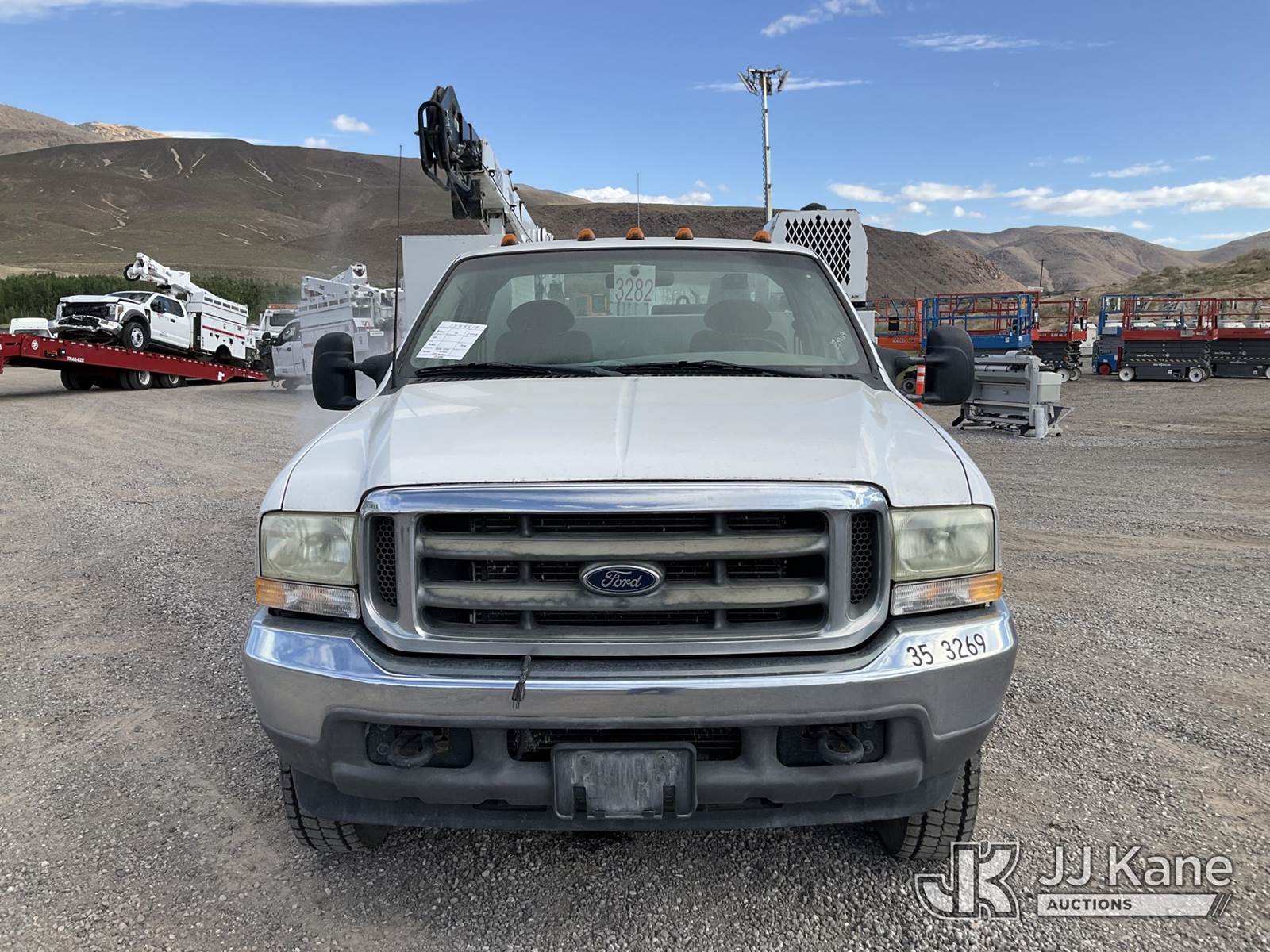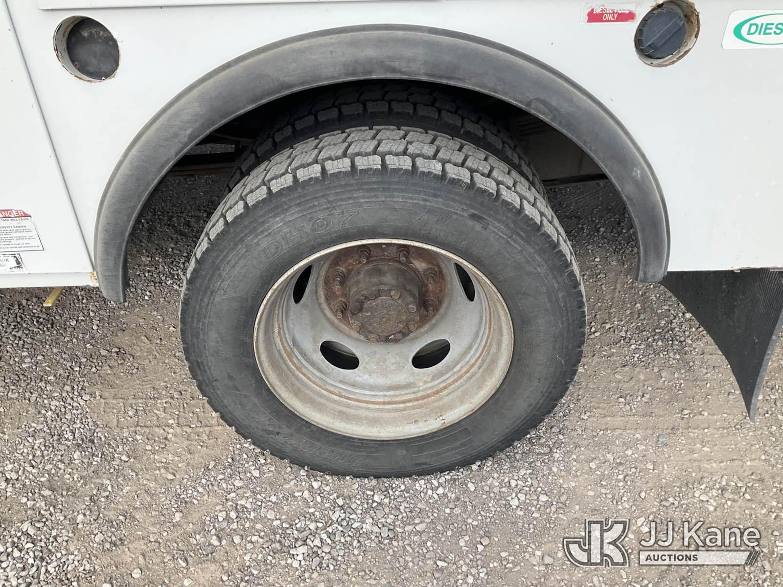 2003 Ford F-550 Regular Cab 2WD DRW Mechanics Service Truck, 6.0L V8 OHV 32V TURBO Auto, RWD, diesel, A/C, with Miller Bobcat 225 Welder, IMT DA435HA Hydraulic Air Compressor, IMT 3820 Crane, (Exempt from Odometer Disclosure - Reads 82,671 miles) (Runs, Barely Moves, & Compressor, Welder Operate)(Ripped Seat, White Smoke From Exhaust, Oil Coming Out of Exhaust, PTO Engages - Drivers Side Outrigger Removed & Stowed in Utility Bed, Crane Not Operable - Condition Unknown) This is a Titled Item NOTE: This unit is being sold AS IS/WHERE IS via Timed Auction and is located in Sparks, NV. Inspection & preview days for this unit are the 2 business days prior to the first day of items closing for this auction, item is located at 601 Britain Dr Sparks, NV 89437 and hours of operations are 8a-4p. Titles executed exactly as bidder registered. Ensure your name and/or business name and address in JJ Kane and/or ProxiBid is correct before bidding. For pre-sale questions, please contact Office Staff @ (801) 519-0123 and provide sale date and lot number. Sparks Dealer License Number DLR000052908 / OHV000052909. (Buyer is responsible for removal. Assistance by consignor or JJ Kane Auctioneers is not assured.)