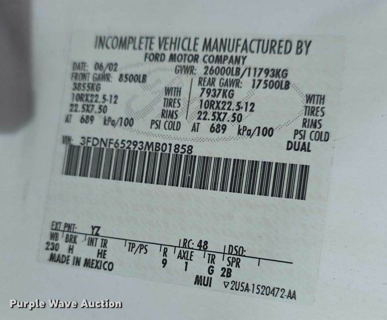 VIN: 3FDNF65293MB01858
