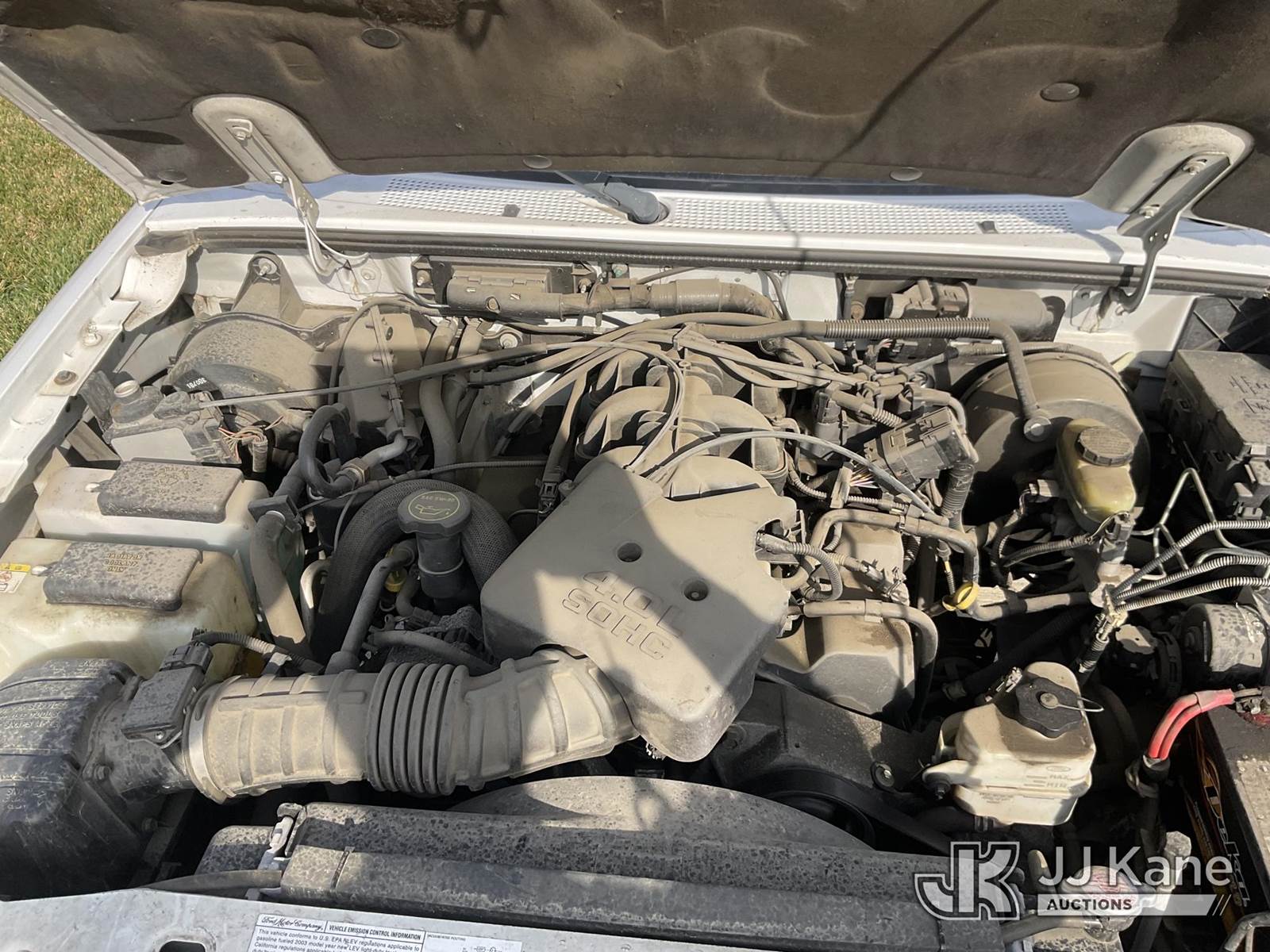 2003 Ford Ranger XLT SuperCab 4-Door 2WD - 387A Extended-Cab Pickup Truck, 6-cyl gas, RWD, A/C, (Exempt from Odometer Disclosure - Reads 62,032 miles) (Runs & Moves) (ABS Light Flickers When Accelerating, Rear Driver Door Damaged, Fenders Damaged-Driver Side, Passenger Door Slightly Damaged, Front Fender Damaged-Passenger Side, Jump To Start) (Bidding Restricted to Licensed Vehicle Dealers Only), This is a Titled Item NOTE: This unit is being sold AS IS/WHERE IS via Timed Auction and is located in Dixon, CA. Inspection & preview days for this unit are the 2 business days prior to the first day of items closing for this auction, item is located at 8668 Sparling Ln Dixon, CA 95620 and hours of operations are 8a-4p. For pre-sale questions, please contact JJ Kane Staff at (707) 678-8060 (dixon@jjkane.com). Dealer License Number 45696. (Buyer is responsible for removal. Assistance by consignor or JJ Kane Auctions is not assured.)
