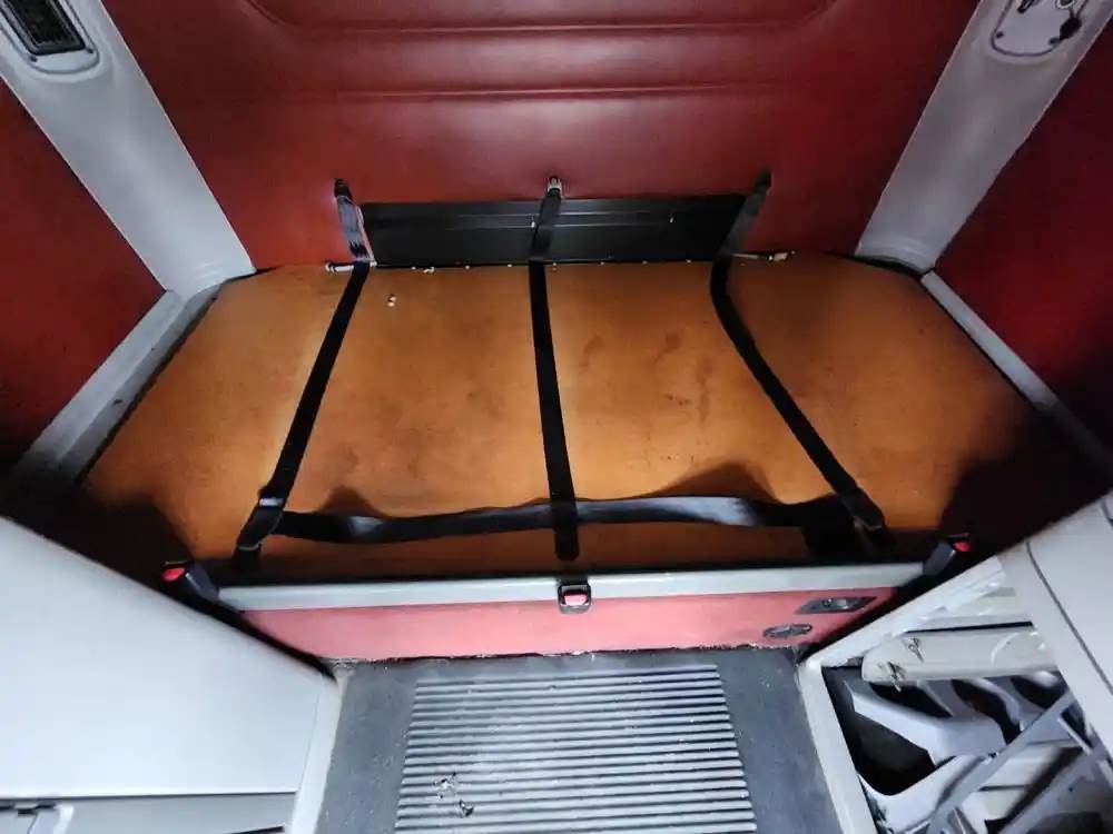 (Used) 2003 Freightliner Columbia 120, SLEEPER BUNK- Bunk: Bottom, Color: Grey and Blood Red, Material: Plastic, Reference images for condition, For more information about this item, give us a call. We ship Worldwide! (CRG HEAVY TRUCK PARTS) 929 W PULASKI HWY ELKTON, MD 21921, Material: Plastic