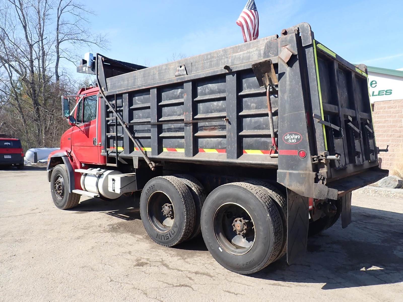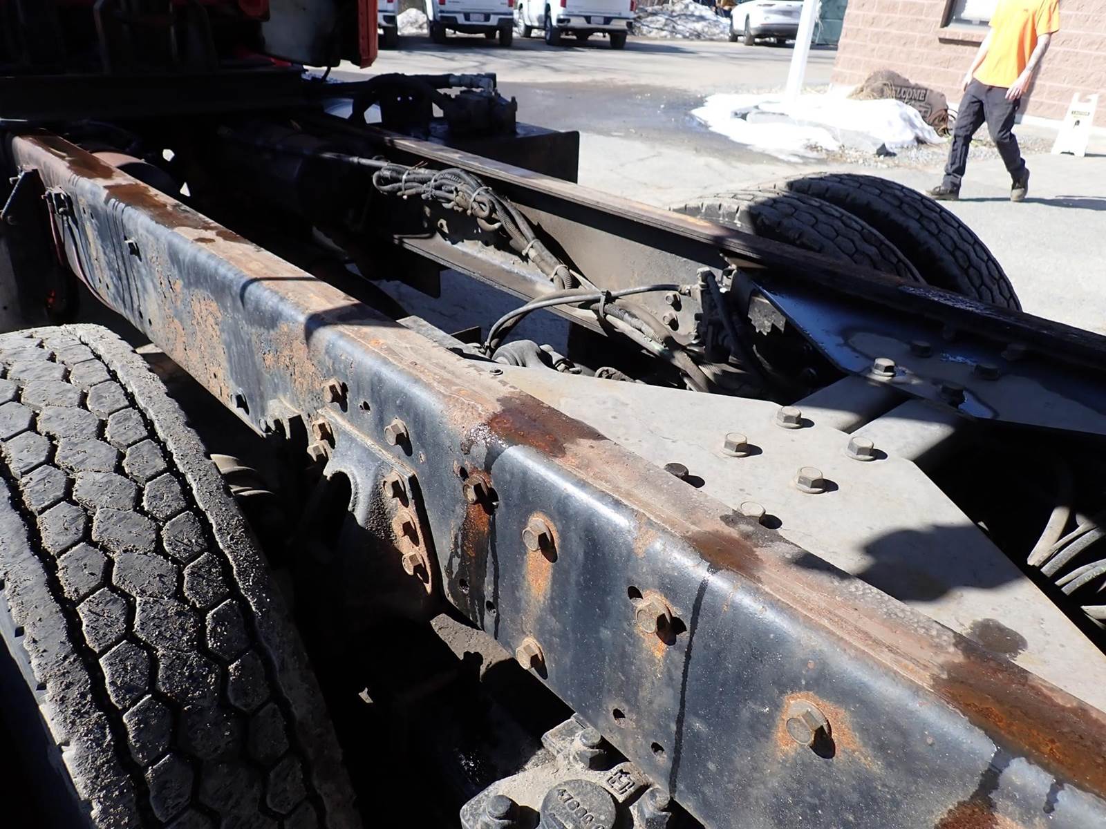 10 wheel, 13'6" steel Bibeau body w/ 3 chutes, Cat C12, 430 hp, Fuller 8LL, 18k f, 46k r, hitch, spring suspension