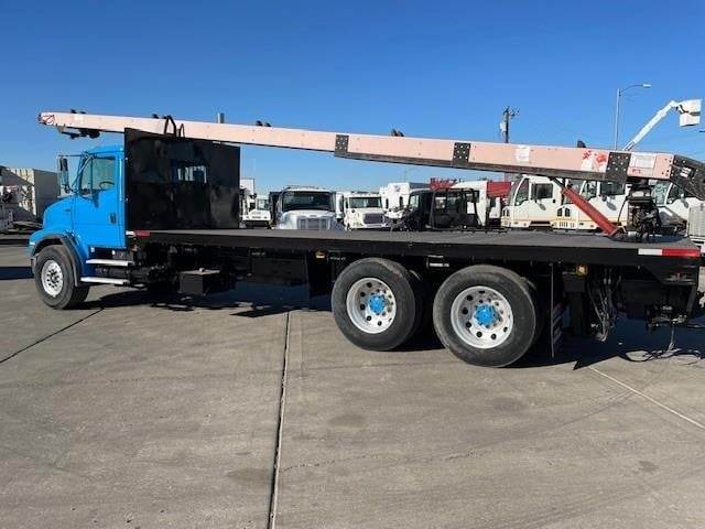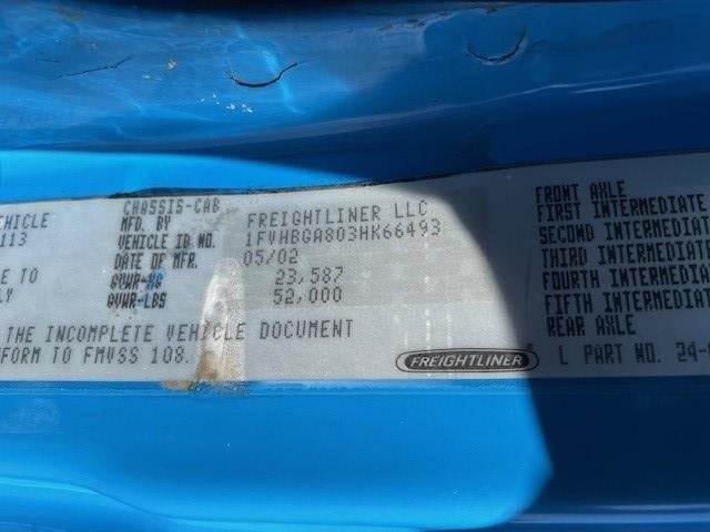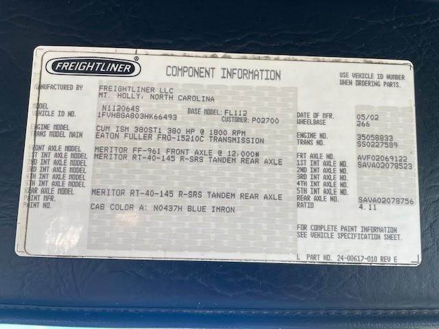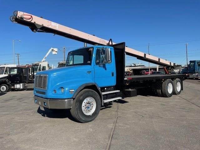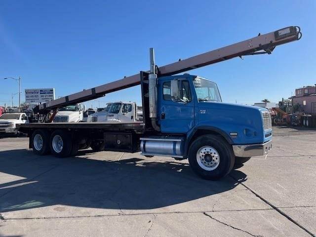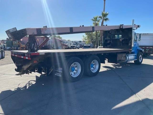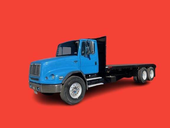 2003 Freightliner FL112 24' x 96" Tanderm-Axle Flat-Bed Truck, Cummins ISM 10.8L @ 380 H.P., Engine Brake, Eaton-Fuller FRO-15210C 10-Speed O/D Transmission, 4.11 Ratio, 4-Bag Air-Ride Suspension, 266" W.B., 52K G.V.W.R., Meritor FF-961 (12K) Front-Axle, Meritor RT-40-145 (40K) R-SRS Rear-Axle, 425/65R-22.5 Front Tires, 11R-24.5 Rear Tires, 10-Aluminum Wheels, Diamond Plate Steel Floor, Headache Rack, (1) Under-Body Tool Box, (9) Fixed Strap Load Winches, 6-Bolt Pintle Hitch, Tractor Air-Package, Single Vertical Exhaust, Aluminum 90 Gallon Fuel Tank,power divider, P/S, A/C, C/C, Mirror Heat, Axle-Lock, Fleet Maintained, Commercial Financing Available O.A.C., 244,192 Miles! / ECM: 244,192 Miles! / 11,273 Hours!