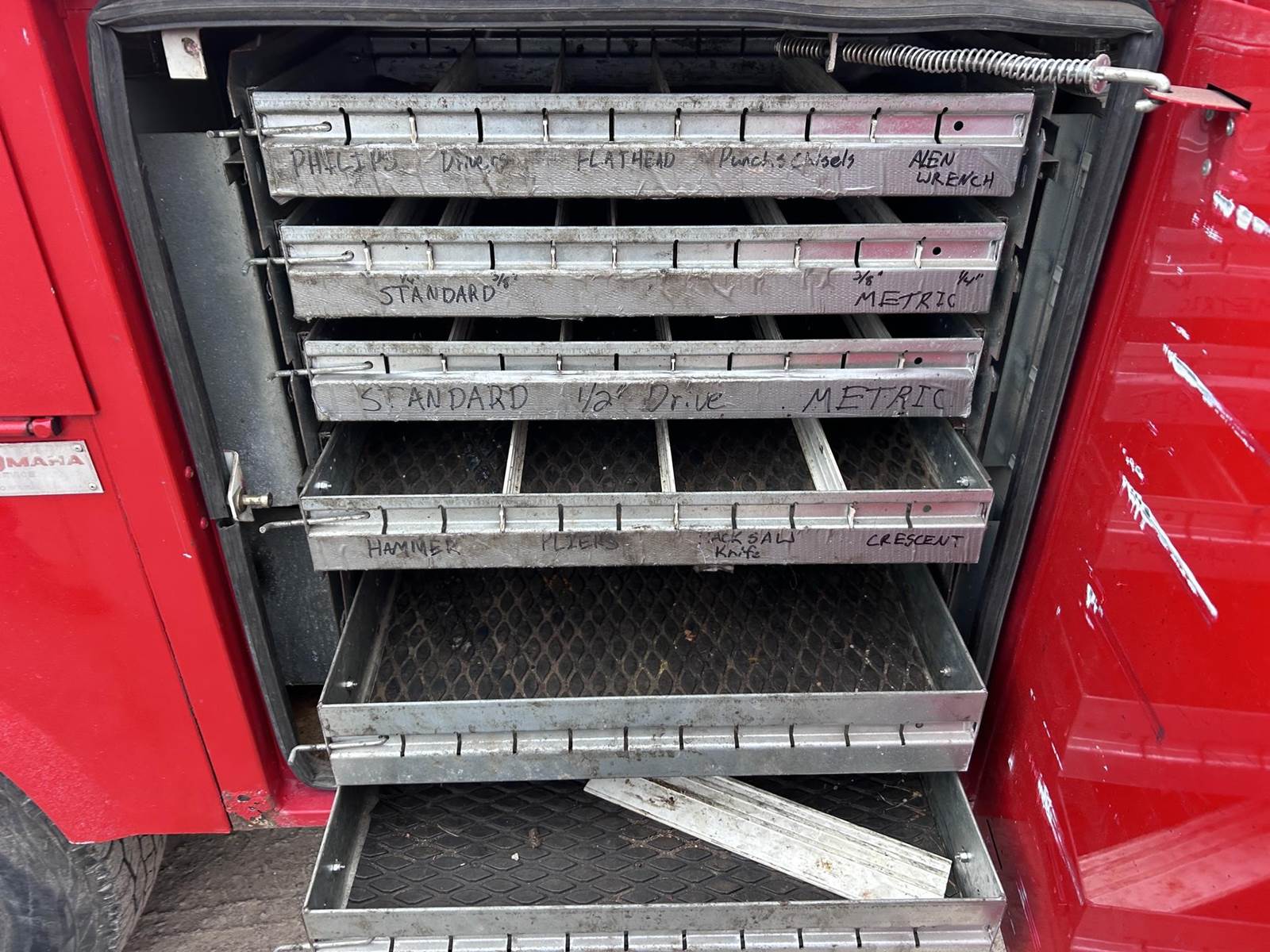 Cat C7 6 Cylinder Turbo Diesel Engine, Automatic Transmission, Spring Ride, 8-Door Service Body, Mechanics Vise, Air Compressor, Miller...
