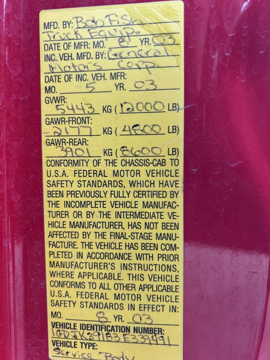 2003 GMC 3500 Mechanic / Service Truck