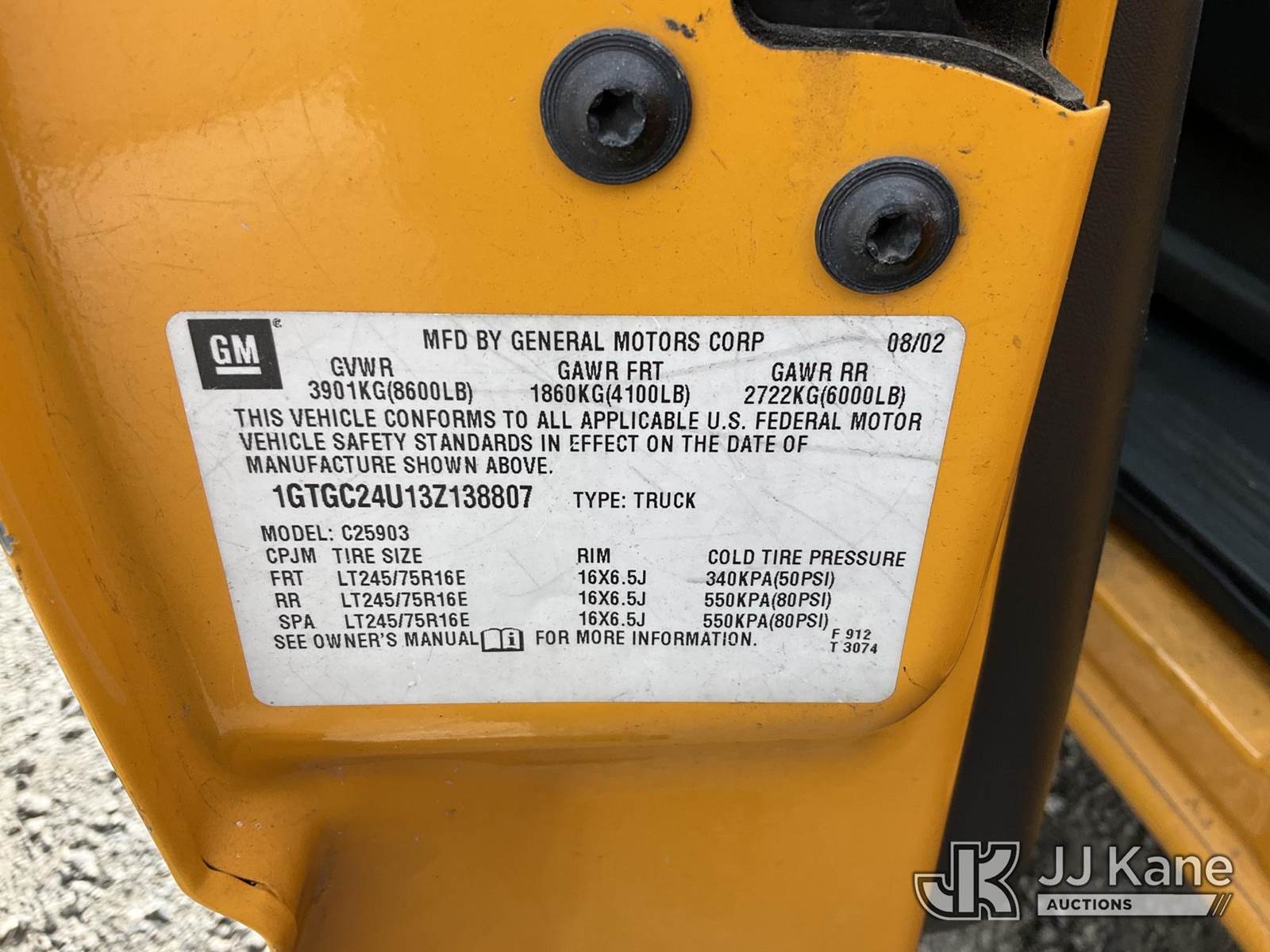 2003 GMC Sierra 2500 Pickup Truck, s/n 1GTGC24U13Z138807, 6.0L V8 OHV 16V RWD, GAS, 4-Speed Automatic, A/C, True Mileage Unknown (Not Running, No Key, Must Be Towed) (Bidding Restricted to Licensed Vehicle Dealers Only), This is a Titled Item NOTE: This unit is being sold AS IS/WHERE IS via Timed Auction and is located in Jurupa Valley, CA. Inspection & preview days for this unit are the 2 business days prior to the first day of items closing for this auction, item is located at 4510 Muth Way Jurupa Valley, CA 92509 and hours of operations are 8a-4p. For pre-sale questions, please contact please contact Office Staff @ (310) 353-7140. Dealer License Number 45696. (Buyer is responsible for removal. Assistance by consignor or JJ Kane Auctions is not assured.)