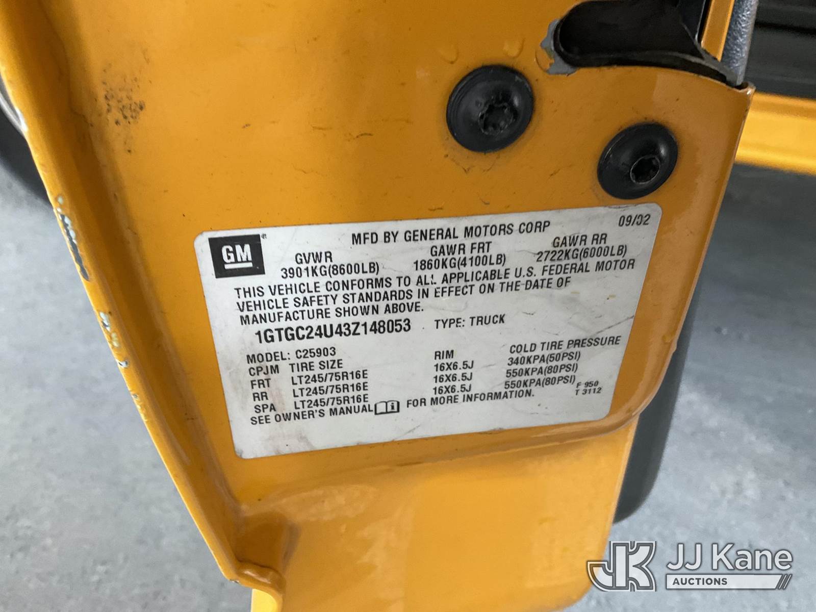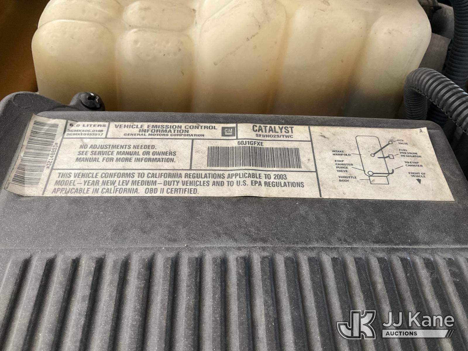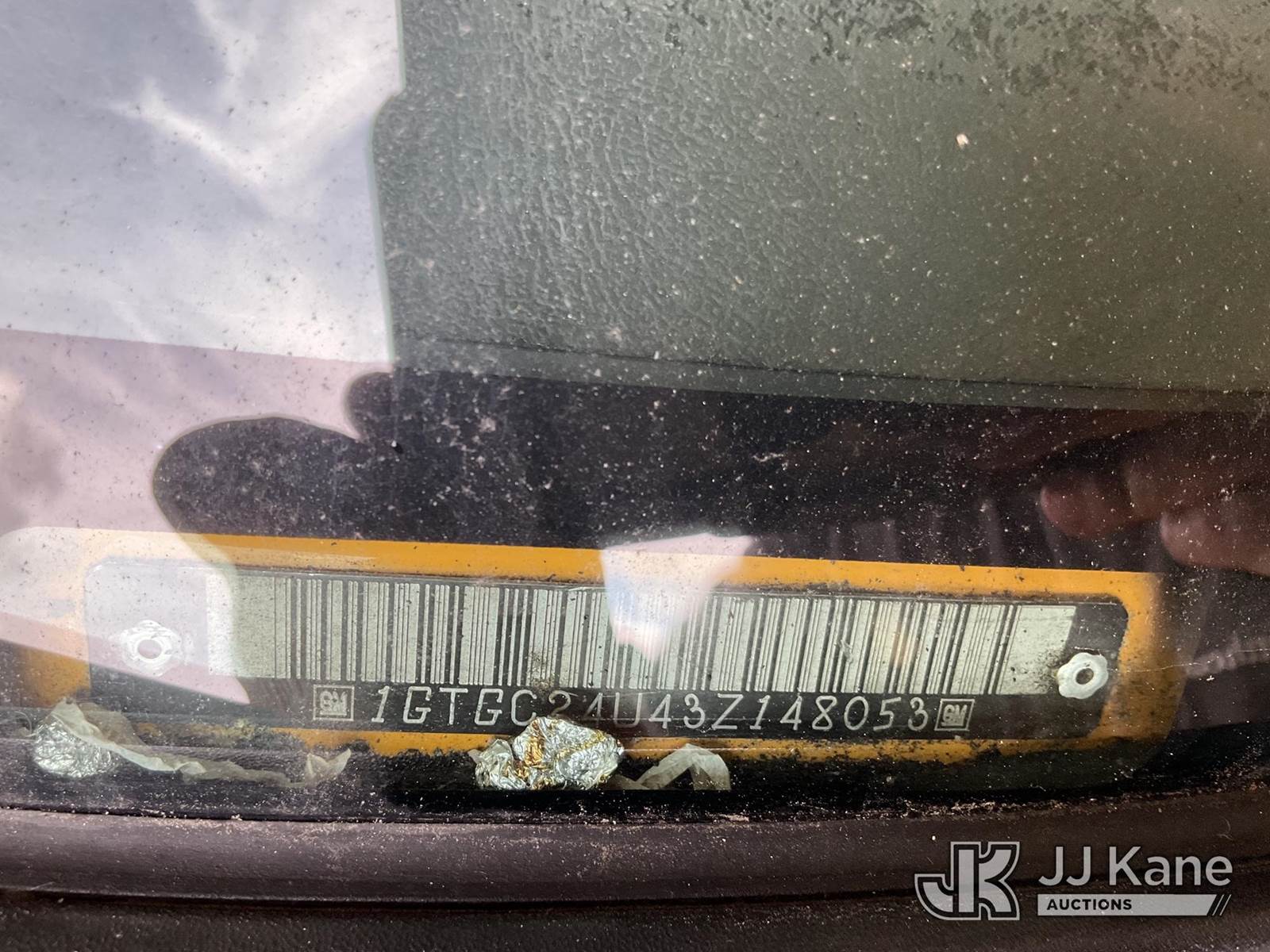 2003 GMC Sierra 2500 Pickup Truck, s/n 1GTGC24U43Z148053, 6.0L V8 OHV 16V RWD, GAS, 4-Speed Automatic, A/C, with Tow package, (Exempt from Odometer Disclosure - Reads 133,779 miles) (Runs & Moves, Broken Driver Door Handle, Needs Battery, Interior Stripped Of Parts) (Bidding Restricted to Licensed Vehicle Dealers Only), This is a Titled Item NOTE: This unit is being sold AS IS/WHERE IS via Timed Auction and is located in Jurupa Valley, CA. Inspection & preview days for this unit are the 2 business days prior to the first day of items closing for this auction, item is located at 4510 Muth Way Jurupa Valley, CA 92509 and hours of operations are 8a-4p. For pre-sale questions, please contact please contact Office Staff @ (310) 353-7140. Dealer License Number 45696. (Buyer is responsible for removal. Assistance by consignor or JJ Kane Auctions is not assured.)