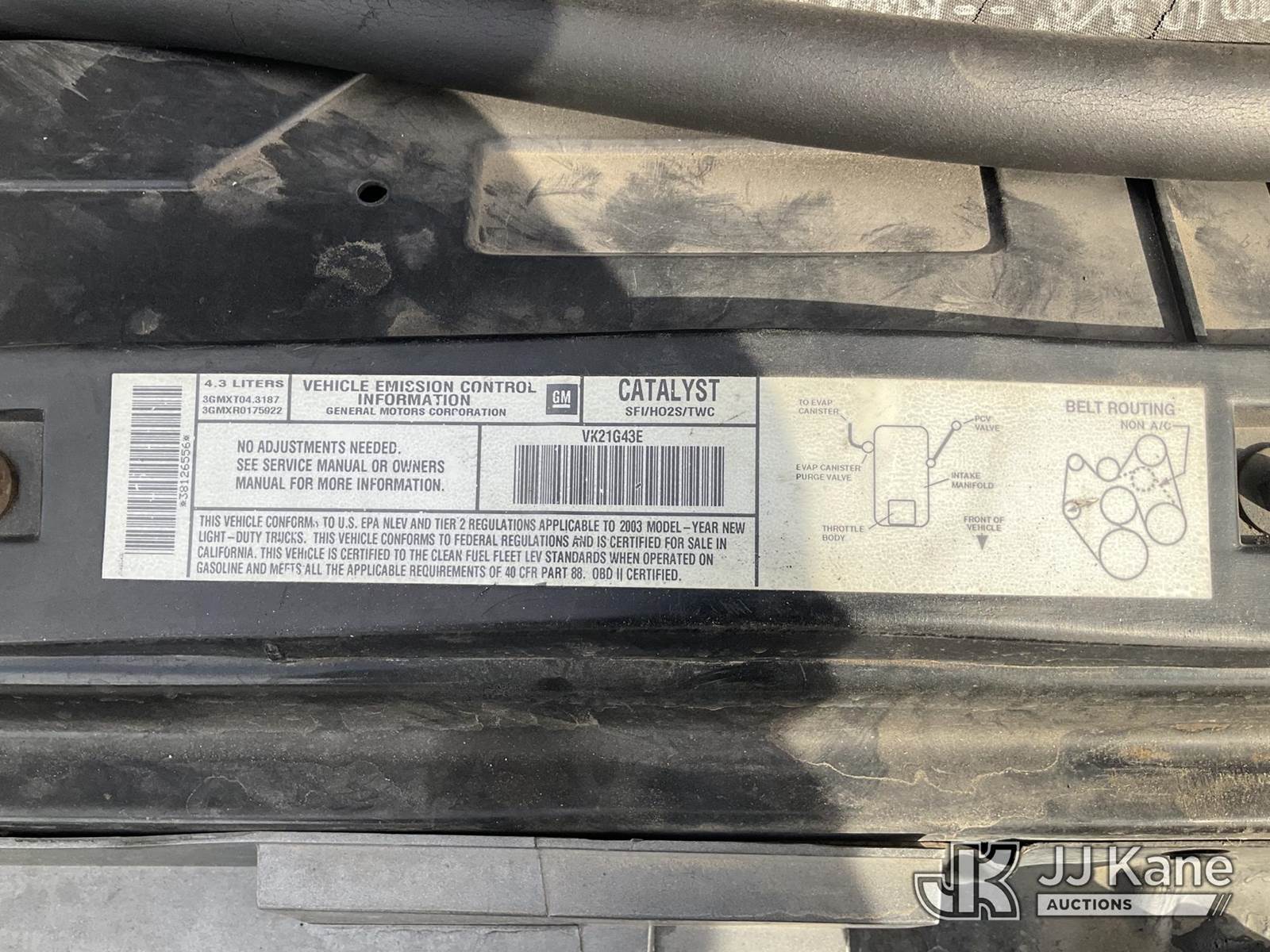 2003 GMC Sonoma Extended-Cab Pickup Truck, 6-cyl gas, 4-Speed Automatic, A/C, (Exempt from Odometer Disclosure - Reads 100,012 miles) (Runs & Moves, Fuel Gauge On, Cluster Not Operating) (Bidding Restricted to Licensed Vehicle Dealers Only), This is a Titled Item NOTE: This unit is being sold AS IS/WHERE IS via Timed Auction and is located in Jurupa Valley, CA. Inspection & preview days for this unit are the 2 business days prior to the first day of items closing for this auction, item is located at 4510 Muth Way Jurupa Valley, CA 92509 and hours of operations are 8a-4p. For pre-sale questions, please contact please contact Office Staff @ (310) 353-7140. Dealer License Number 45696. (Buyer is responsible for removal. Assistance by consignor or JJ Kane Auctioneers is not assured.)
