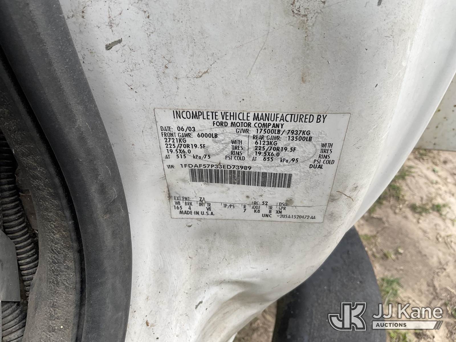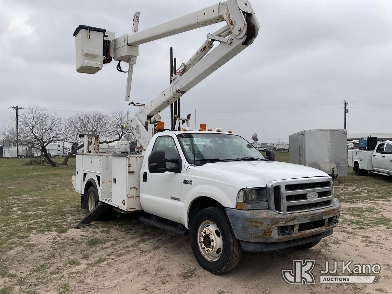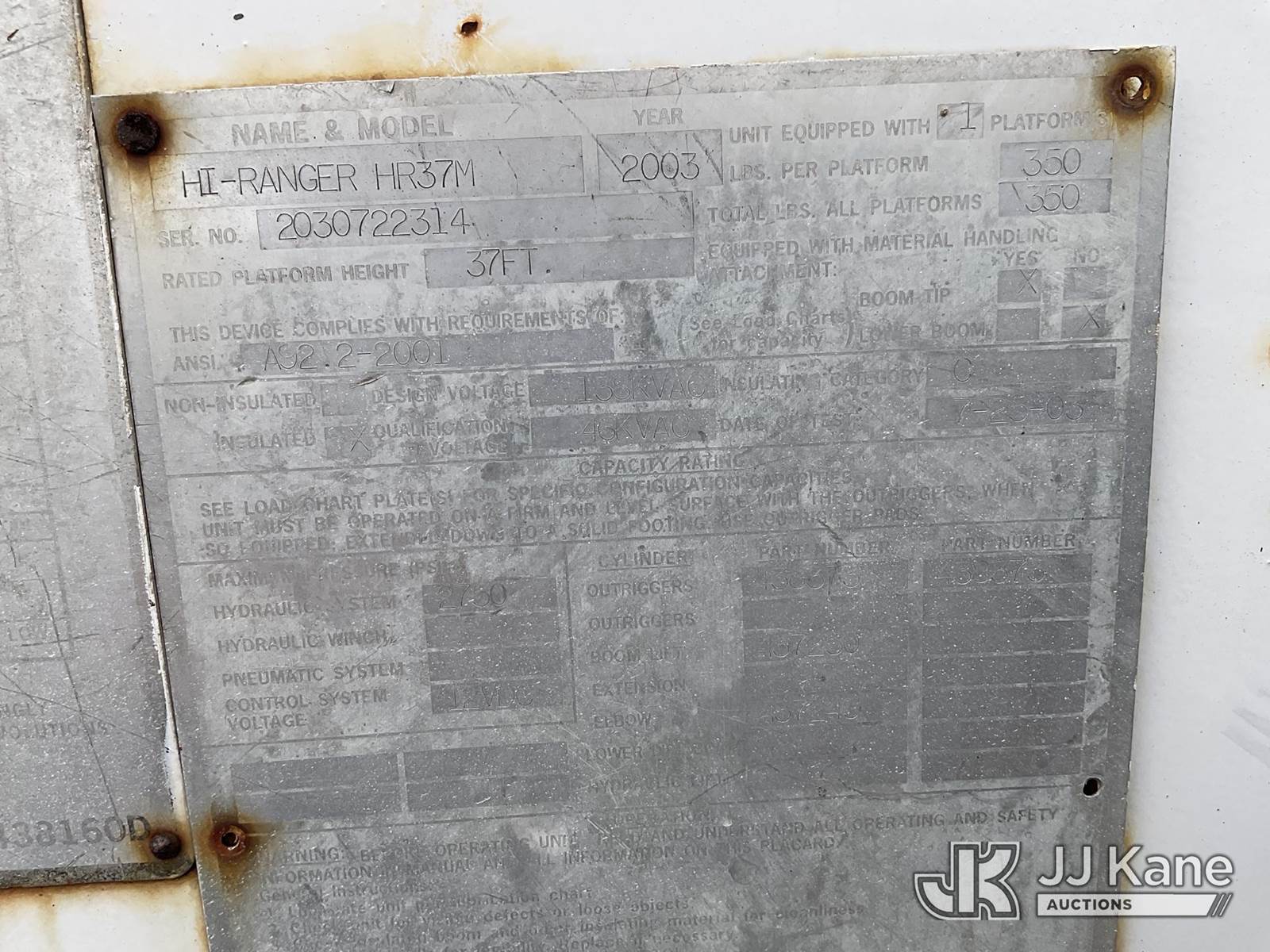 HiRanger HR37-M, 42 ft, Articulating Material Handling Bucket Truck s/n 2030722314, with single-man bucket & 2 hyd outriggers, mounted behind cab on 2003 Ford F-550 Regular Cab 4WD DRW Utility Truck, 6.0L V8 OHV 32V TURBO DIESEL Auto, A/C, (Exempt from Odometer Disclosure - Reads 210,205 miles) (Runs, Moves & Upper Operates) This is a Titled Item NOTE: This unit is being sold AS IS/WHERE IS via Timed Auction and is located in Victoria, TX. For more information & removal arrangements please contact Charles DeKanter @ (281) 910-7147 (Missing manuals, See Auction Company for Manufacturers Information to obtain manuals) (Buyer is responsible for removal. Assistance by consignor or JJ Kane Auctions is not assured.)