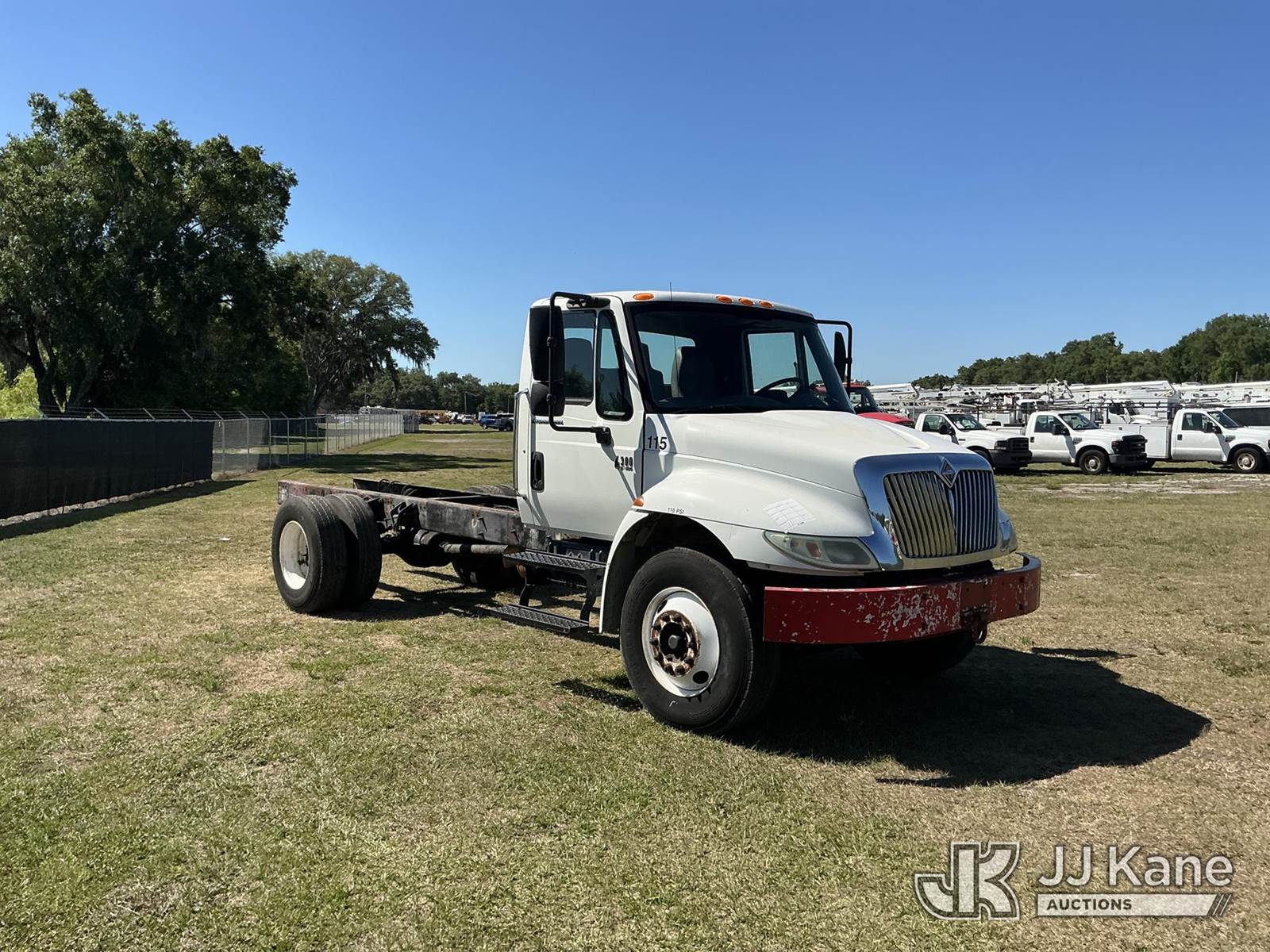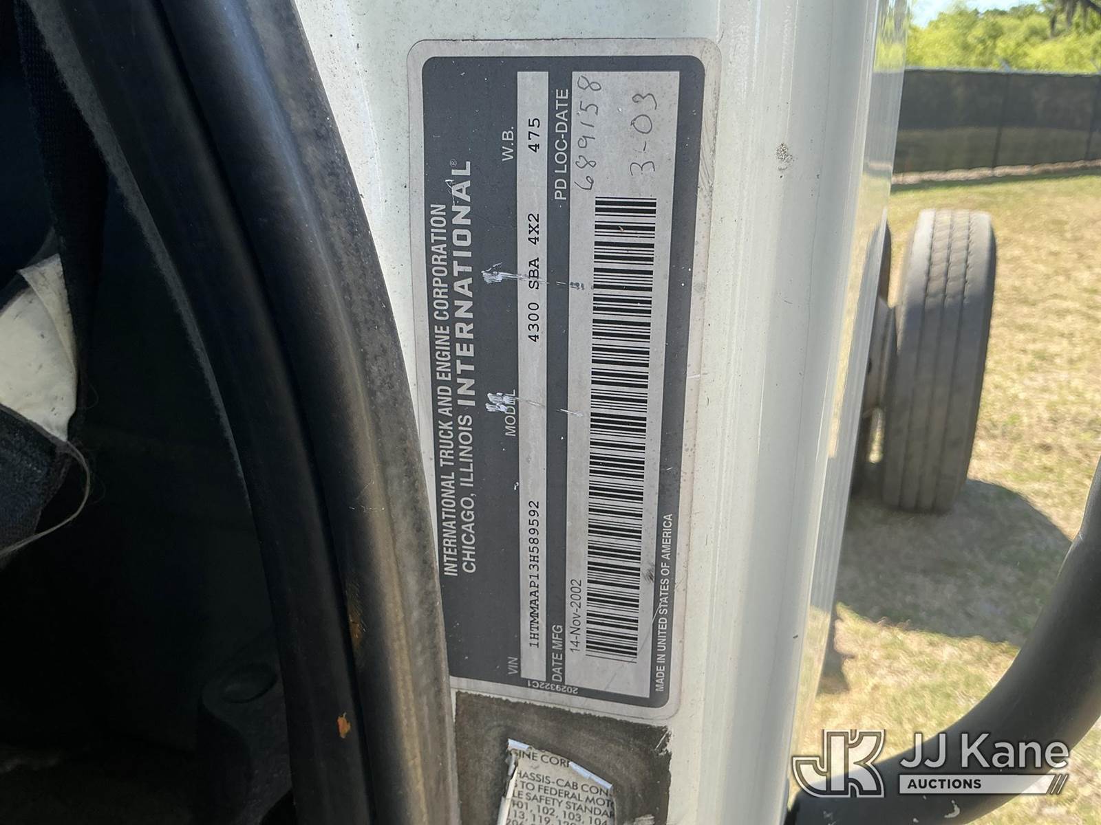 2003 International 4300 Cab & Chassis, DT466 Diesel, 4X2, 6-spd, A/C, (Exempt from Odometer Disclosure - Reads 407,410 miles) (Runs & Moves)(FL Residents Purchasing Titled Items – tax, title & registration fees will be collected at the maximum rate of $400.00 under 25,999 and $800.00 for Over 26,000 and $250.00 trailers – Proof of insurance is mandatory; Out of State Residents Purchasing Title Items – tax will be collected based upon your state rate.) (Reads 23,590 hours) This is a Titled Item NOTE: This unit is being sold AS IS/WHERE IS via Timed Auction and is located in Thonotosassa, FL. Inspection & preview days for this unit are the 2 business days prior to the first day of items closing for this auction, item is located at 11720 N US 301 Thonotosassa, Fl 33592 and hours of operations are 8a-4p. For pre-sale questions, please contact Office Staff @ (813) 986-2485. (Buyer is responsible for removal. Assistance by consignor or JJ Kane Auctions is not assured.)