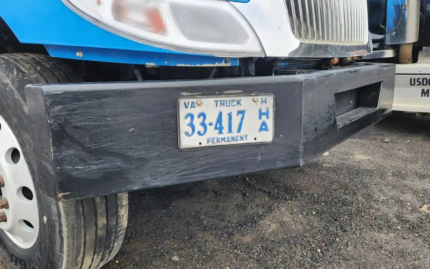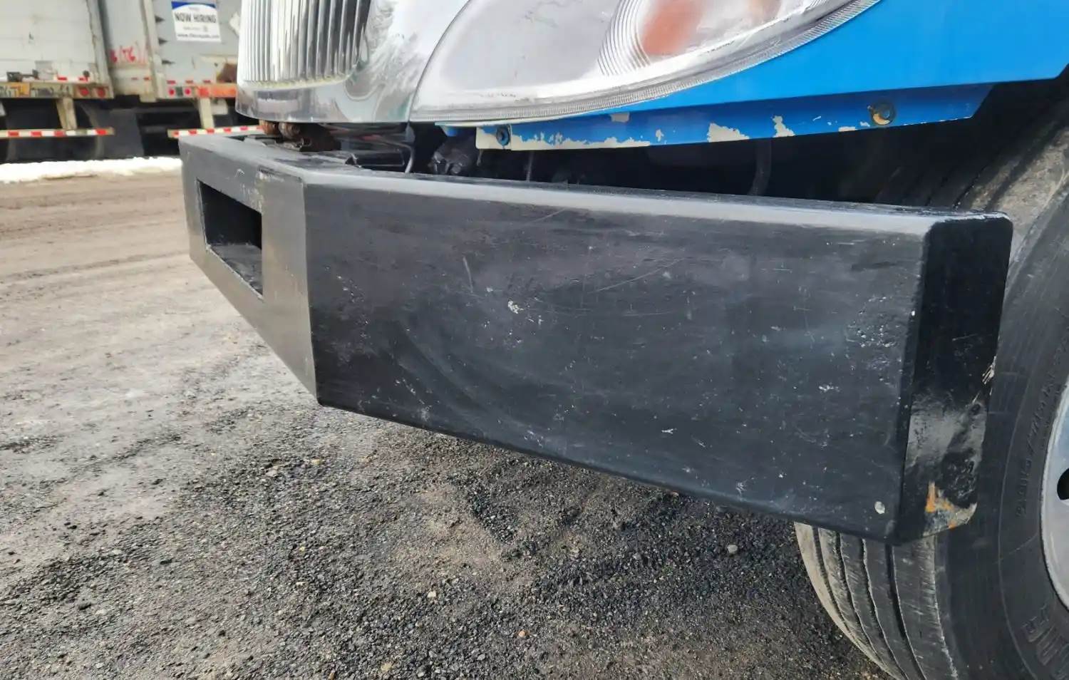 (Used) 2003 International 4300, BUMPER- Color: Black, Material: Steel, Dimensions: L=111", H=12", Reference images for condition, For more information about this item, give us a call. We ship Worldwide! (CRG HEAVY TRUCK PARTS) 929 W PULASKI HWY ELKTON, MD 21921, Material: Steel