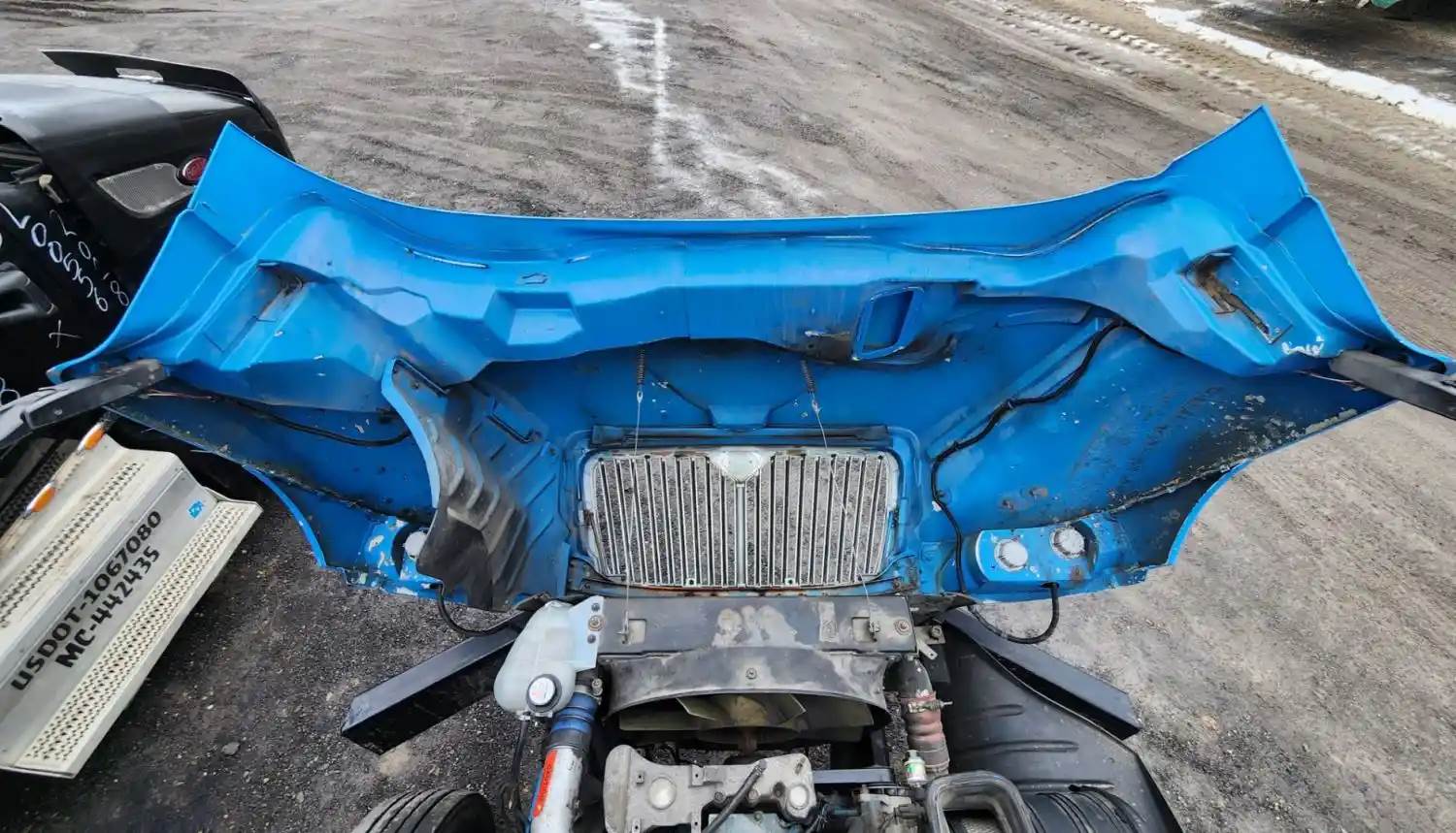 (Used) 2003 International 4300, HOOD ASSEMBLY- Length: 37 ½" From Cowl to grille, Color: Blue, Material: Composite, Reference images for condition, For more information about this item, give us a call. We ship Worldwide! (CRG HEAVY TRUCK PARTS) 929 W PULASKI HWY ELKTON, MD 21921, Length: 37 ½" From Cowl to grille, Type: Manual