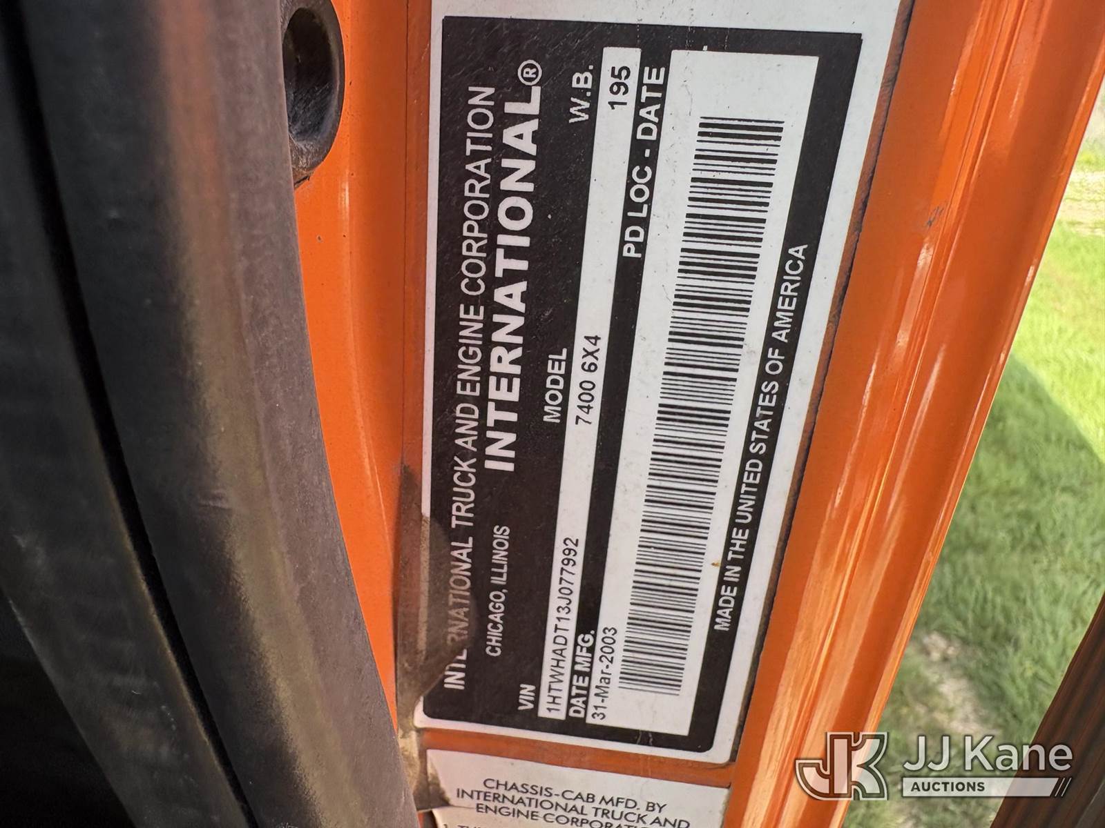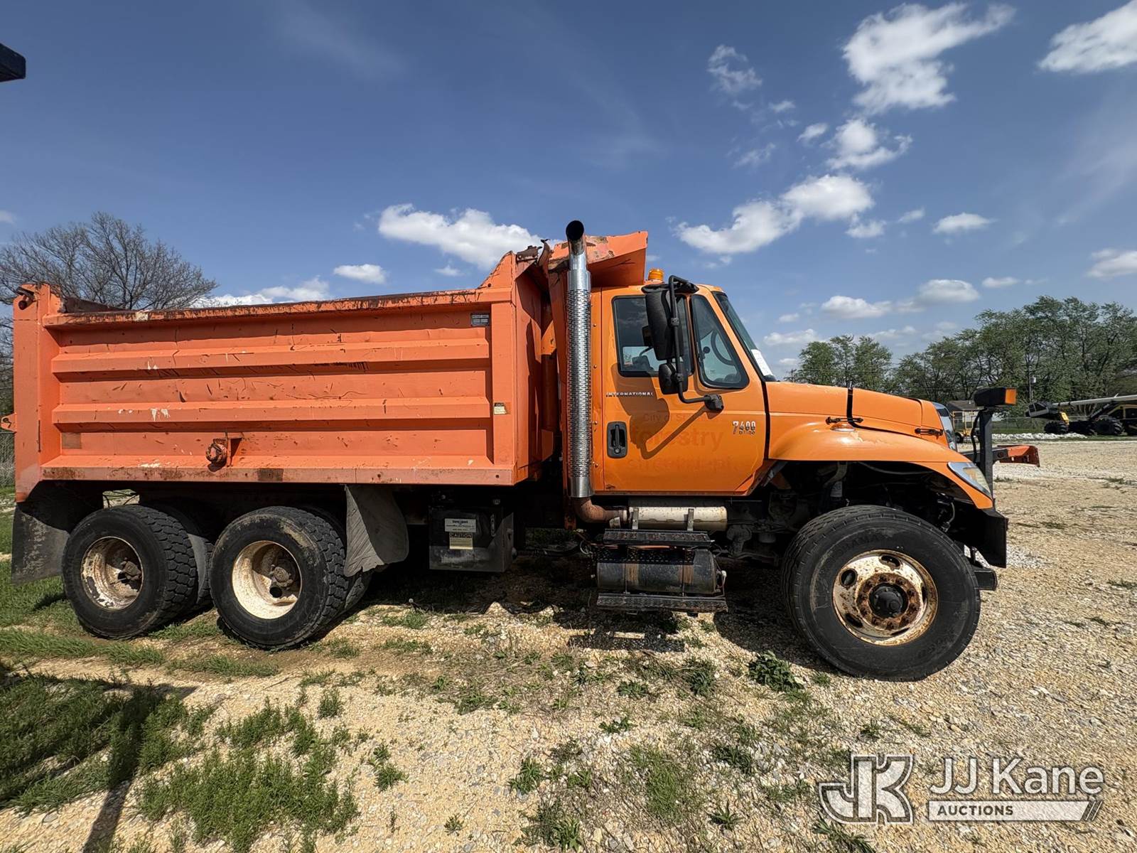2003 International 7400 T/A Dump Truck, s/n 1HTWHADT13J077992, 8.7L L6 DIESEL 6X4, Auto, with Front Bumper Plow Attachment, True Mileage Unknown ((Not Running, Condition Unknown) (Engine or Major Components Missing, Upper Condition Unknown, Corrosion, Exterior Defects-See Pictures)) This is a Titled Item NOTE: This unit is being sold AS IS/WHERE IS via Timed Auction and is located in Hawk Point, MO. Inspection & preview days for this unit are the 2 business days prior to the first day of items closing for this auction, item is located at 25 State Highway A Hawk Point, MO 63349 and hours of operations are 8a-4p. For pre-sale questions, please contact Adam Stanek at (636) 295-1594. (Buyer is responsible for removal. Assistance by consignor or JJ Kane Auctions is not assured.)
