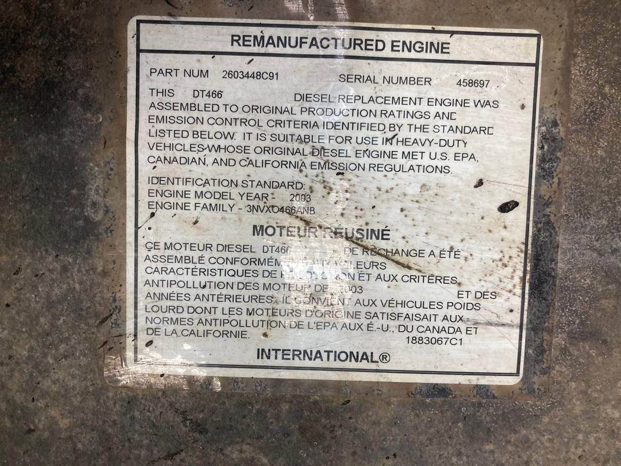 2003 International DT466E Diesel Engine - 230 HP