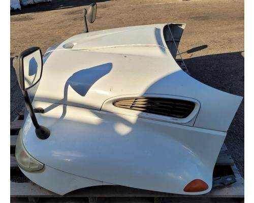 2003 International 4200 Hood, 41"L, P/N 3535801C97, 3807254C97. Small Crack Top Right On Grill, Cracks On Right Fender, Includes Mirrors. Good Reusable Condition.