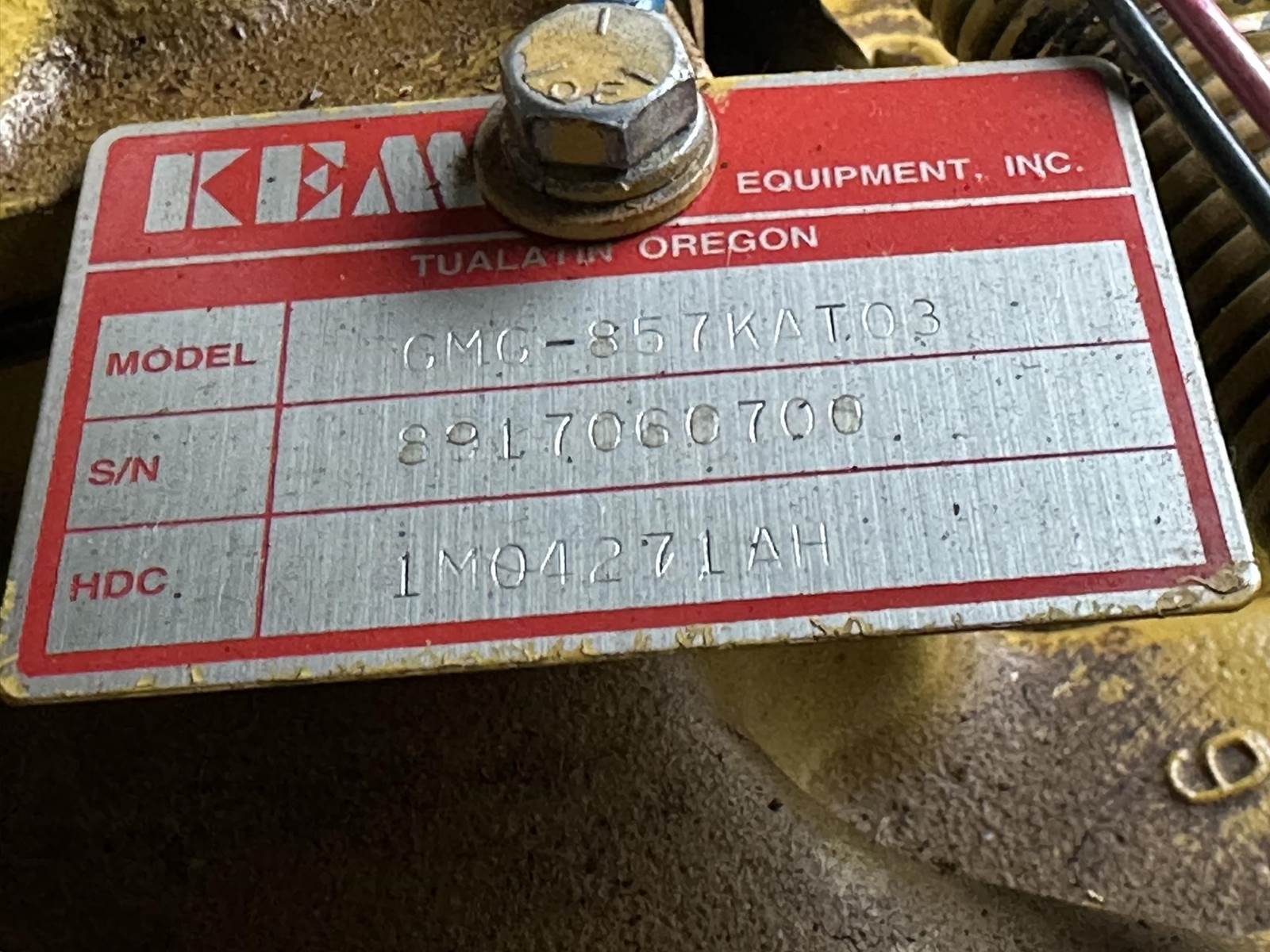 Katolight 45 kW standby (40 kW prime) natural gas generator set model N45FGG4, SN-LM344209 66403. GM 5.7L engine rated 88 HP at 1800 RPM, SN-8917060700. 1/60/120/240V 12 lead reconnectable to other voltages. 200 Amp main-line circuit breaker. Coolant heater. Weather enclosure. 410 Hrs. Year 2003. Load test pending. Overall dimensions 46W x 110L x 90H, approx. 2500 lbs. FOB Waukesha, WI