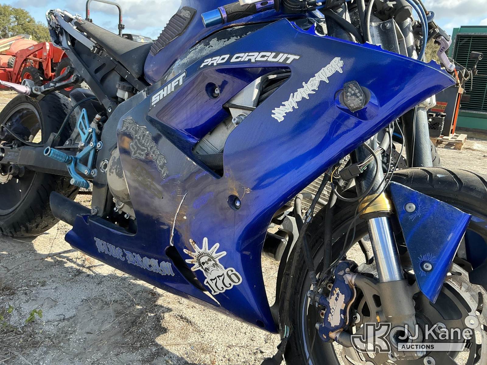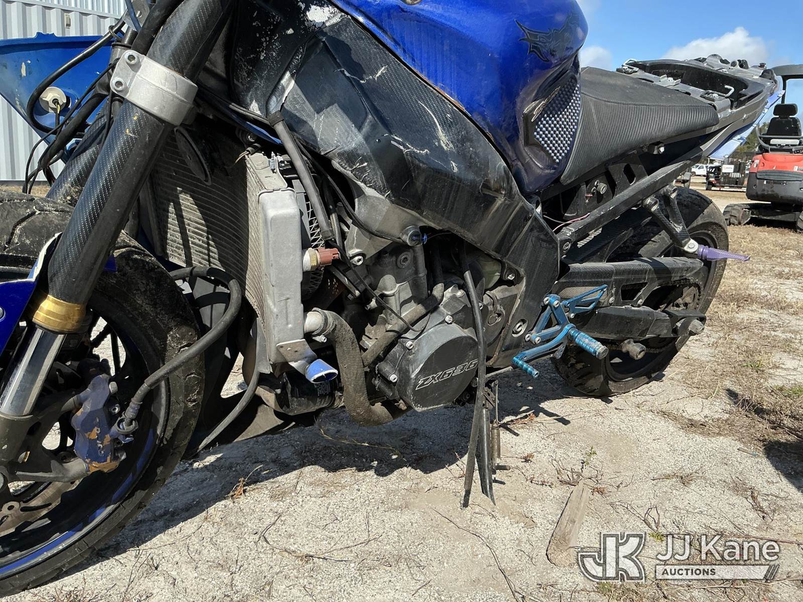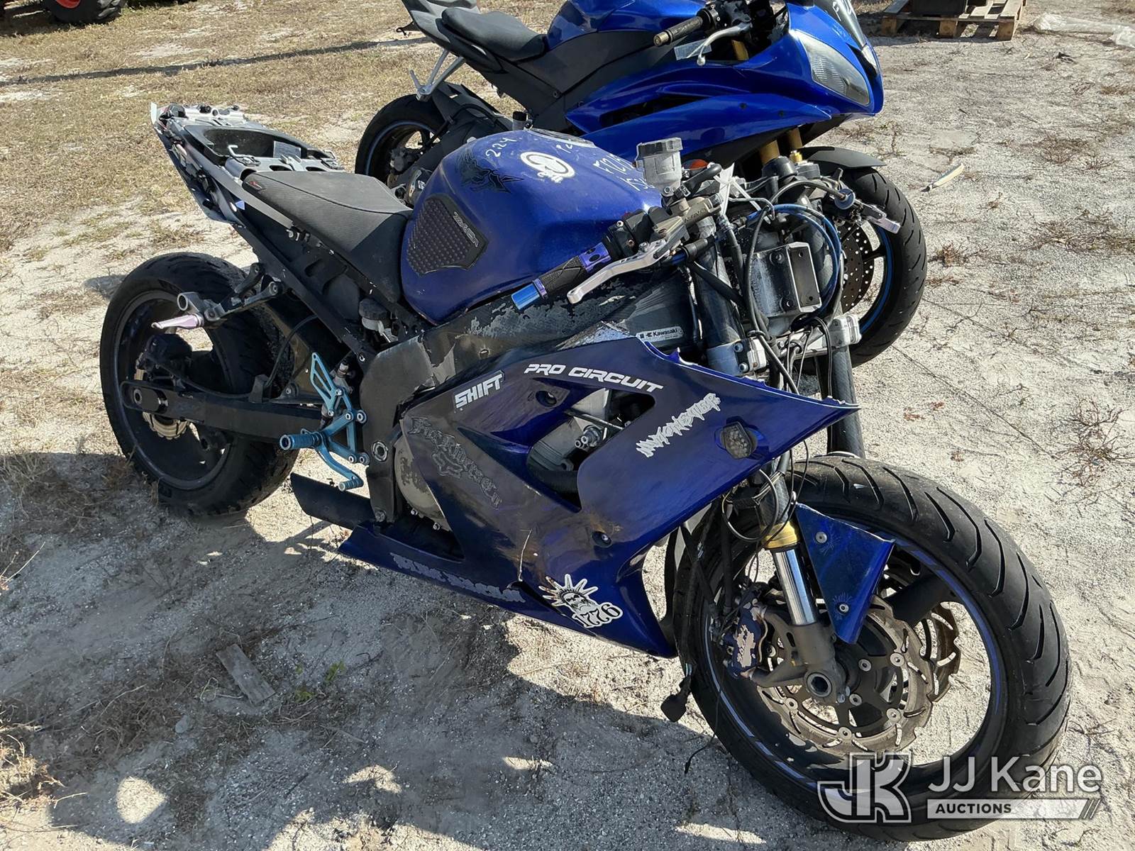 2003 Kawasaki ZX-6R Motorcycle, 636cc gas, 6-spd, True Mileage Unknown State of FL Unit (Not Running, Condition Unknown, Missing Parts) (FL Residents Purchasing Titled Items - tax, title & registration fees will be collected at the maximum rate of $400.00 under 25,999 and $800.00 for Over 26,000 and $250.00 trailers - Proof of insurance is mandatory; Out of State Residents Purchasing Title Items - tax will be collected based upon your state rate. (FL Residents Purchasing Titled Items – tax, title & registration fees will be collected at the maximum rate of $400.00 under 25,999 and $800.00 for Over 26,000 and $250.00 trailers – Proof of insurance is mandatory; Out of State Residents Purchasing Title Items – tax will be collected based upon your state rate.) This is a Titled Item NOTE: This unit is being sold AS IS/WHERE IS via Timed Auction and is located in Thonotosassa, FL. Inspection & preview days for this unit are the 2 business days prior to the first day of items closing for this auction, item is located at 11720 N US 301 Thonotosassa, Fl 33592 and hours of operations are 8a-4p. For pre-sale questions, please contact Office Staff @ (813) 986-2485. (Buyer is responsible for removal. Assistance by consignor or JJ Kane Auctions is not assured.)
