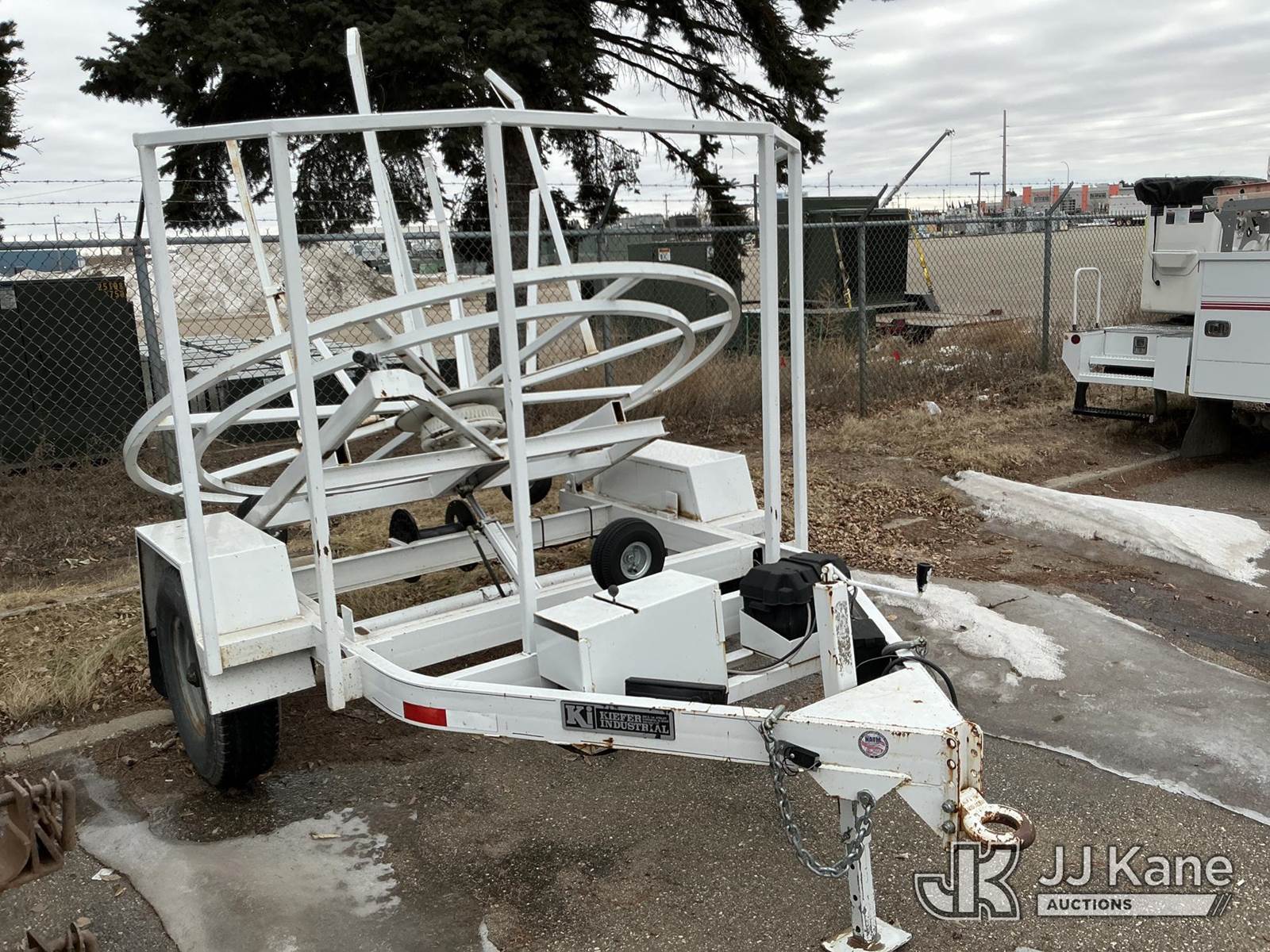 2003 Kiefer Industrial TL Reel Trailer, with 96 inch width reel capacity, Investor Utility Owned (Hydraulics Work) This is a Titled Item NOTE: This unit is being sold AS IS/WHERE IS via Timed Auction and is located in Bismarck, ND. For specific technical information or questions about this item, contact Ben Boucher at (612) 616-2798. For load-out and pick information, reference the hauler sheet sent out after purchase. These items are used and may contain defects that are not immediately detectable. Text descriptions and photos given are meant to be used as a guide only. The conditions are provided by the consignor. The Buyer is responsible for inspecting the item before bidding. Purchaser acknowledges ALL lots must be removed within 10 business days of the Auction, or a storage fee may be incurred. All information provided is believed to be correct but no warranty as such is either intended or implied. All items are sold AS IS - WHERE IS AND WITH ALL FAULTS AND DEFECTS THEREIN. (Buyer is responsible for removal. Assistance by consignor or JJ Kane Auctions is not assured.)