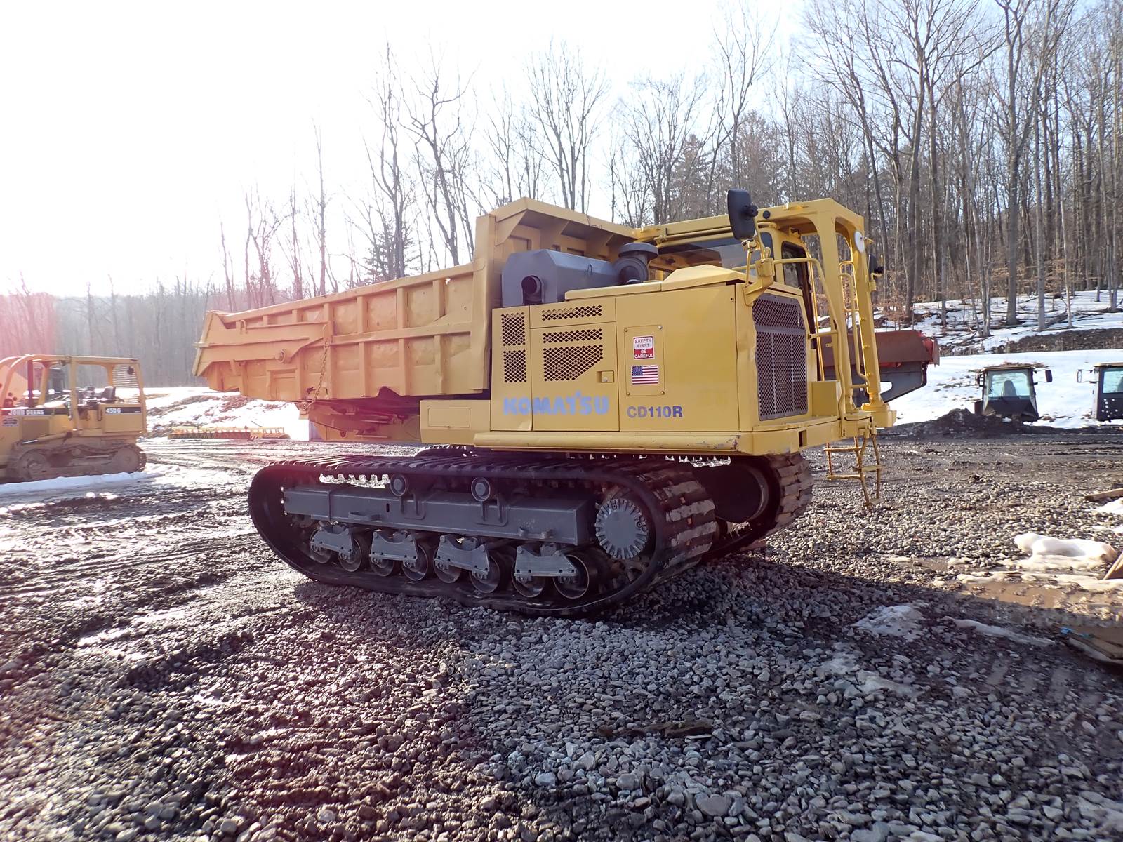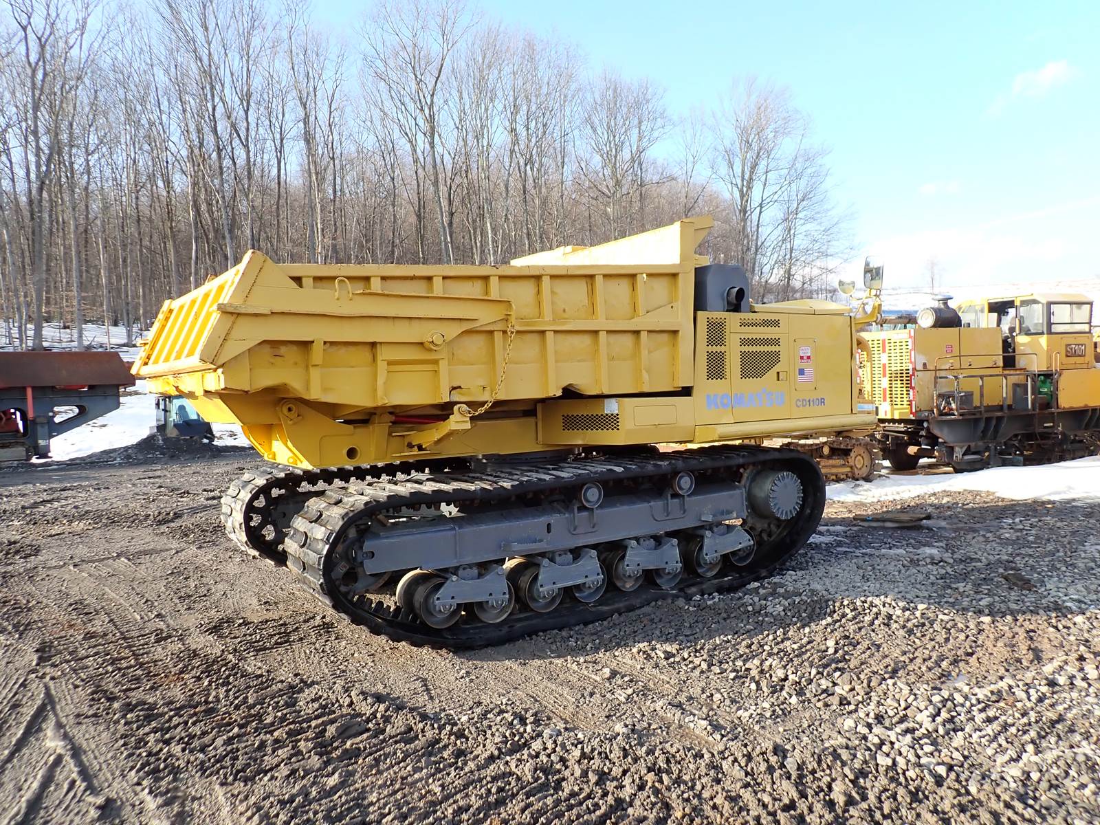 2003 Komatsu CD110R-1 crawler carrier, EROPS, heat, A/C, Komatsu turbo diesel engine, full 360 degree swivel dump bed, rubber tracks, 2 speed hydrostatic drive, 7943 hours. GOOD RUNNING MACHINE -- VERY HARD TO FIND SETUP HERE AND FOR A GREAT PRICE !!