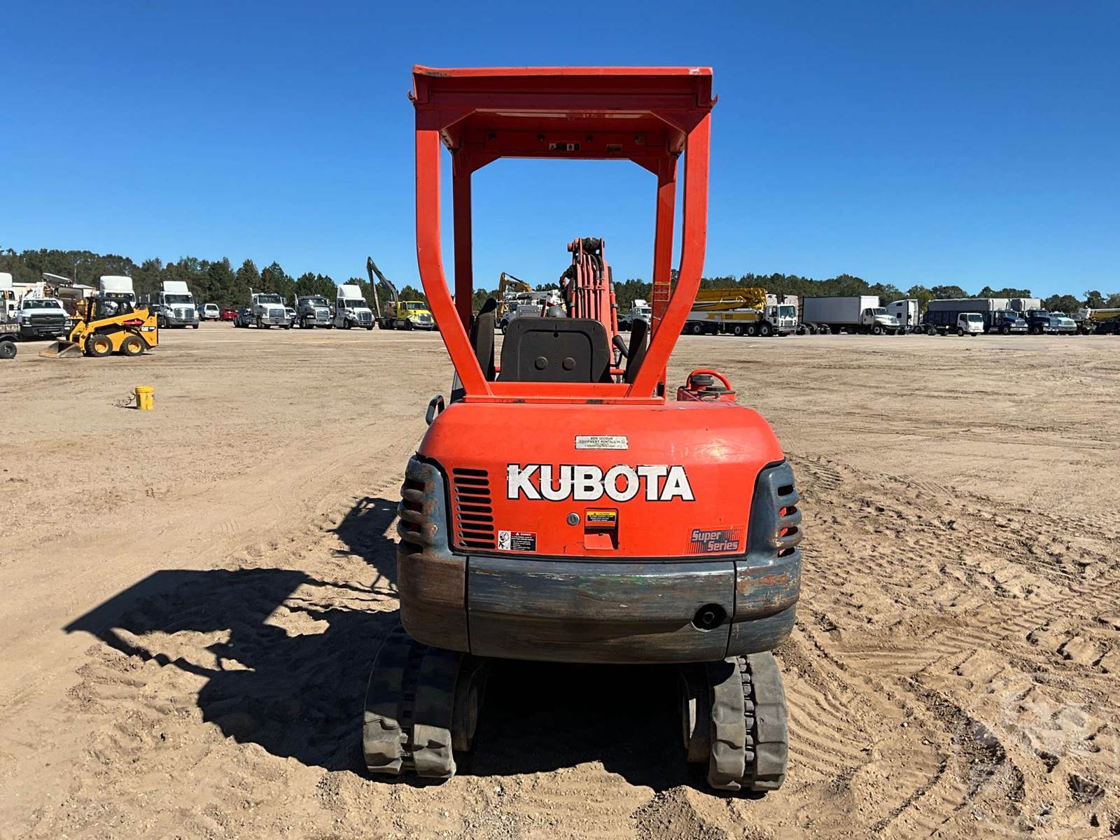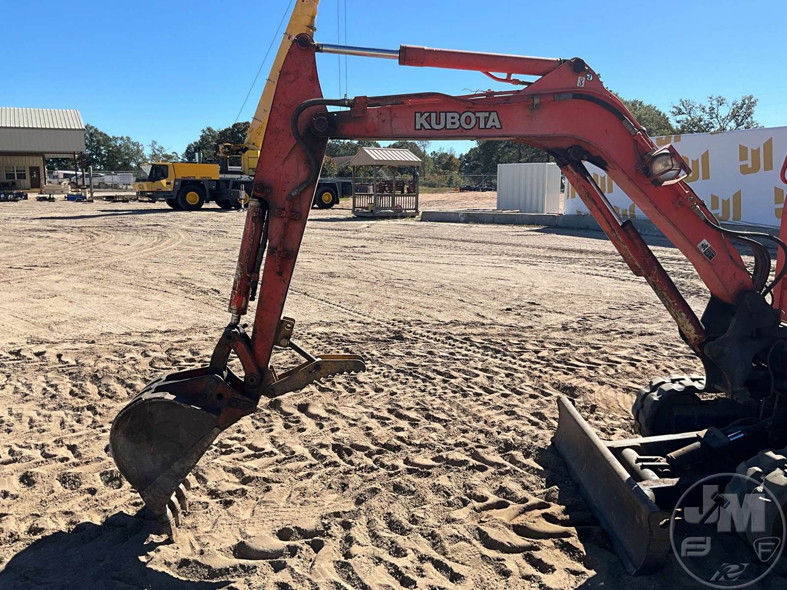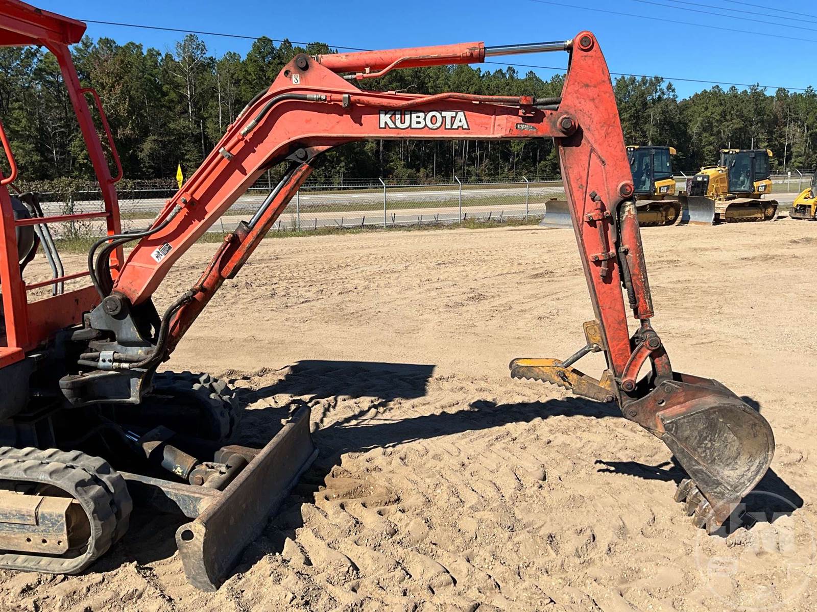 KUBOTA MINI EXCAVATOR, CANOPY, 4'3" STICK, 16" BUCKET, MANUAL COUPLER, MANUAL THUMB, AUX HYDRAULICS, SWING BOOM, DOZER, RUBBER TRACKS, HOUR METER READS: 2530