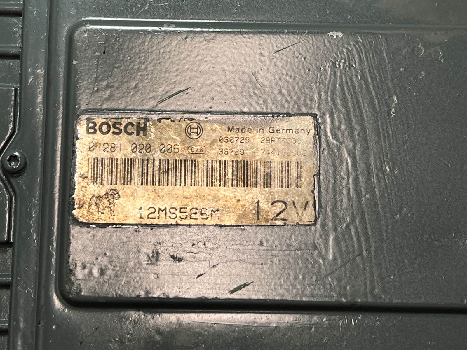 (GOOD USED & TESTED) Mack Engine Control Module (ECM) 12MS526M For Sale, OEM Part # 12MS526M, Bosch Part # 0 281 020 006, 12V, Pulled Off 2003 Mack AI 300HP @ 1950RPM, Driver's Side, Serial # 030729, Stock # 10125