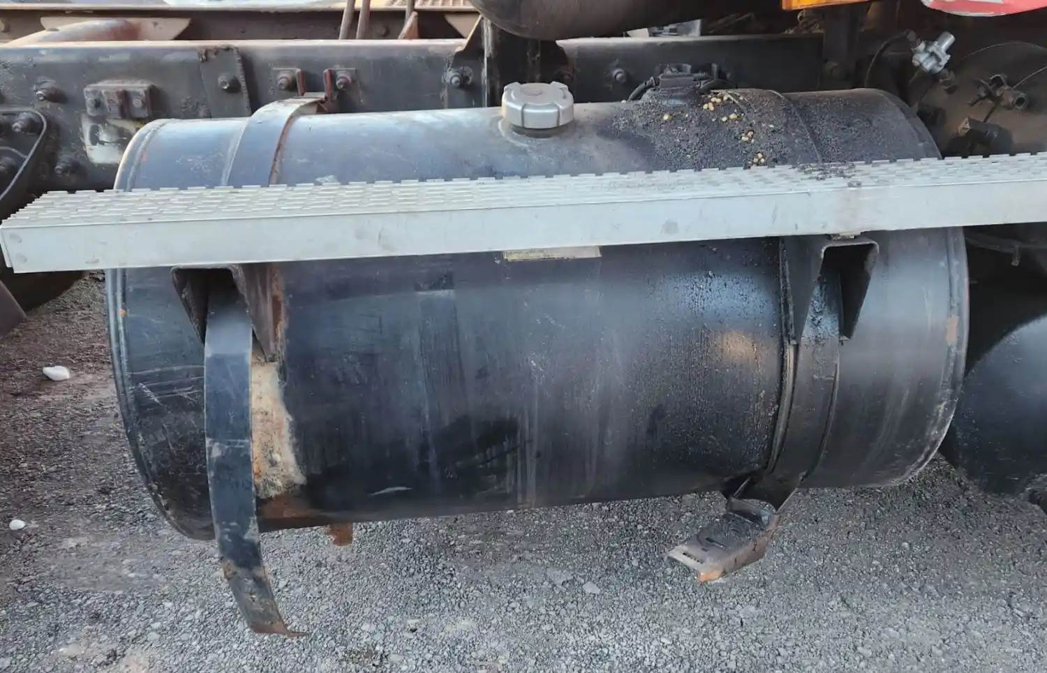 (Used) 2003 Mack CH613, FUEL TANK- Part Number: 2MB41077M2, Side: Passenger Right Side, Capacity: 90 Gallons, Material: Steel, Shape: Round, Dimensions: L=42 ½", D=25", It's Dented, Damage Reference images for condition, For more information about this item, give us a call. We ship Worldwide! (CRG HEAVY TRUCK PARTS) 929 W PULASKI HWY ELKTON, MD 21921, Capacity: 90 Gallons, Dimensions: L=42 ½", D=25", Material: Steel, Fuel Tank Shape: Round