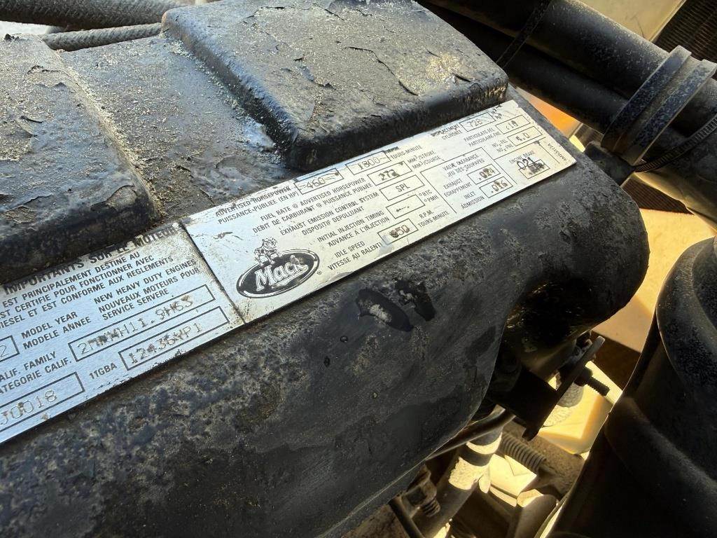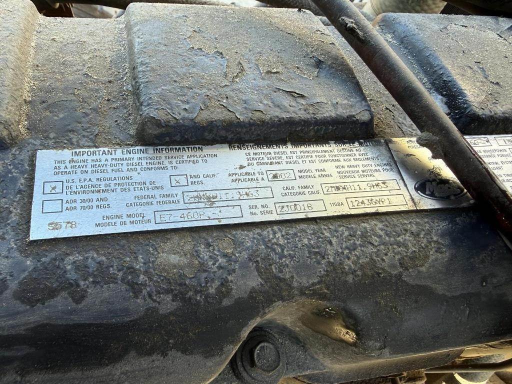 Location: Frazee, MN 460HP Mack E7 Turbo Diesel Engine, Eaton Fuller 8LL 8 Speed + Lo & Lo-Lo Manual Transmission, GVWR: 57300LB, 14300LB Front Axle, Differential Lock, Air Ride, Engine Brake, Air Lift Pusher Axle, Air Release Fifth Wheel Slide, Dual Fuel Tanks, Single Line Wet Kit, Heat, A/C, Radio, Cruise Control, Air Ride Drivers Seat, CB Radio, Full Aluminum Rims, 11R22.5 Front Tires, 255/70R22.5 Pusher Axle Tires, 11R22.5 Drive Tires VIN: 1M2AD62Y23MO12366 Miles Shown: 578484