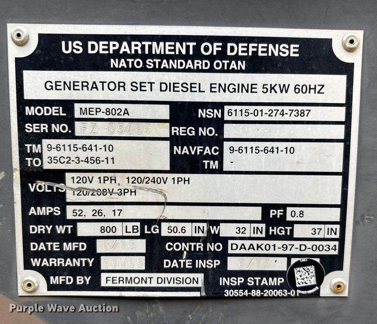2003 MEP-802A generator