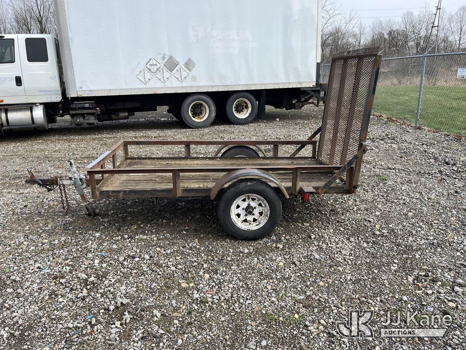 2003 Top Brand Material Trailer, with 8 ft. bed, ((Body & Rust Damage) (Seller States: Open Trailer - Suggest Flatbed As It Has Been Sitting For A Very Long Time. Tires Are Most Likely Not Roadworthy)) This is a Titled Item NOTE: This unit is being sold AS IS/WHERE IS via Timed Auction and is located in Louisville, OH. Inspection & preview days for this unit are the 2 business days prior to the first day of items closing for this auction, item is located at 3648 Beck Ave Louisville, OH 44641 and hours of operations are 8a-4p. For pre-sale questions, please contact Aaron Coleman @ (330) 495-4041 or aaron.coleman@jjkane.com. (Buyer is responsible for removal. Assistance by consignor or JJ Kane Auctions is not assured.)
