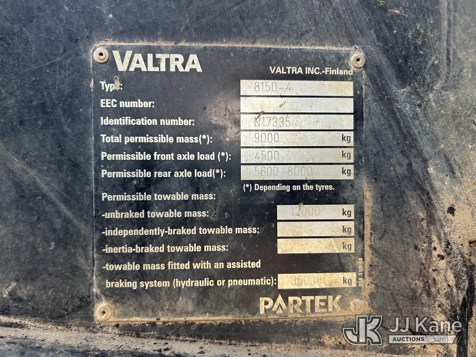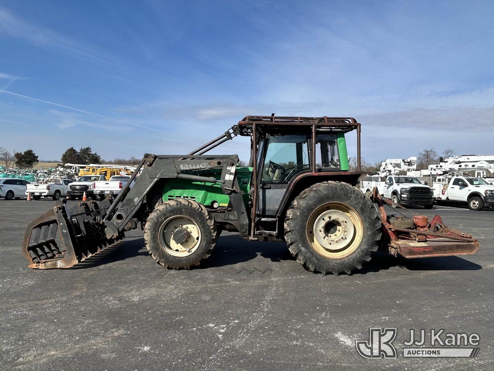 2003 Valtra 8150-4 Hi Tech Tractor Loader, s/n N17335, 6.6L diesel, 36 speed, with front grapple attachment & winch, rear brush mower, EROPS, (Runs, Moves & Operates) (Reads 10,416 hours) NOTE: This unit is being sold AS IS/WHERE IS via Timed Auction and is located in Berryville, AR. (Buyer is responsible for removal. Assistance by consignor or JJ Kane Auctions is not assured.)
