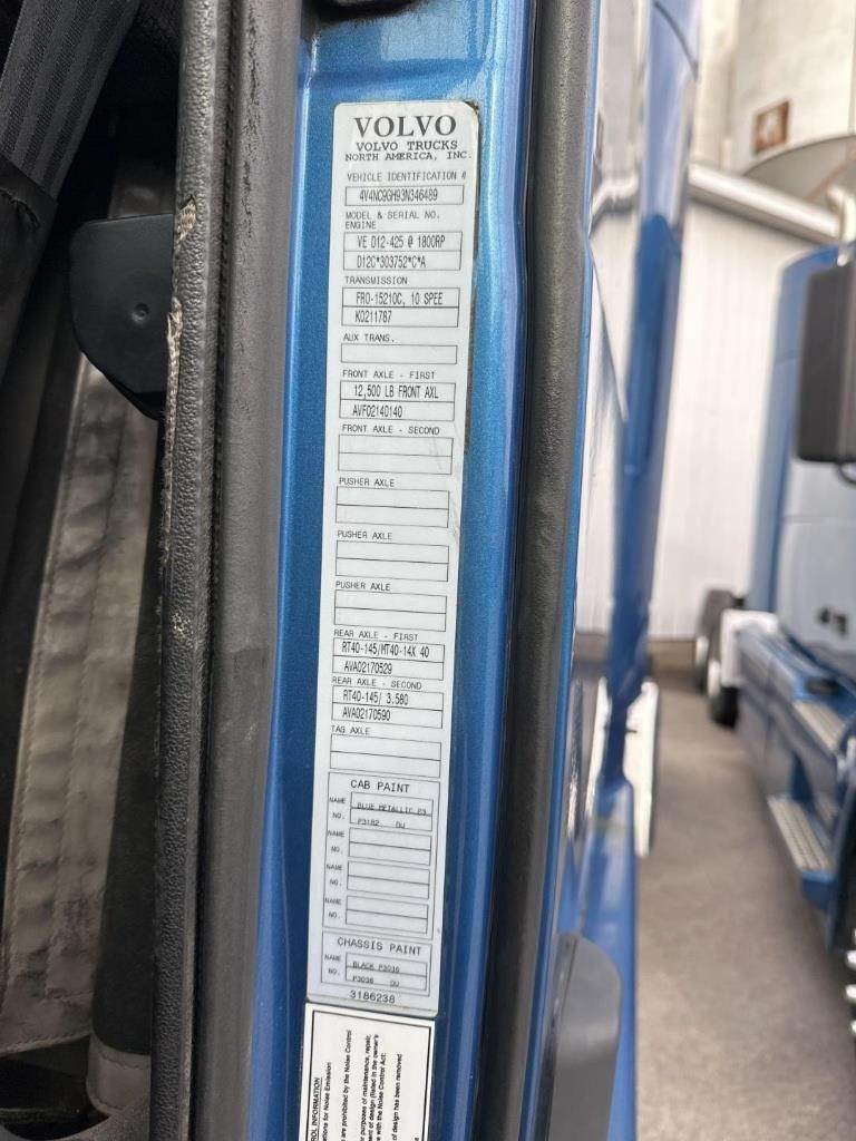 Location: Kaukauna, WI Volvo D12 425HP Turbo Diesel Engine, Eaton 10 Speed Manual Transmission, 50500LB GVWR, 12500LB GVWR Front Axle, 19000LB GVWR Rear Axles, Inter-AxleLock, Air Ride, Air Lock 5th Wheel Slide, Air Ride Seats, Power Windows, Power Mirrors, Power Locks, Heat, A/C, Radio, Steering Wheel Controls, Single Bunk Sleeper, Rear Climate Controls, Full Aluminum Rims, 295/75R22.5 Tires VIN: 4V4NC9GH93N346489 Miles Shown: 319514