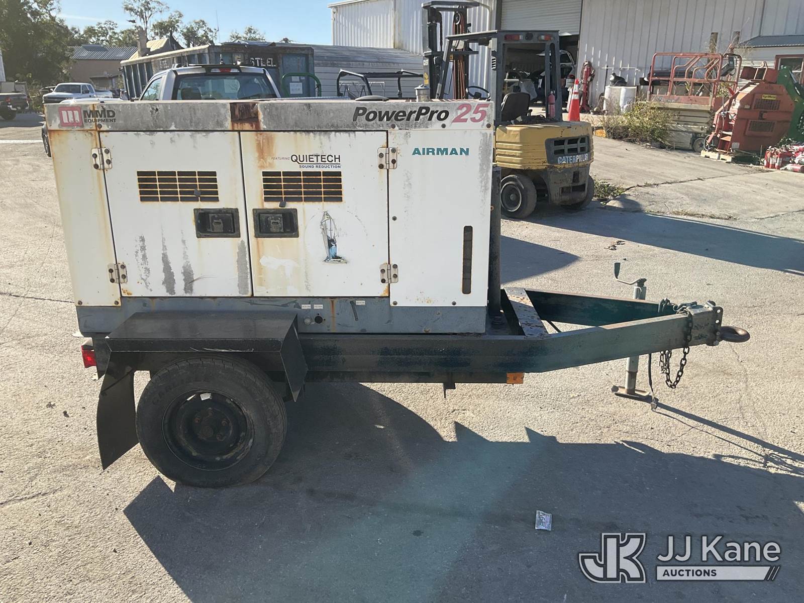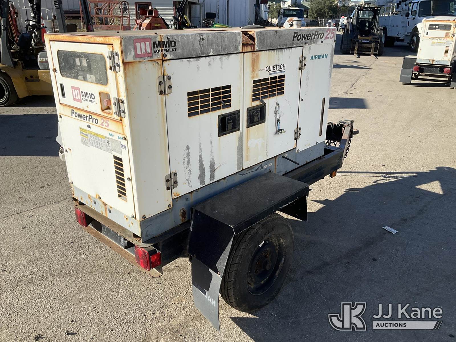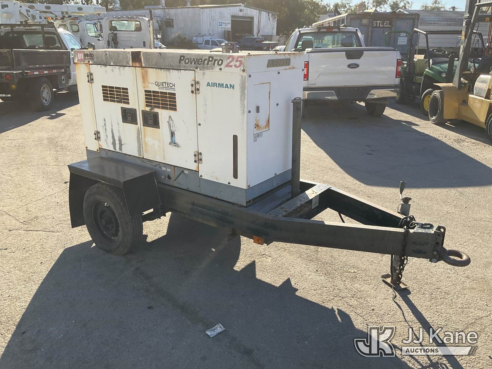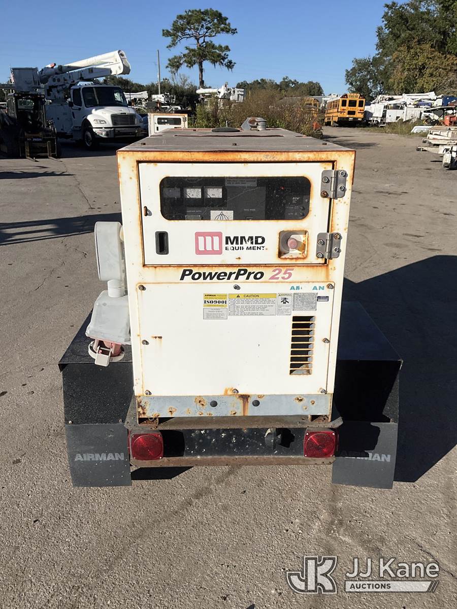 2004 Airman Power Pro 25 Generator, Isuzu diesel, trailer mtd. (No Title) (Not Running, Condition Unknown) (Reads 440 hours) NOTE: This unit is being sold AS IS/WHERE IS via Timed Auction and is located in Ocala, FL. For more information & removal arrangements please contact John Onders @ 689-444-7776. Load out by appointment only, Buyer/Hauler must present copy of paid invoice upon arrival. Purchaser acknowledges ALL lots must be removed within 5 business days of Auction, or a storage fee may be incurred. For load out and pick up information, please reference the release form sent out after purchase. (Buyer is responsible for removal. Assistance by consignor or JJ Kane Auctioneers is not assured.)
