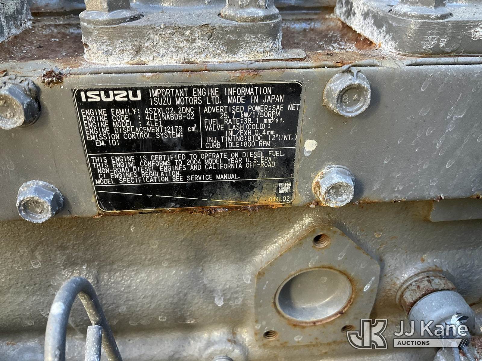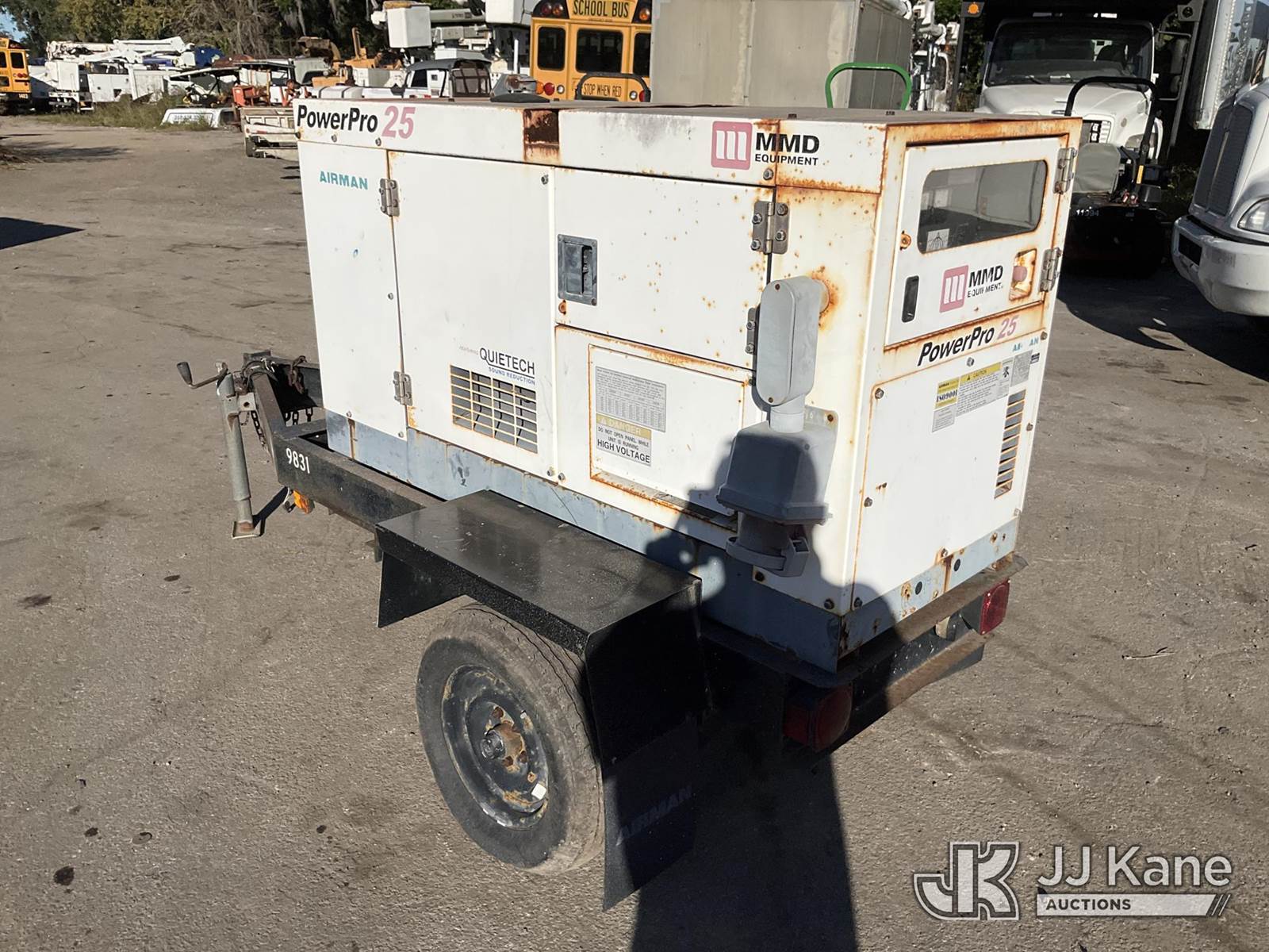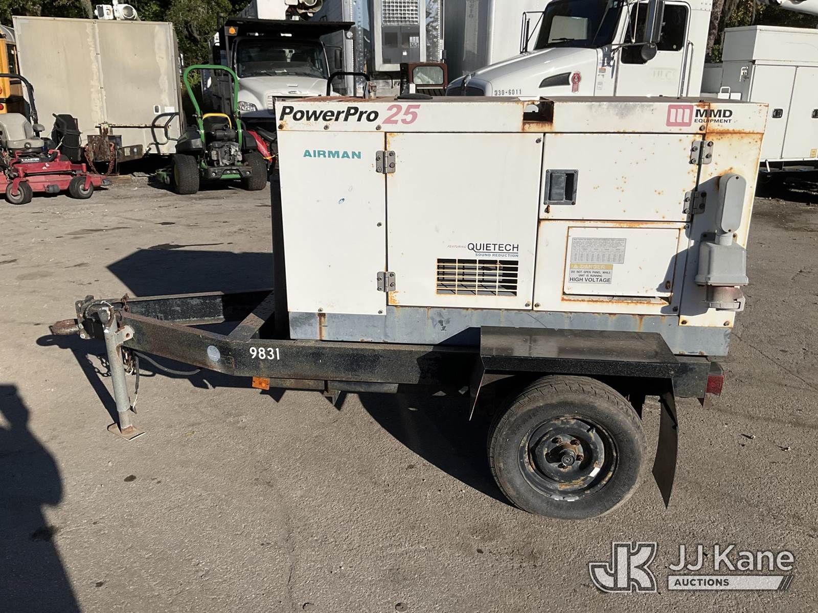 2004 Airman Power Pro 25 Generator, Isuzu diesel, trailer mtd. (No Title) (Not Running, Condition Unknown) (Reads 440 hours) NOTE: This unit is being sold AS IS/WHERE IS via Timed Auction and is located in Ocala, FL. For more information & removal arrangements please contact John Onders @ 689-444-7776. Load out by appointment only, Buyer/Hauler must present copy of paid invoice upon arrival. Purchaser acknowledges ALL lots must be removed within 5 business days of Auction, or a storage fee may be incurred. For load out and pick up information, please reference the release form sent out after purchase. (Buyer is responsible for removal. Assistance by consignor or JJ Kane Auctioneers is not assured.)