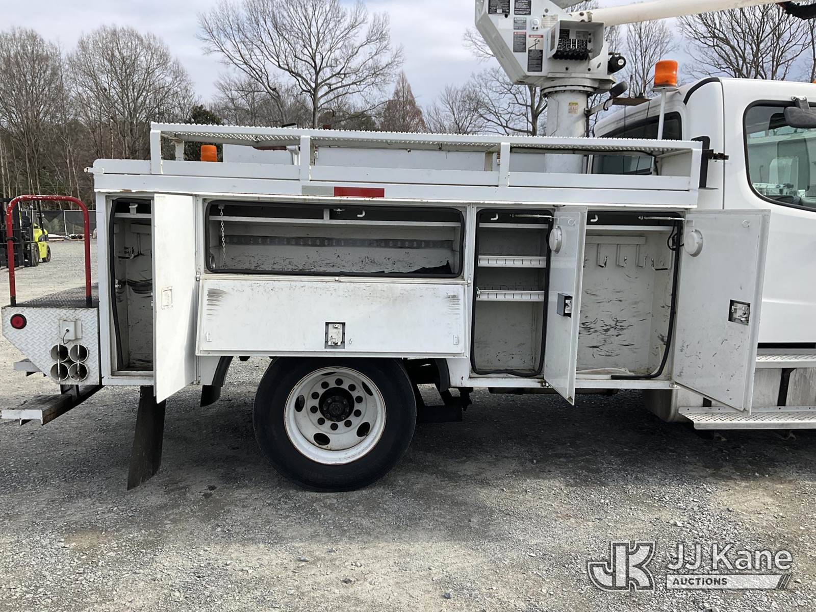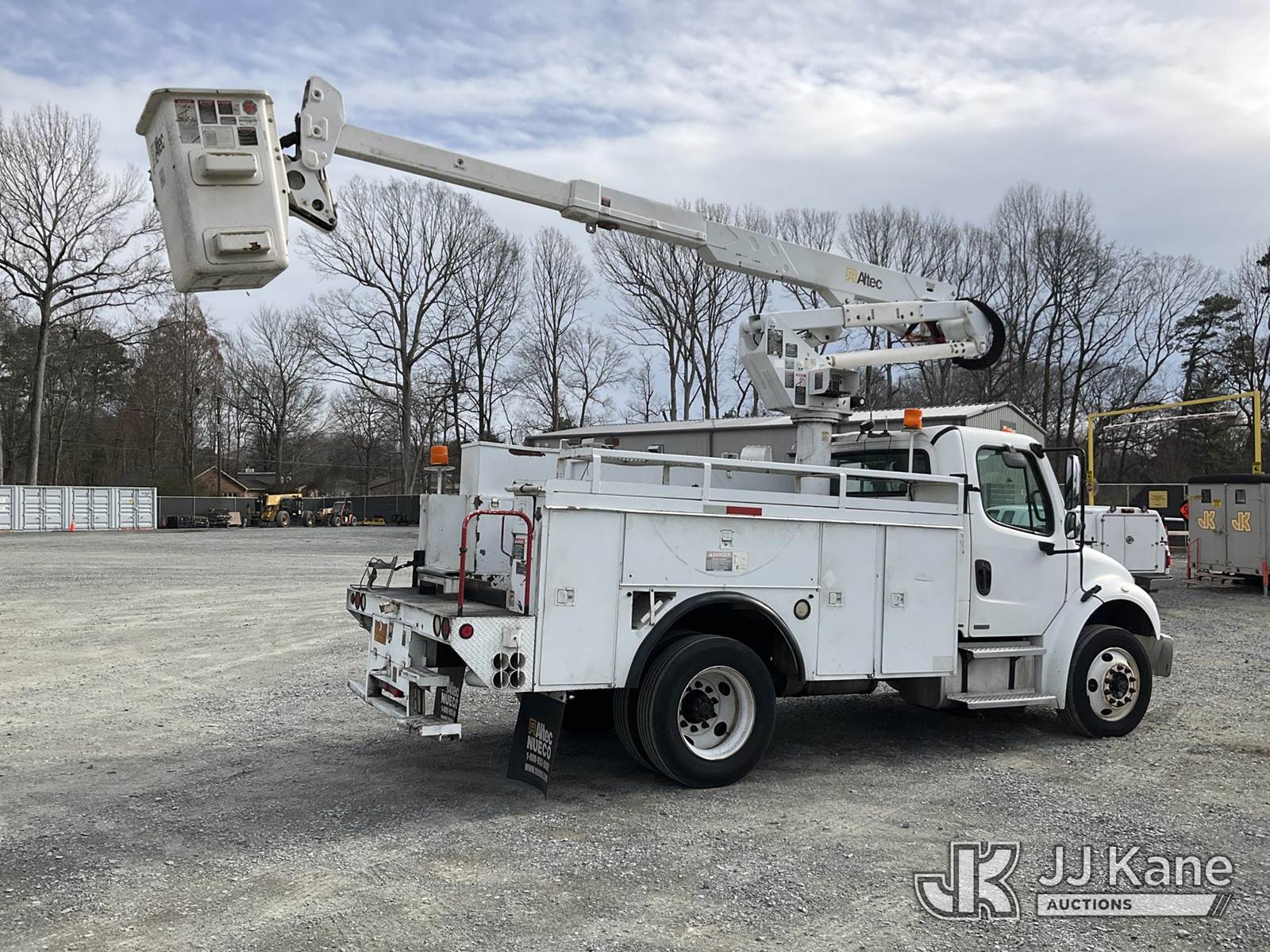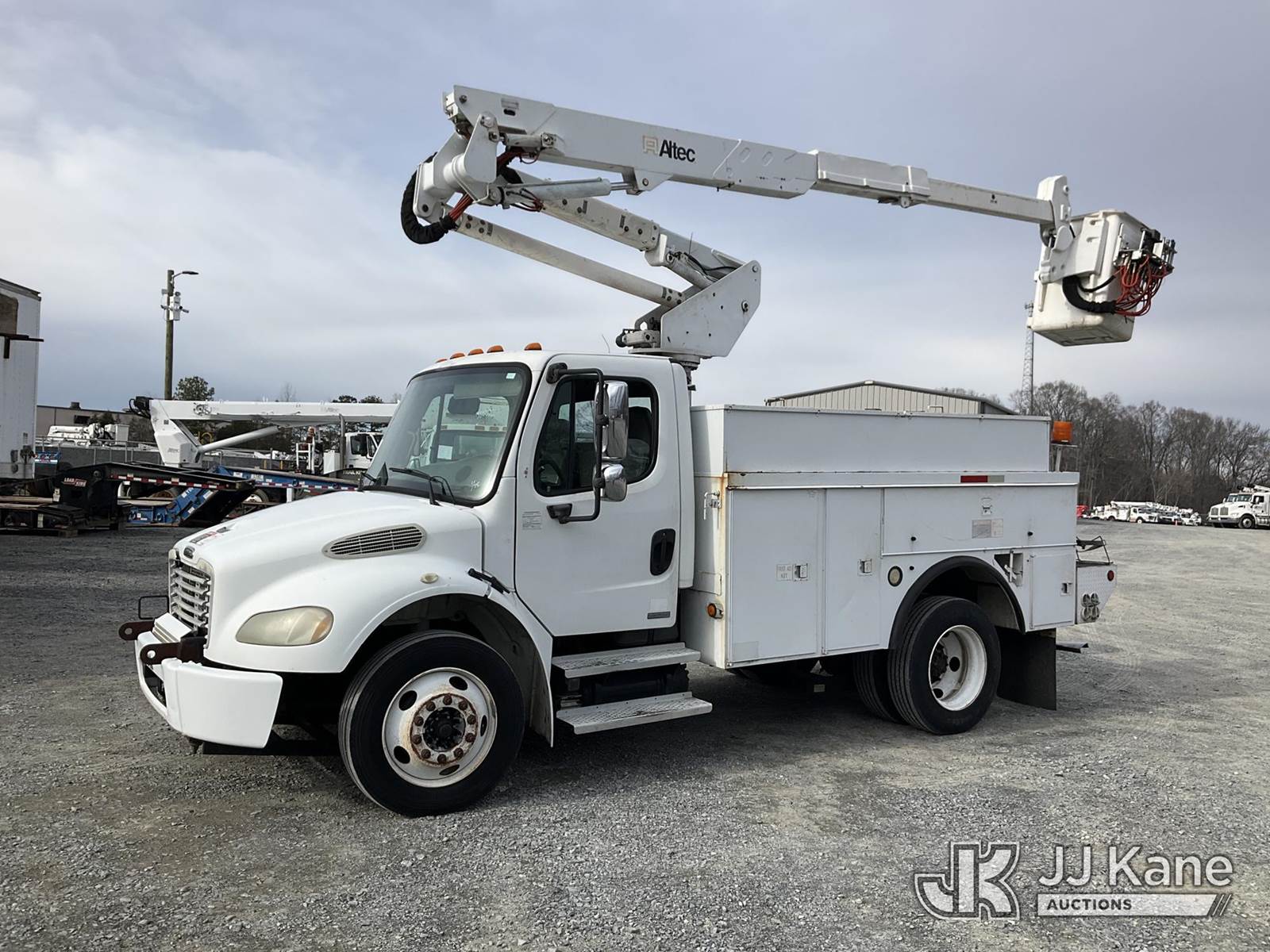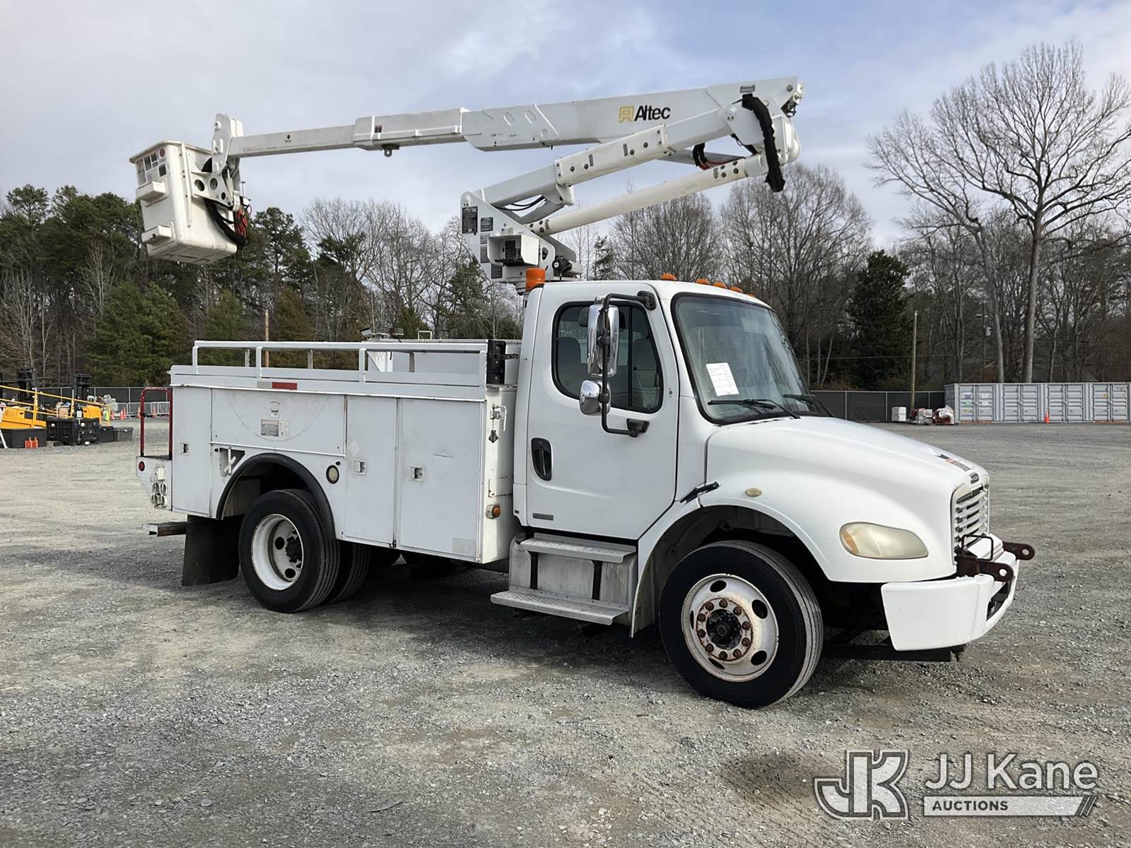 Altec AT37G, 42 ft, Articulating & Telescopic Bucket Truck s/n 1204DE5271, with single-man bucket, mounted behind cab on 2004 Freightliner M2 106 Utility Truck, Cat C7 diesel, Auto, A/C, (Exempt from Odometer Disclosure - Reads 223,059 miles) (Runs, Moves & Upper Operates) (Body Damage, Missing Plastics Around Upper Controls) This is a Titled Item NOTE: This unit is being sold AS IS/WHERE IS via Timed Auction and is located in China Grove, NC. Inspection & preview days for this unit are the 2 business days prior to the first day of items closing for this auction, item is located at 820 E NC Hwy 152 China Grove, NC 28023 and hours of operations are 8a-4p. For pre-sale questions, please contact Office Staff @ (704) 674-1113. (Missing manuals, See Auction Company for Manufacturers Information to obtain manuals) (Buyer is responsible for removal. Assistance by consignor or JJ Kane Auctions is not assured.)