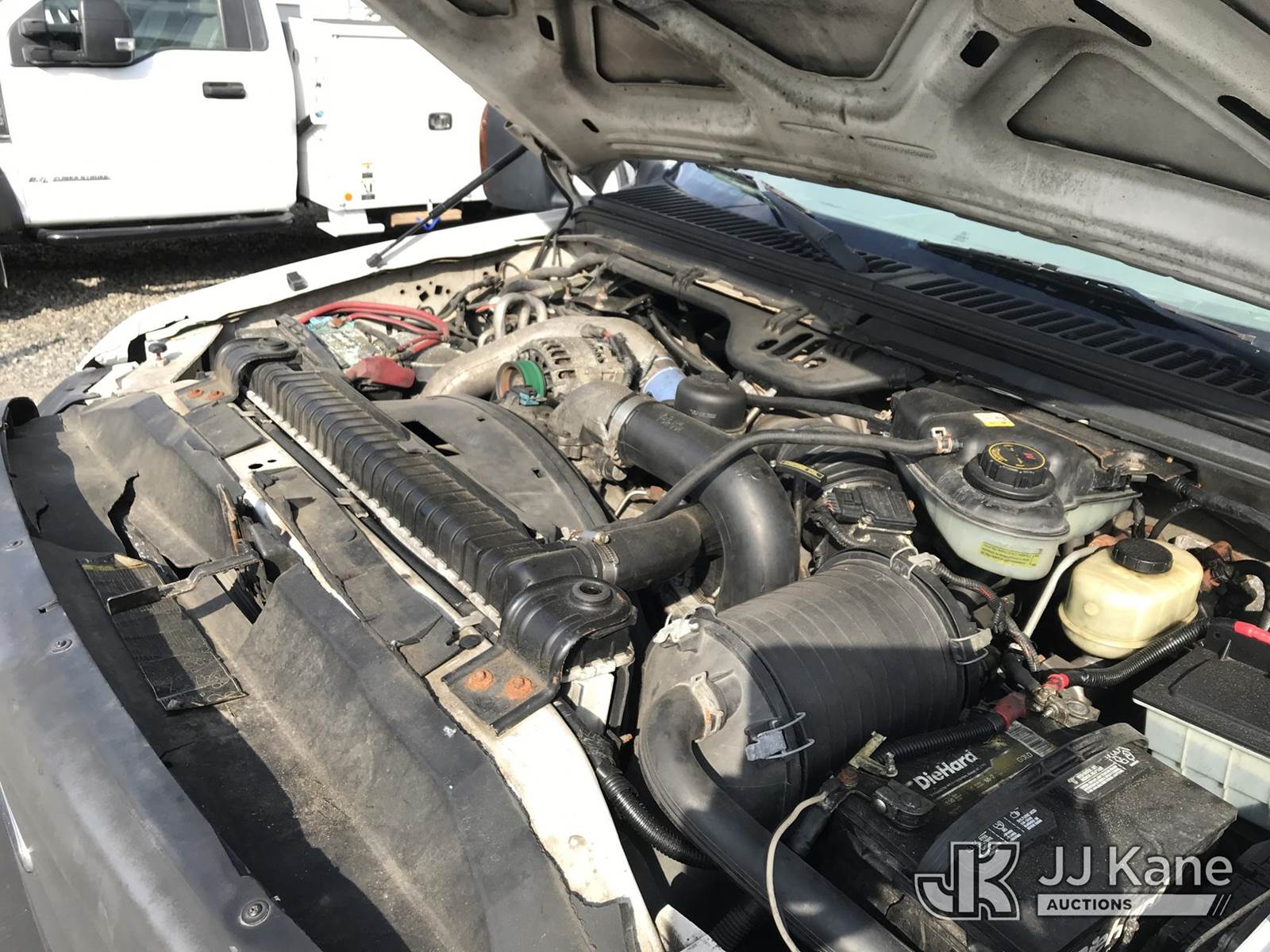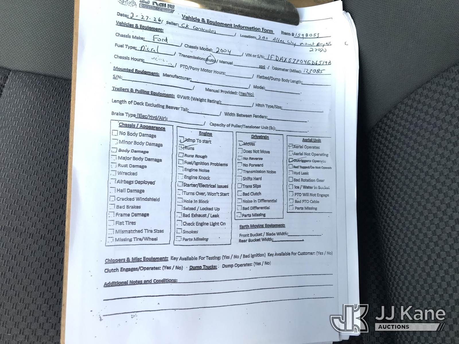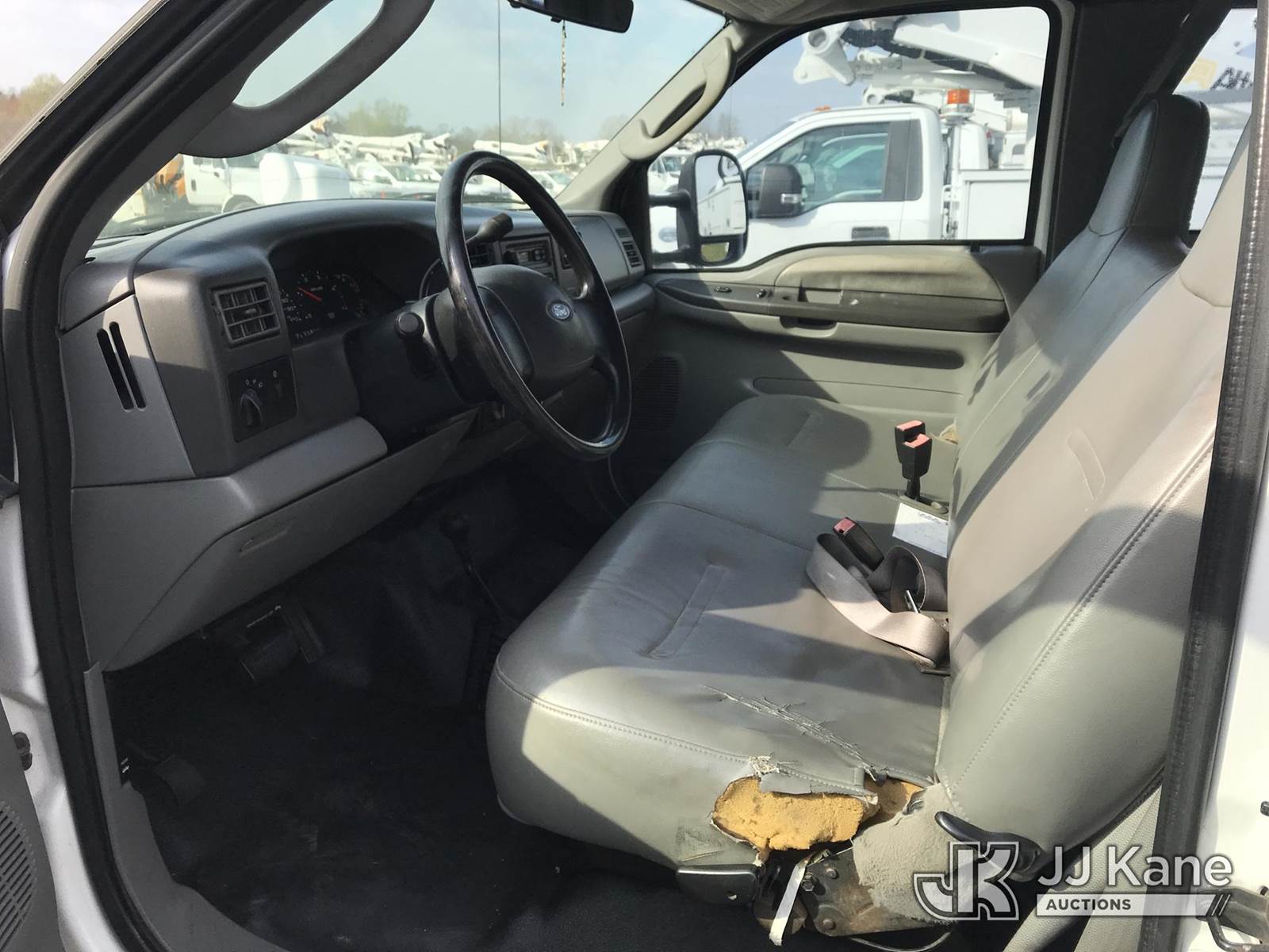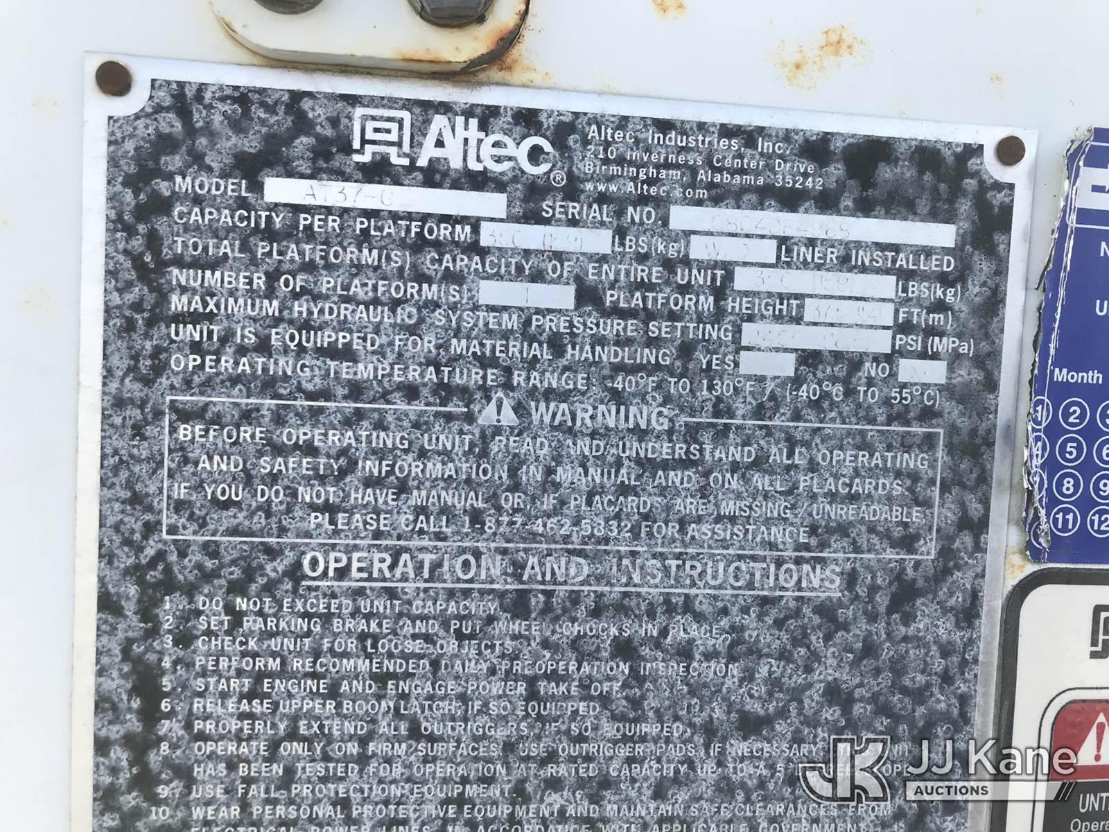 Altec AT37G, 42 ft, Articulating & Telescopic Bucket Truck s/n 0804DF4988, with single-man bucket & 2 hyd outriggers, mounted behind cab on 2004 Ford F550 4x4 Extended-Cab Service Truck, 6.0L V8 OHV 32V Diesel, Auto, (Exempt from Odometer Disclosure - Reads 123,085 miles) (Runs, Moves, Jump to Start) (Upper Operates; Note: This item has been removed from service due to the listed safety repairs that were not completed. The safety items below must be completed by an approved OEM facility before the unit can return to service: REPLACE LOWER LINK ARM ASSEMBLY, REPLACE ARTICULATING ARM ASSEMBLY, REPLACE DAMAGED PLATFORM ASSEMBLY, COMPLETE ANSI INSPECTION; COMPLETE ANY REQUIRED TESTING AND REPAIRS AFTER INSPECTIONS ARE COMPLETED) (Bidding Restricted to Licensed Vehicle Dealers Only), This is a Titled Item NOTE: This unit is being sold AS IS/WHERE IS via Timed Auction and is located in Mount Airy, NC. Inspection & preview days for this unit are by appointment only; please contact us at contact@jjkane.com or 84-Go-JJKane for more details. (Missing manuals, See Auction Company for Manufacturers Information to obtain manuals) (Buyer is responsible for removal. Assistance by consignor or JJ Kane Auctions is not assured.)