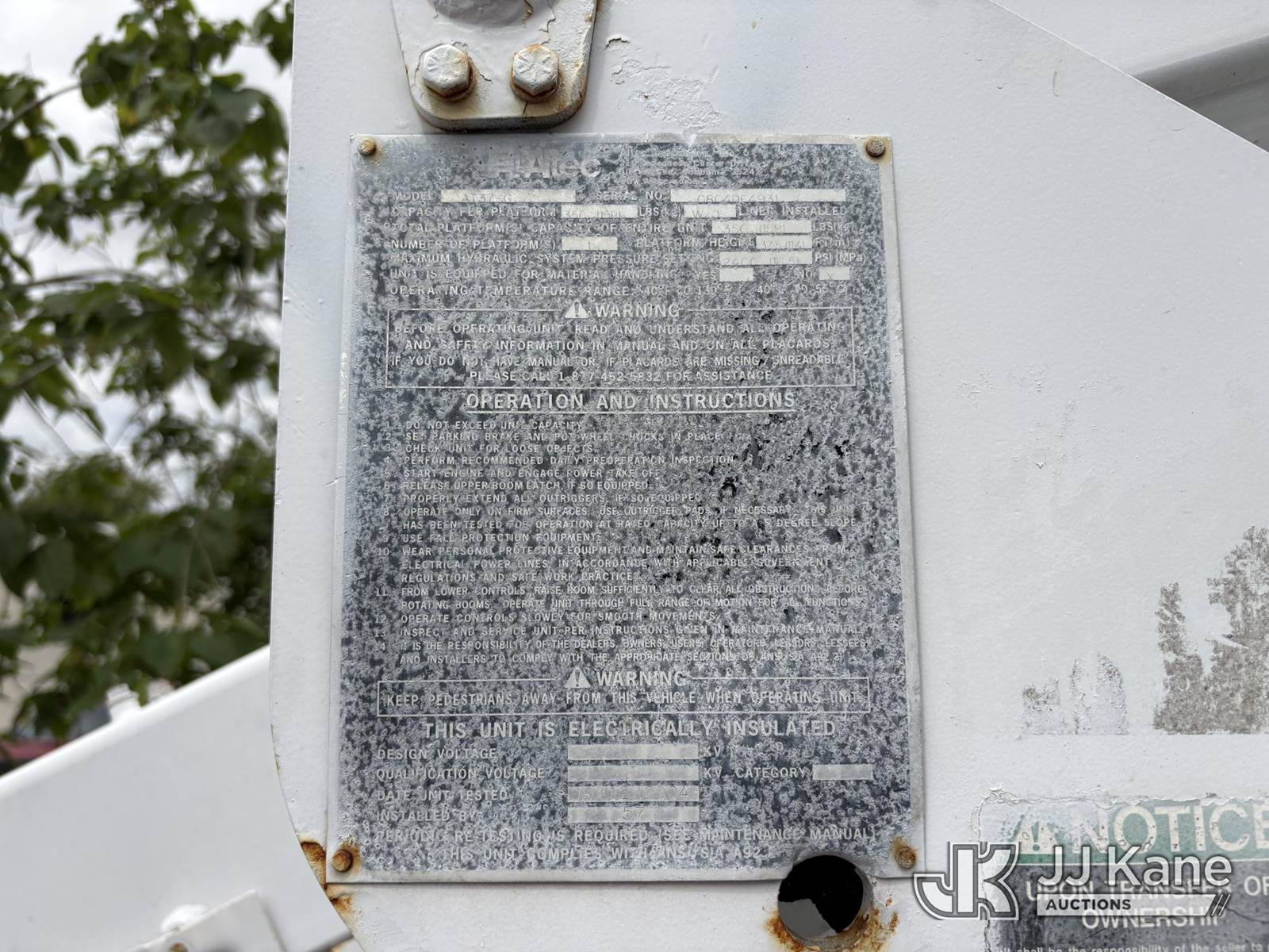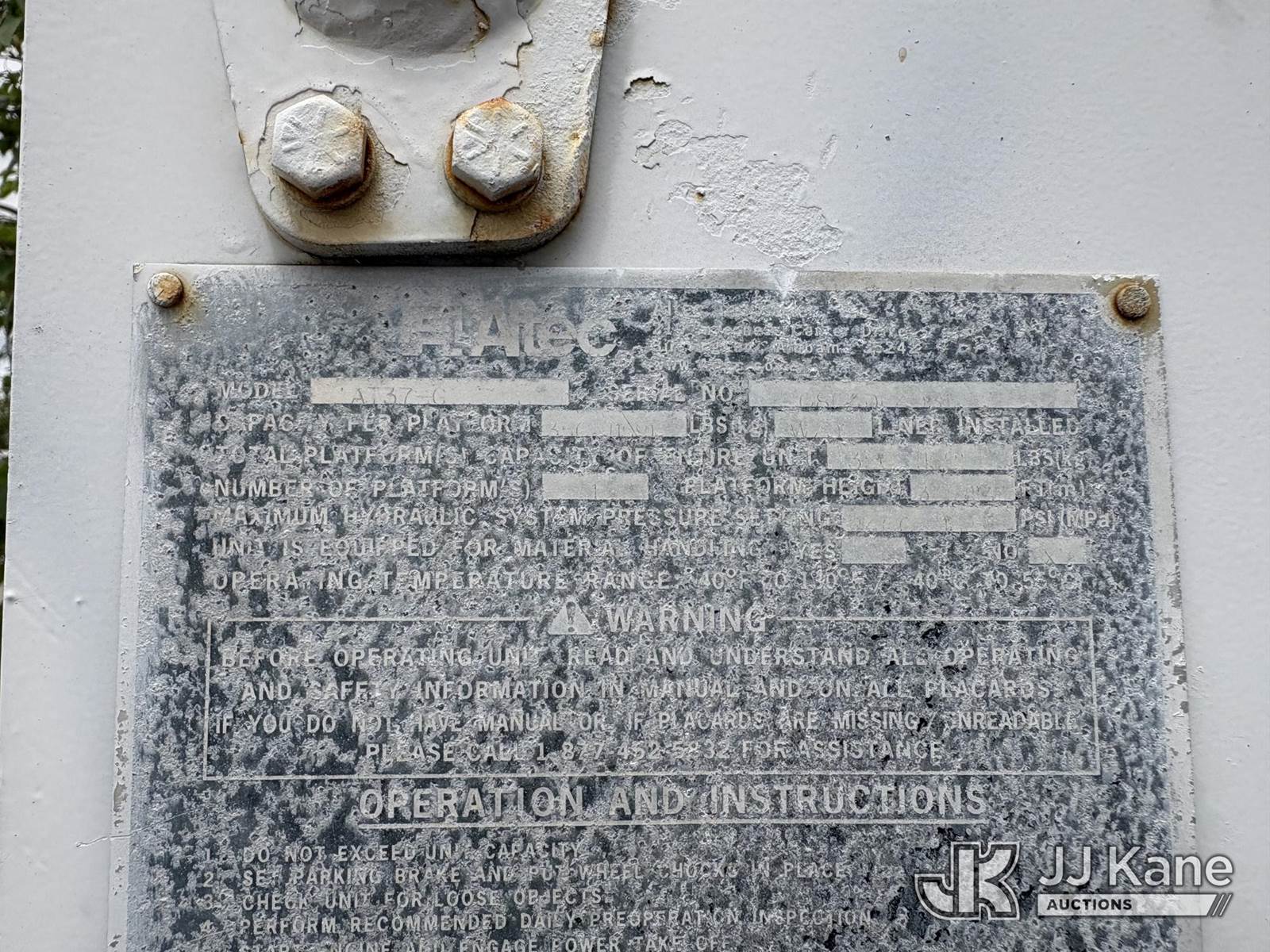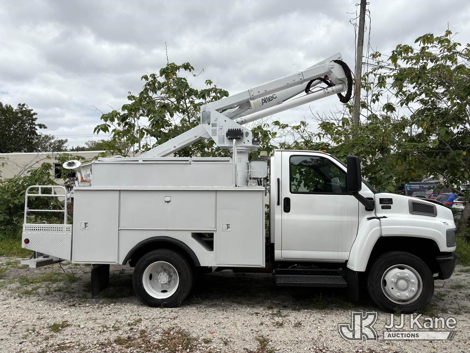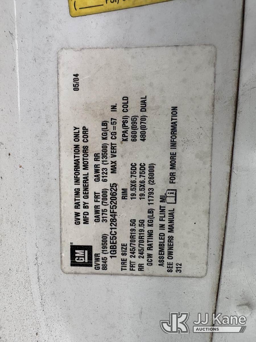 Altec AT37G, 42 ft, Articulating & Telescopic Bucket Truck s/n 0804DF4931, with single man bucket, mounted behind cab on 2004 Chevrolet C5500 Service Truck, 6.6L V8 OHV 32V Diesel, 4X2, Auto, A/C, (Exempt from Odometer Disclosure - Reads 220,439 miles) (Runs, Moves, and Boom Operates) (Upper Boom Has a Bad Holding Valve on the Lift Cylinder and Will not Stay up, Body Damage.) This is a Titled Item NOTE: This unit is being sold AS IS/WHERE IS via Timed Auction and is located in Hollywood, FL. For pre-sale questions or to schedule an inspection, please call Gregg Martini @ 561-519-5775. Removals require 24-hr Notice by Appointment Only, Buyer/Hauler must present copy of Paid-in-Full JJ Kane Release Form upon arrival. Purchaser acknowledges ALL lots must be removed within 10 business days of Auction, or a towing & storage fee may be incurred. (Missing manuals, See Auction Company for Manufacturers Information to obtain manuals) (Buyer is responsible for removal. Assistance by consignor or JJ Kane Auctions is not assured.)