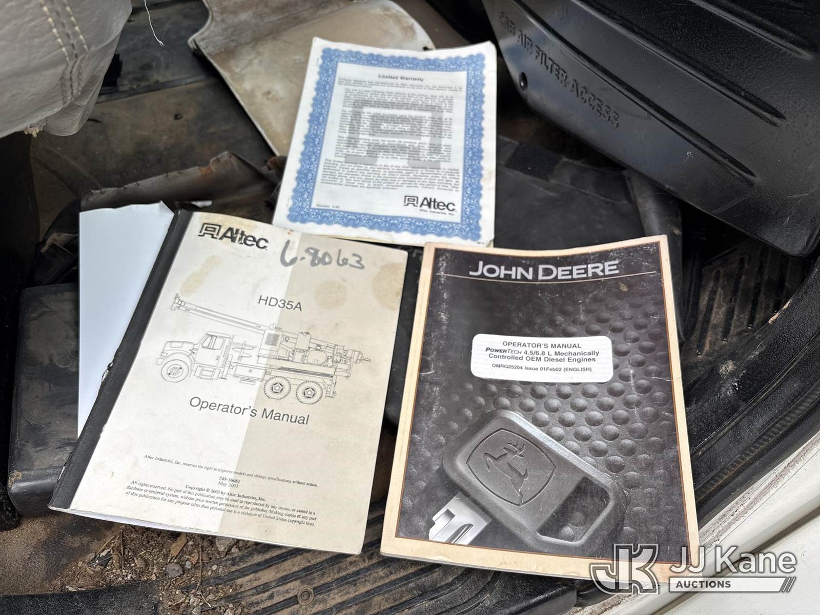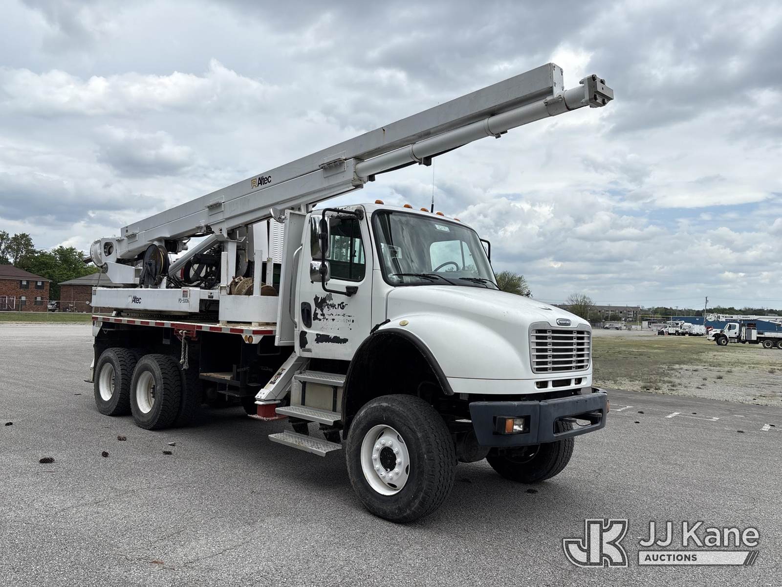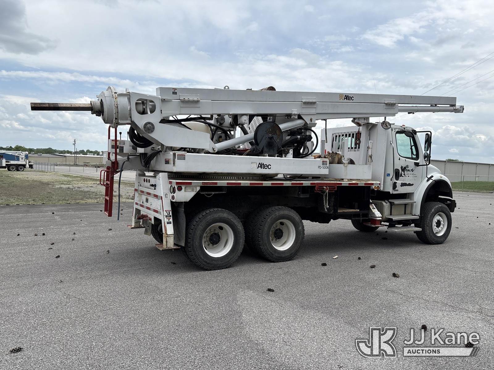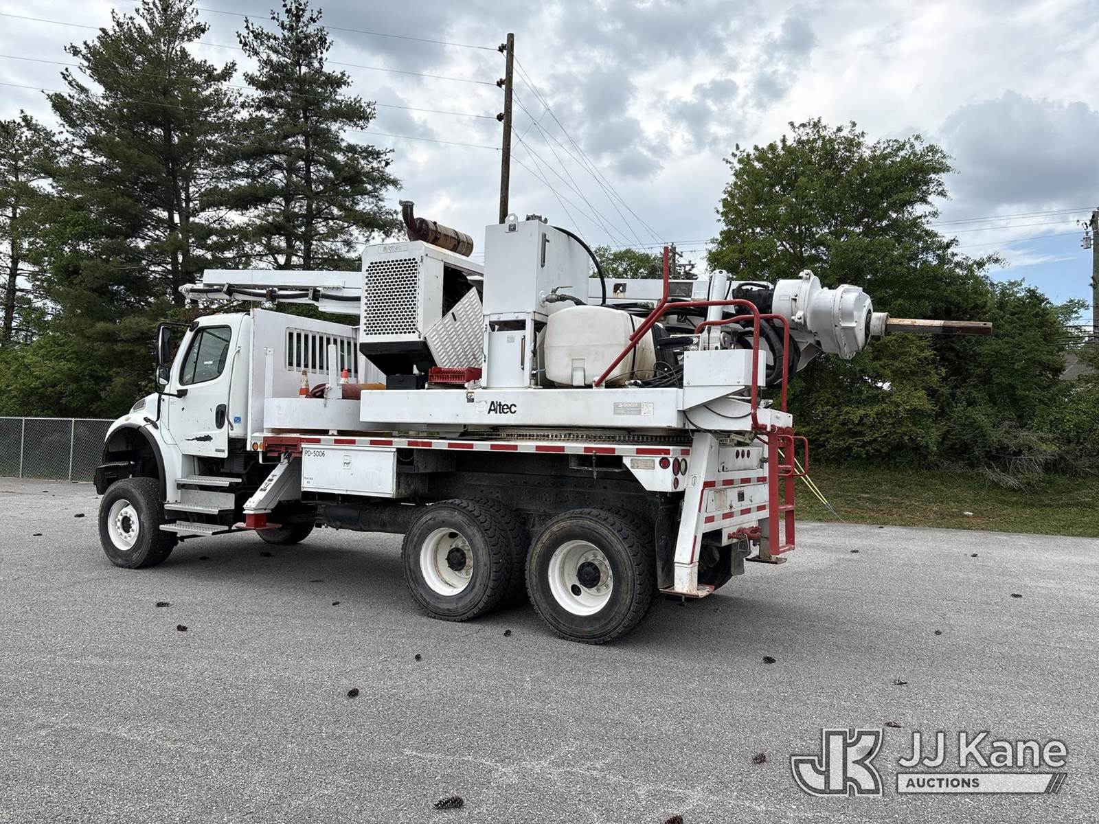 Altec HD35A-25, Pressure Digger s/n 0604DW0149, J.D. diesel, with approx. 3 1/2 in. x 28 ft. 2 in. Kelly bar, rotating & extendable table, boom winch, PVC tank, 4 hyd outriggers & riding console, mounted on 2004 Freightliner M2 106 6x6 Flatbed Truck, Cat C7 diesel, Auto, A/C, (Exempt from Odometer Disclosure - Reads 30,264 miles) (Runs, Moves & Upper Operates) (Drive Shaft Removed) This is a Titled Item NOTE: This unit is being sold AS IS/WHERE IS via Timed Auction and is located in Lebanon, TN. Inspection & preview days for this unit are the 2 business days prior to the first day of items closing for this auction, item is located at 1442 Toshiba Dr Lebanon, TN 37087 and hours of operations are 8a-4p. For pre-sale questions, please contact Jon Kent @ (423) 558-7440 or Jon.Kent@jjkane.com. Dealer License #22511 (Manuals provided in cab) (Buyer is responsible for removal. Assistance by consignor or JJ Kane Auctions is not assured.)
