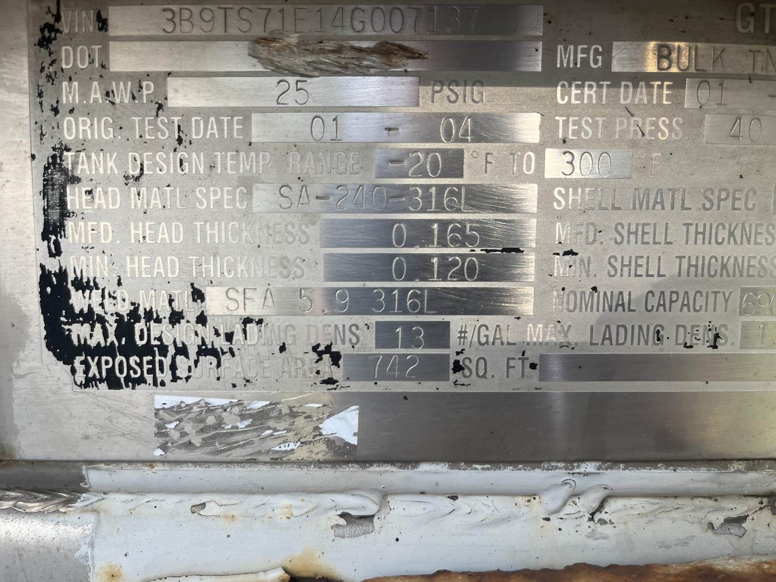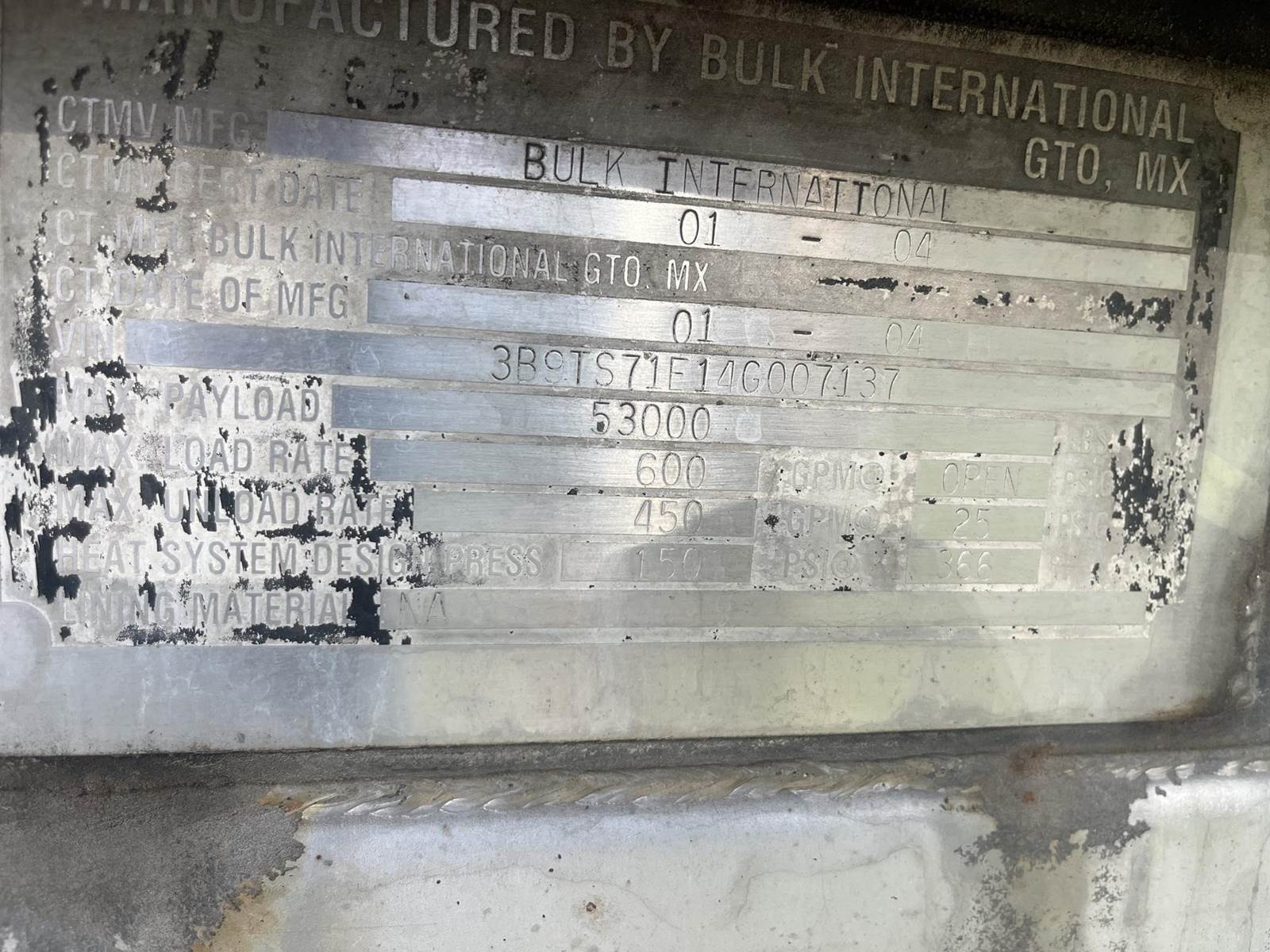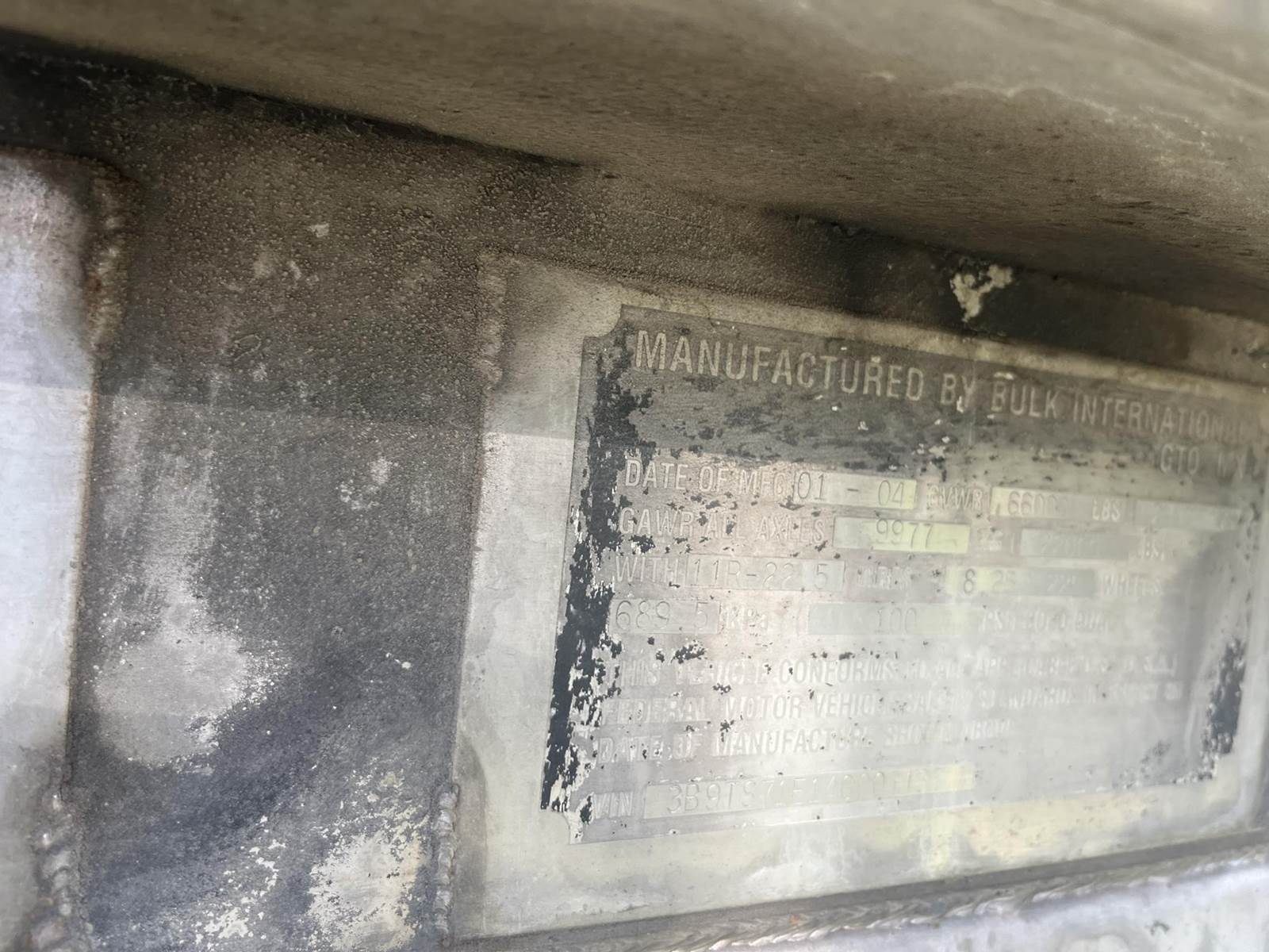 2004 BULK U2259 6900 GAL NON CODE CHEMICAL Non Code Tank Trailer