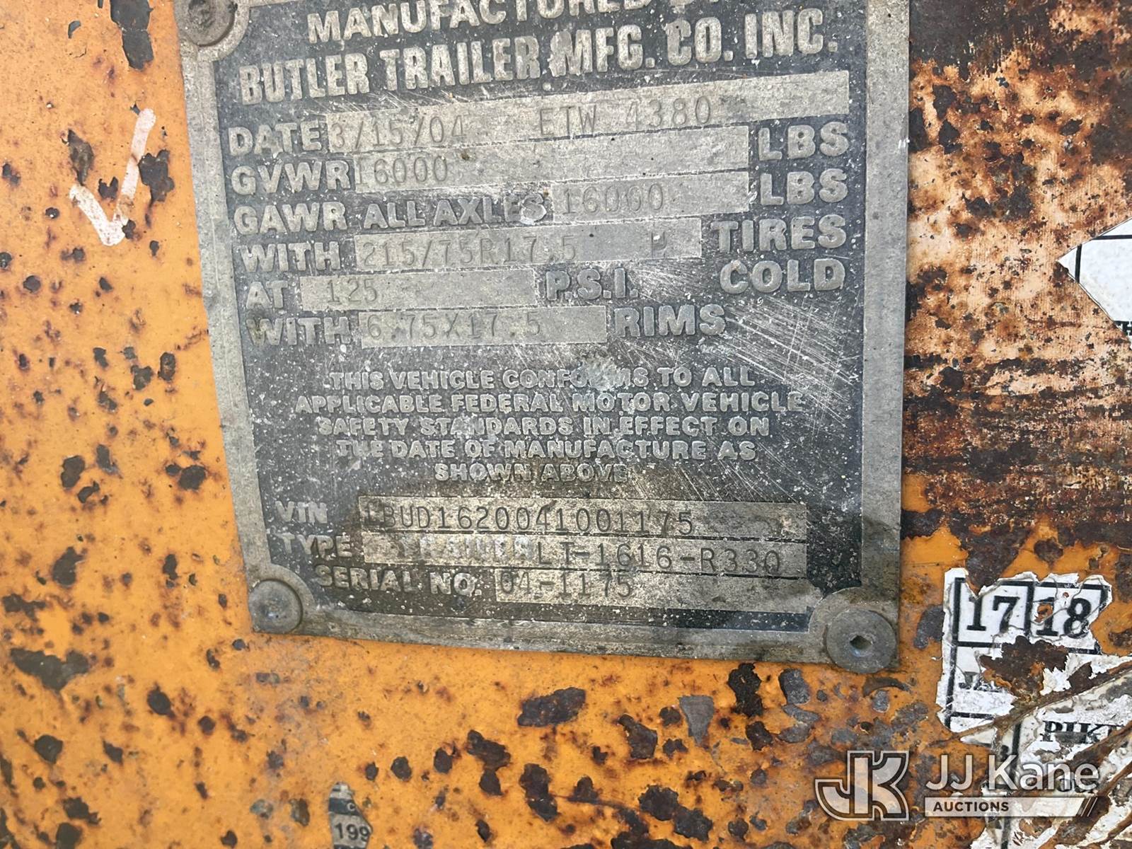 2004 Butler LT-1616 T/A Tagalong Trailer, with level deck between wheels, dovetail & ramps, ((Per Seller: Axle Damaged) This is a Titled Item NOTE: This unit is being sold AS IS/WHERE IS via Timed Auction and is located in Waxahachie, TX. Inspection & preview days for this unit are the 2 business days prior to the first day of items closing for this auction, item is located at 999 Solon Rd Waxahachie, TX 75165 and hours of operations are 8a-4p. For pre-sale questions, please contact Alex Bayless @ (469) 550-4938. (Buyer is responsible for removal. Assistance by consignor or JJ Kane Auctioneers is not assured.)