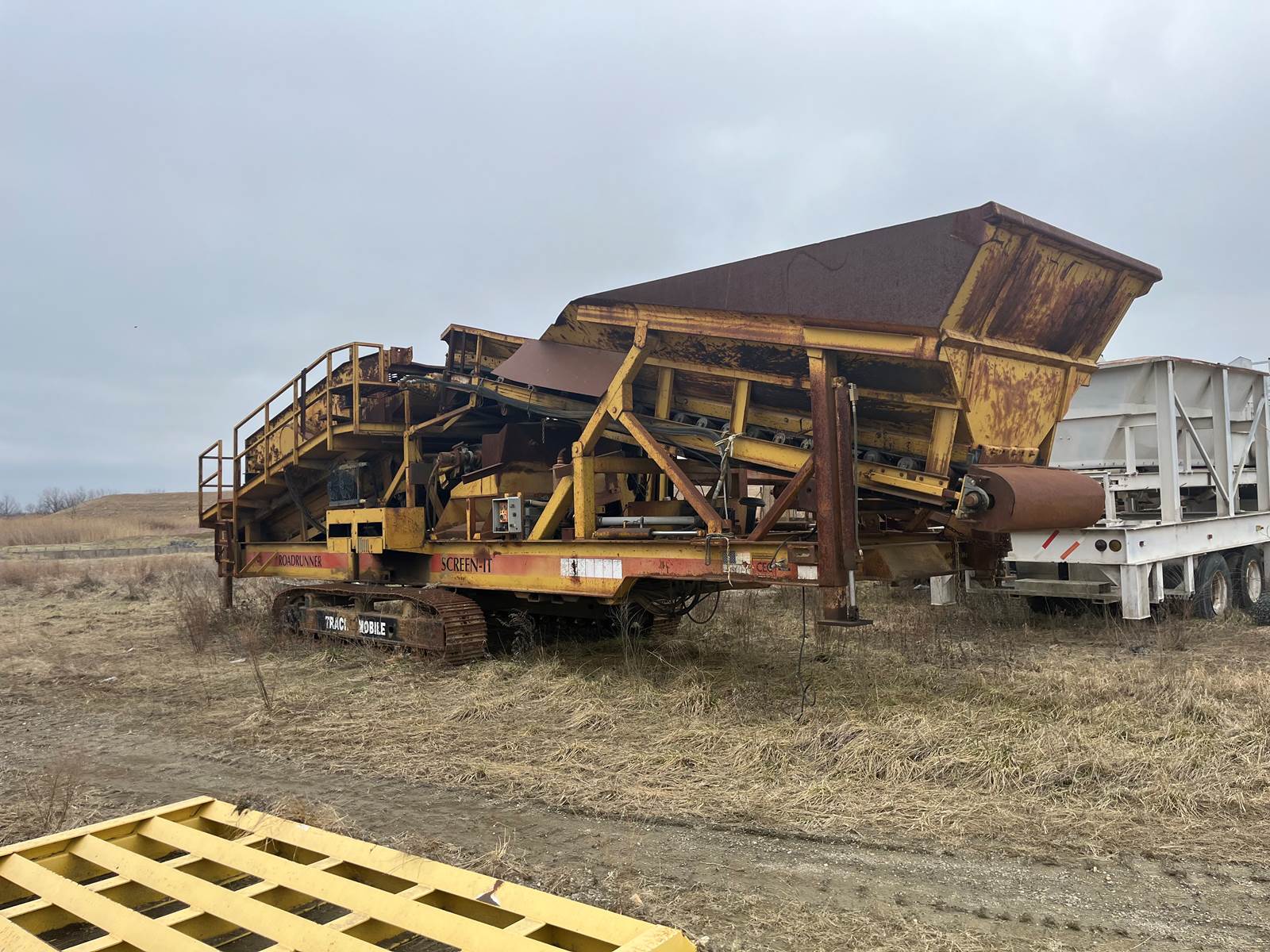 -3 Deck Incline Portable Screen, -Screen decks are in good condition, -Side discharge conveyor, -Under screen conveyor, -Chutes for top and...