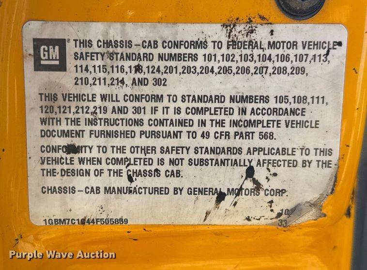 VIN: 1GBM7C1C44F505859