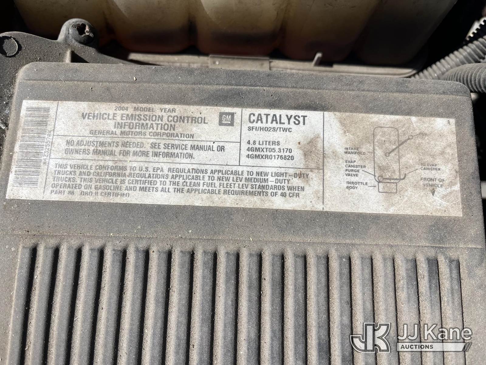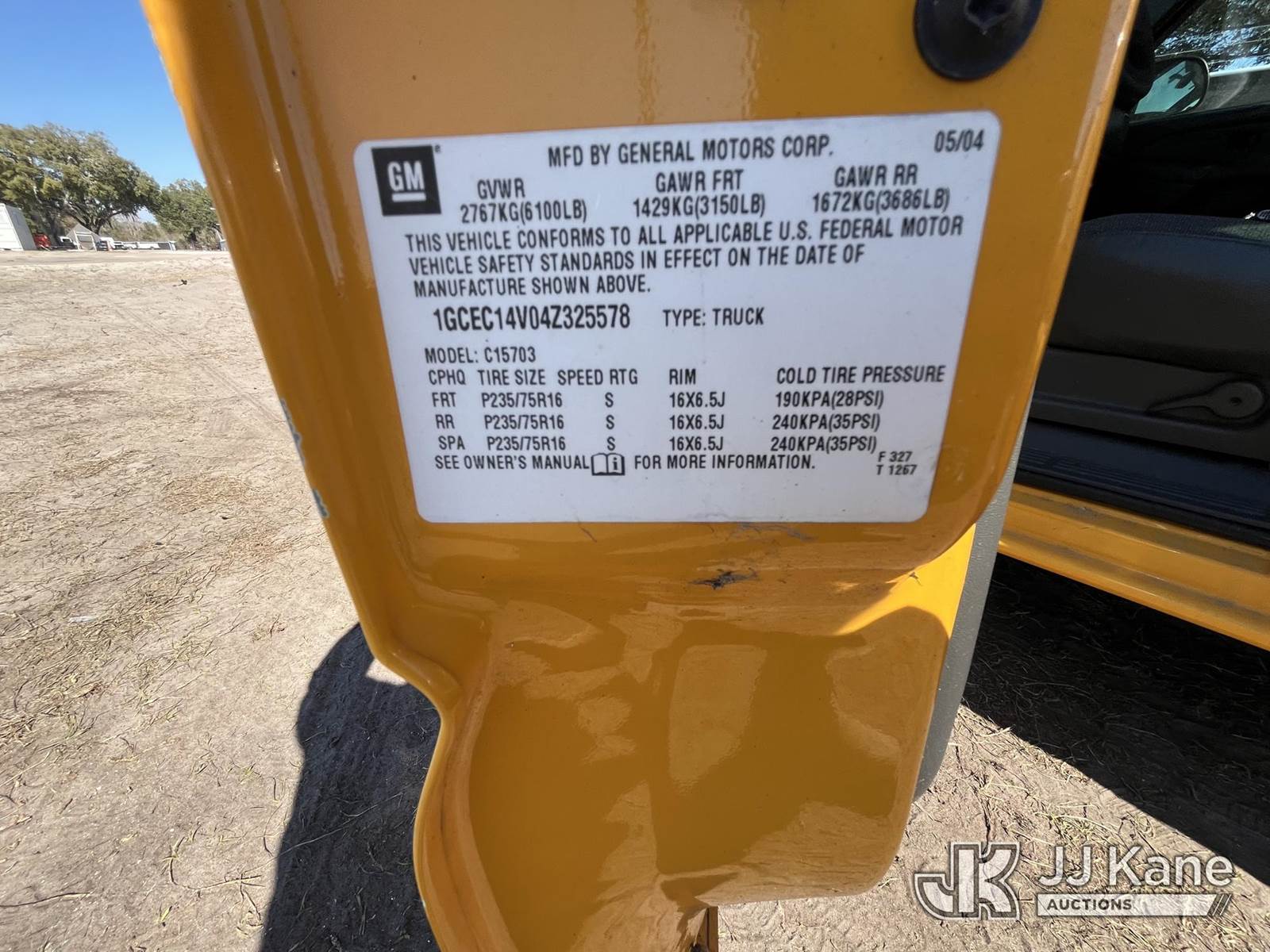 2004 Chevrolet Silverado 1500 Pickup Truck, 8-cyl gas, Auto, A/C, (Exempt from Odometer Disclosure - Reads 162,277 miles) State of FL Unit (Runs & Moves) (Paint Damage, Body Damage, Jump To Start, Engine Runs Rough, Transmission Issues, Check Engine Light On) This is a Titled Item NOTE: This unit is being sold AS IS/WHERE IS via Timed Auction and is located in Thonotosassa, FL. Inspection & preview days for this unit are the 2 business days prior to the first day of items closing for this auction, item is located at 11720 N US 301 Thonotosassa, Fl 33592 and hours of operations are 8a-4p. For pre-sale questions, please contact Office Staff @ (813) 986-2485. (Buyer is responsible for removal. Assistance by consignor or JJ Kane Auctions is not assured.)