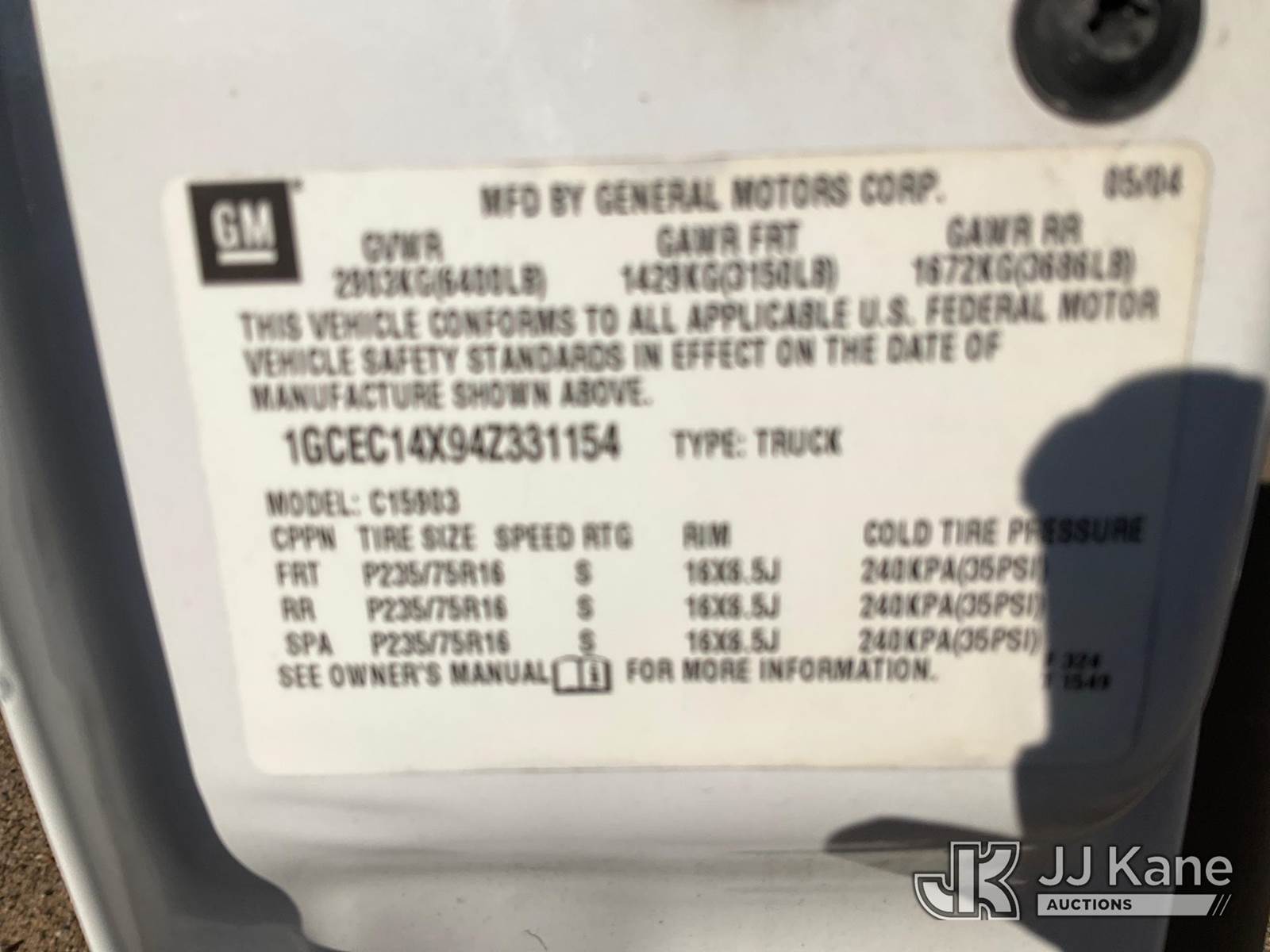 2004 Chevrolet Silverado 1500 Pickup Truck, 4.3L V6 OHV 12V gas, RWD, Auto, A/C, (Exempt from Odometer Disclosure - Reads 101,248 miles) (Runs & Moves) This is a Titled Item NOTE: This unit is being sold AS IS/WHERE IS via Timed Auction and is located in Waxahachie, TX. For pre-sale questions or to schedule an inspection, please call auction yard at (469) 550-4938. (Buyer is responsible for removal. Assistance by consignor or JJ Kane Auctions is not assured.)